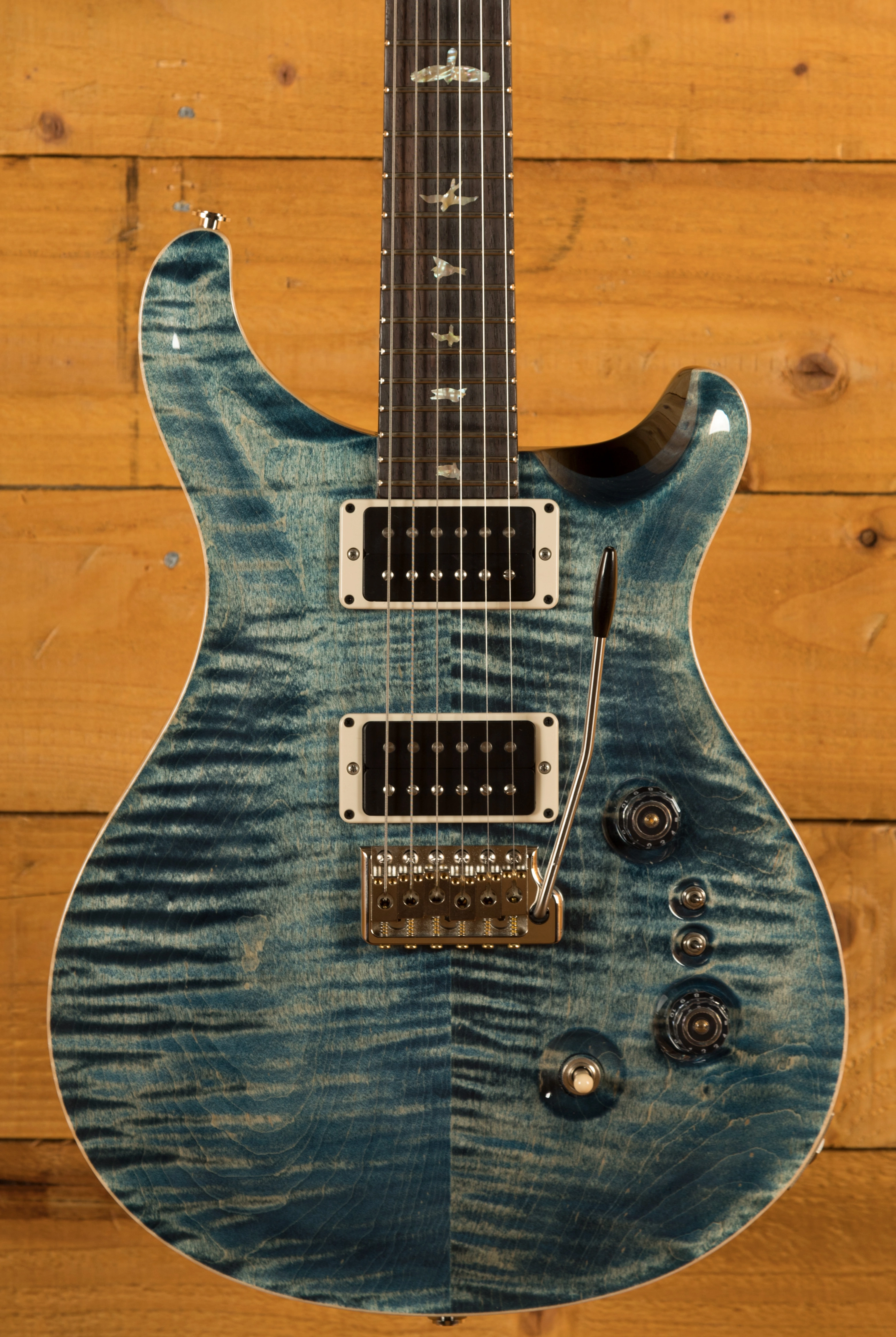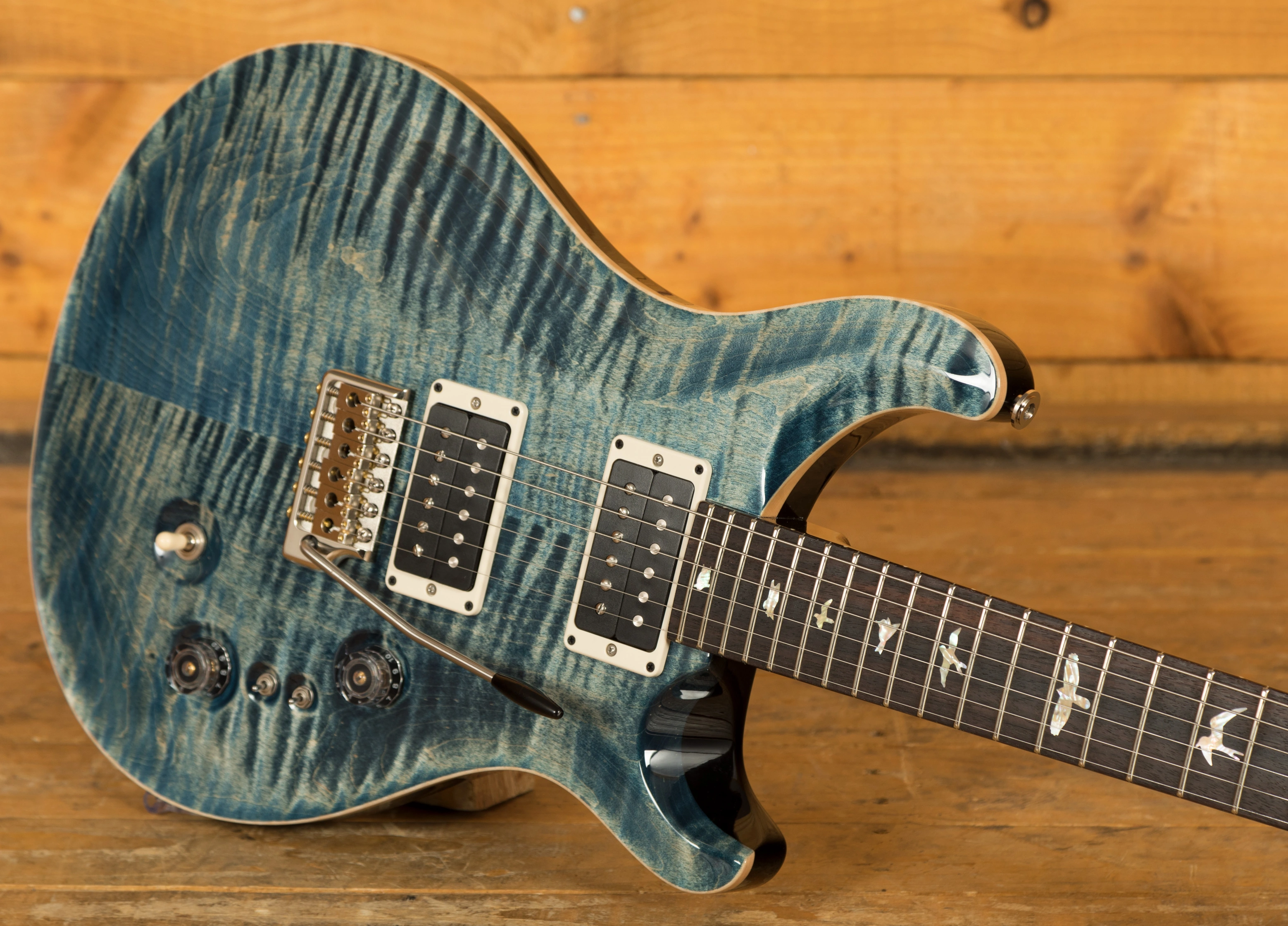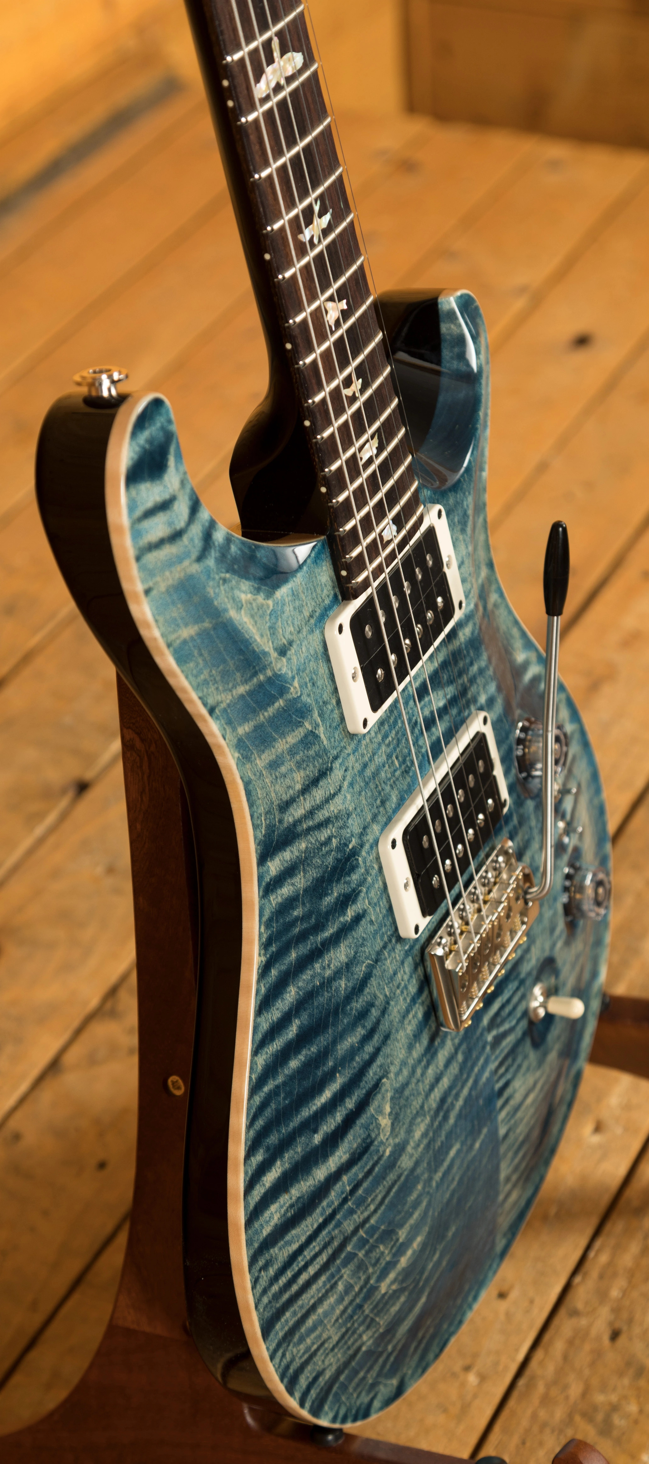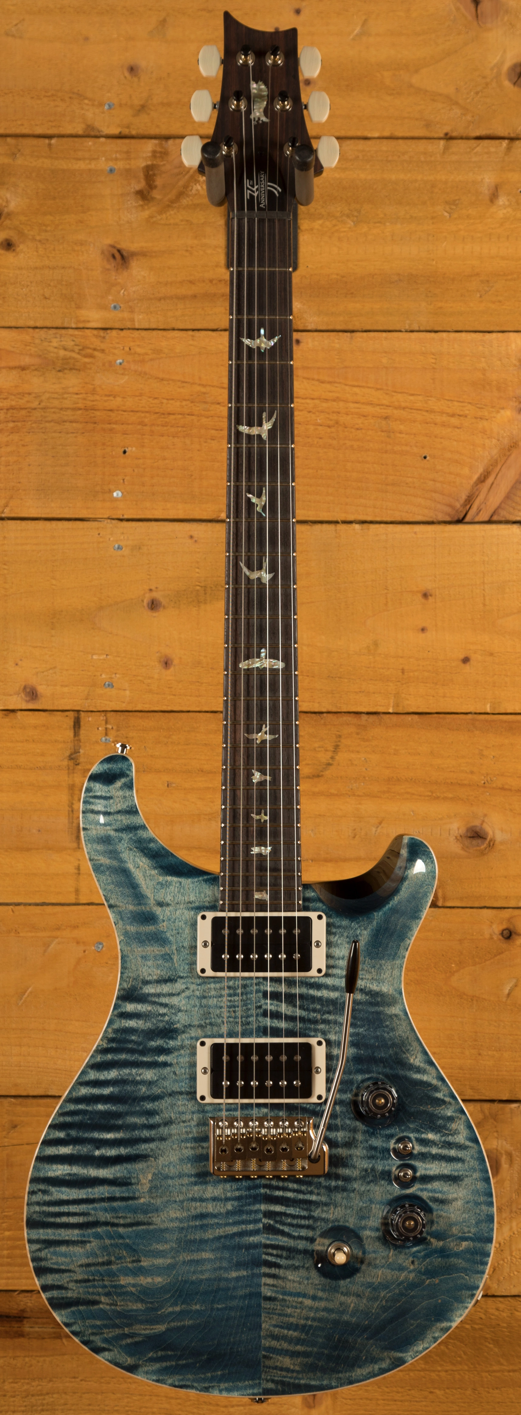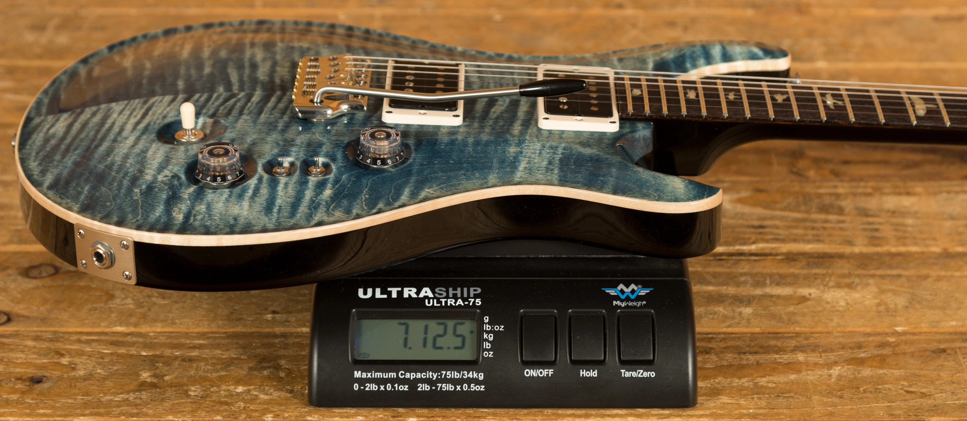 The Mahogany body with carved figured Maple top offers a rich warmth and depth that complements the beautiful Faded Whale Blue finish. With a 25" scale length, Pattern Thin profile and of course, 24 frets, the Mahogany neck feels really comfortable and familiar. The iconic PRS birds sit proudly atop the Rosewood fingerboard for the definitive PRS experience.