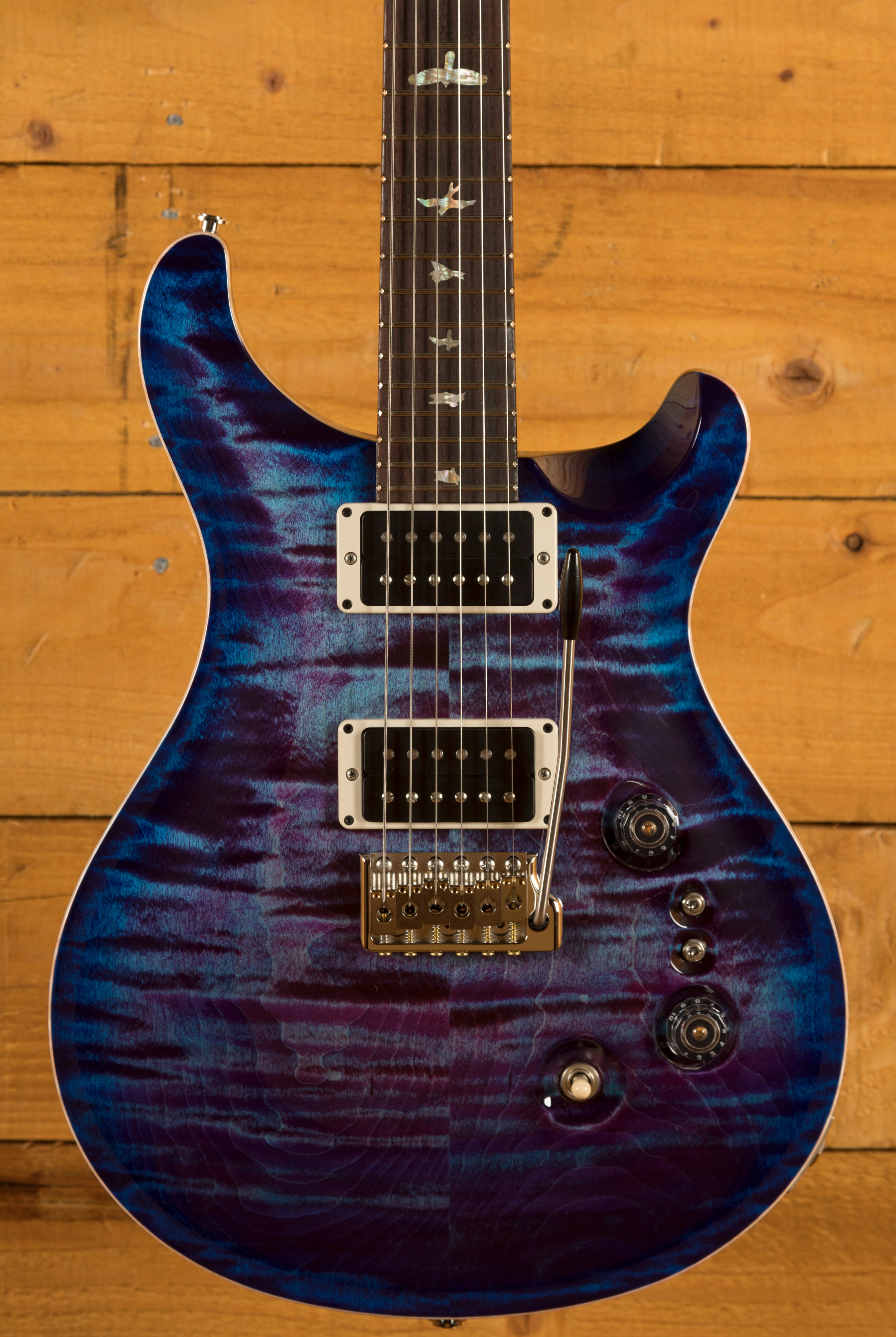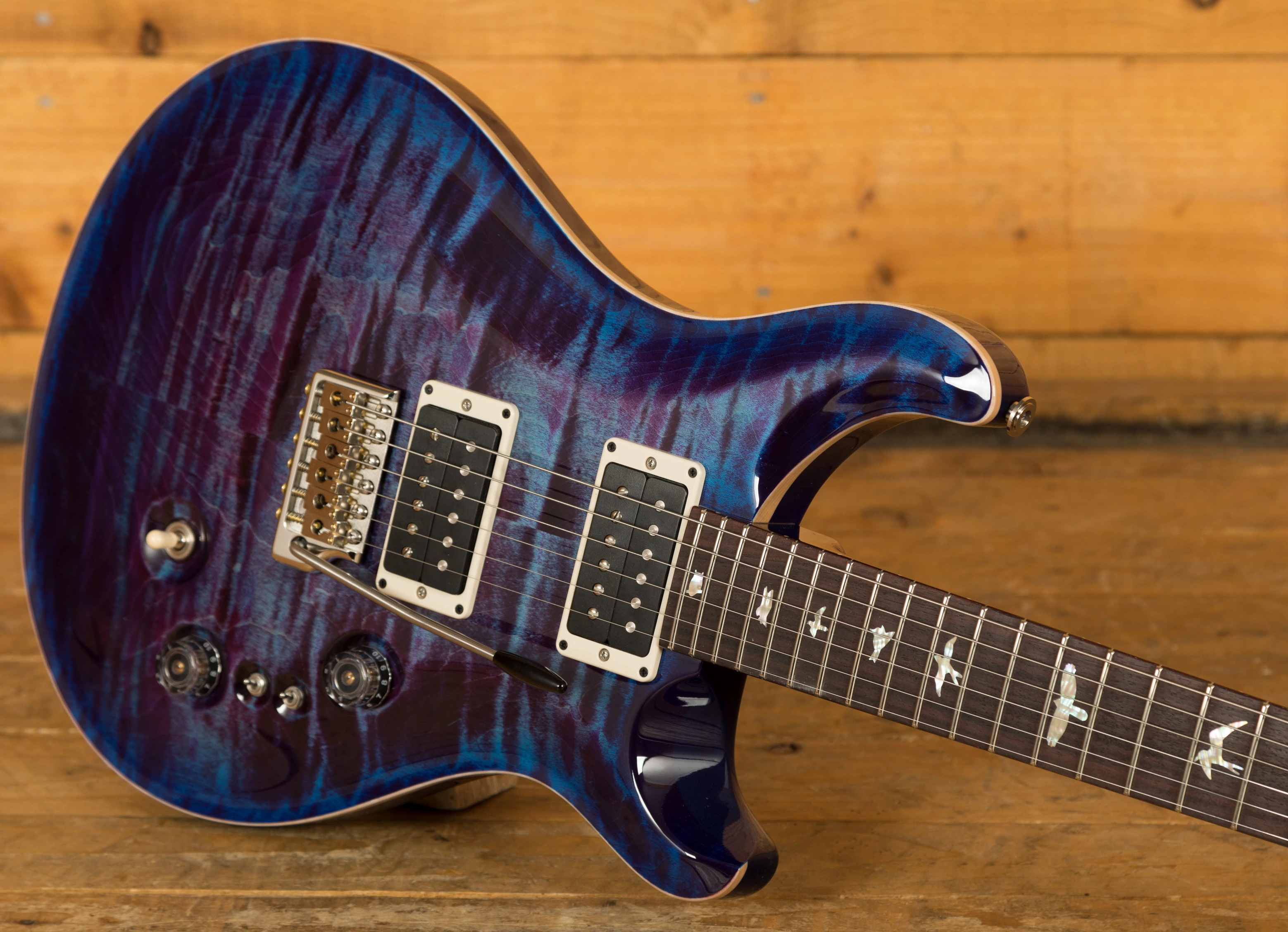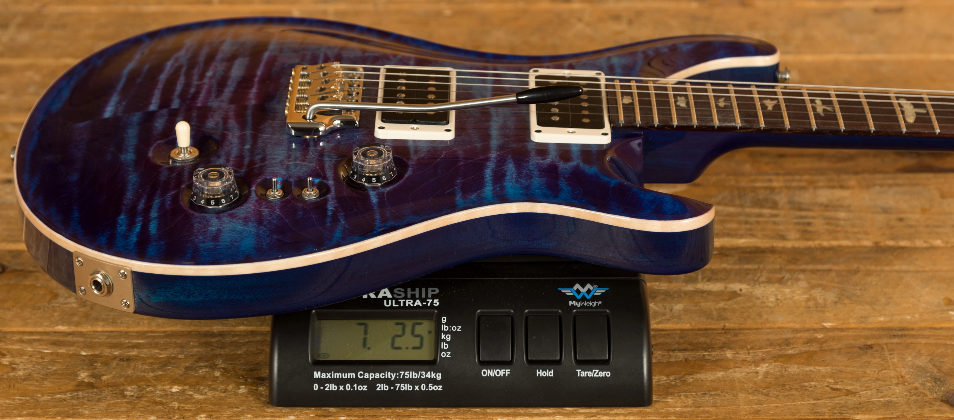 The Mahogany body with carved figured Maple top a offers a rich warmth and depth that complements the beautiful Violet Blueburst finish. With a 25" scale length, Pattern Regular profile and of course, 24 frets, the Mahogany neck feels really comfortable and familiar. The iconic PRS birds sit proudly atop the Rosewood fingerboard for the definitive PRS experience.