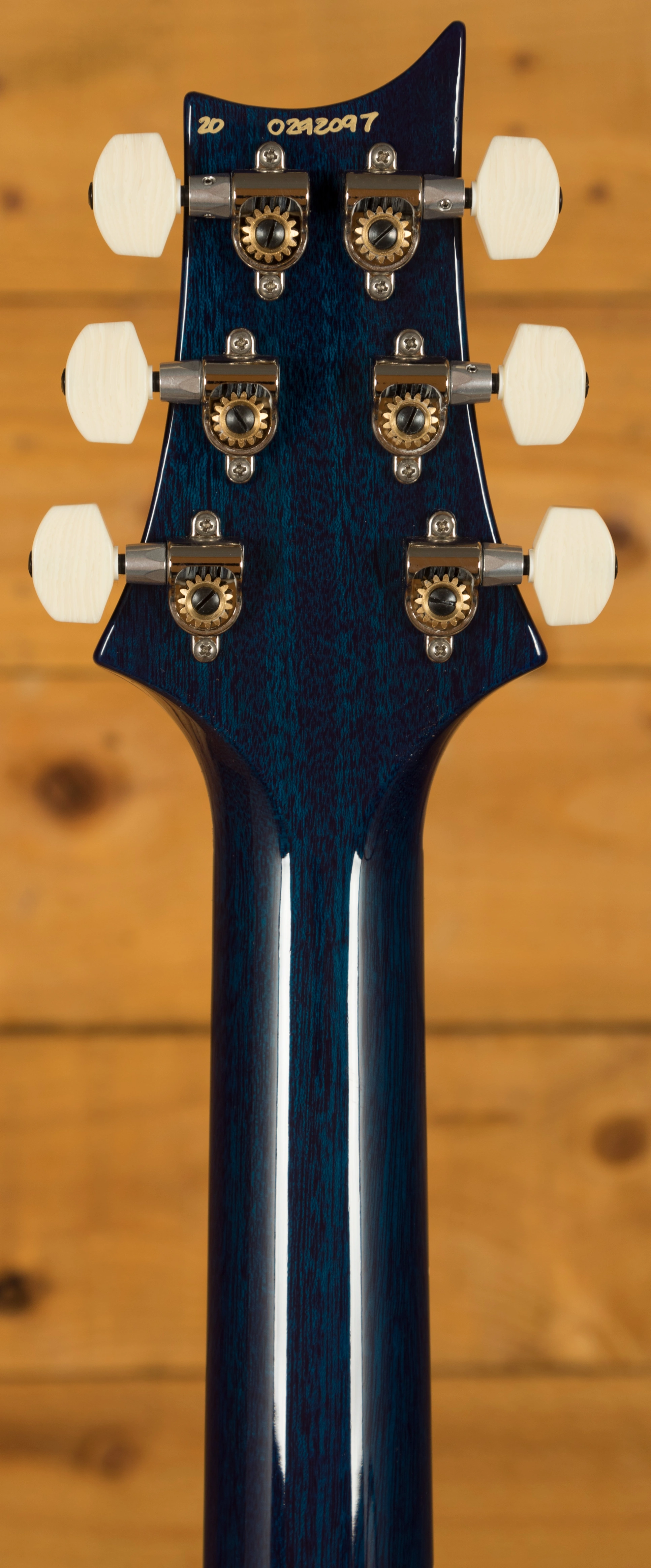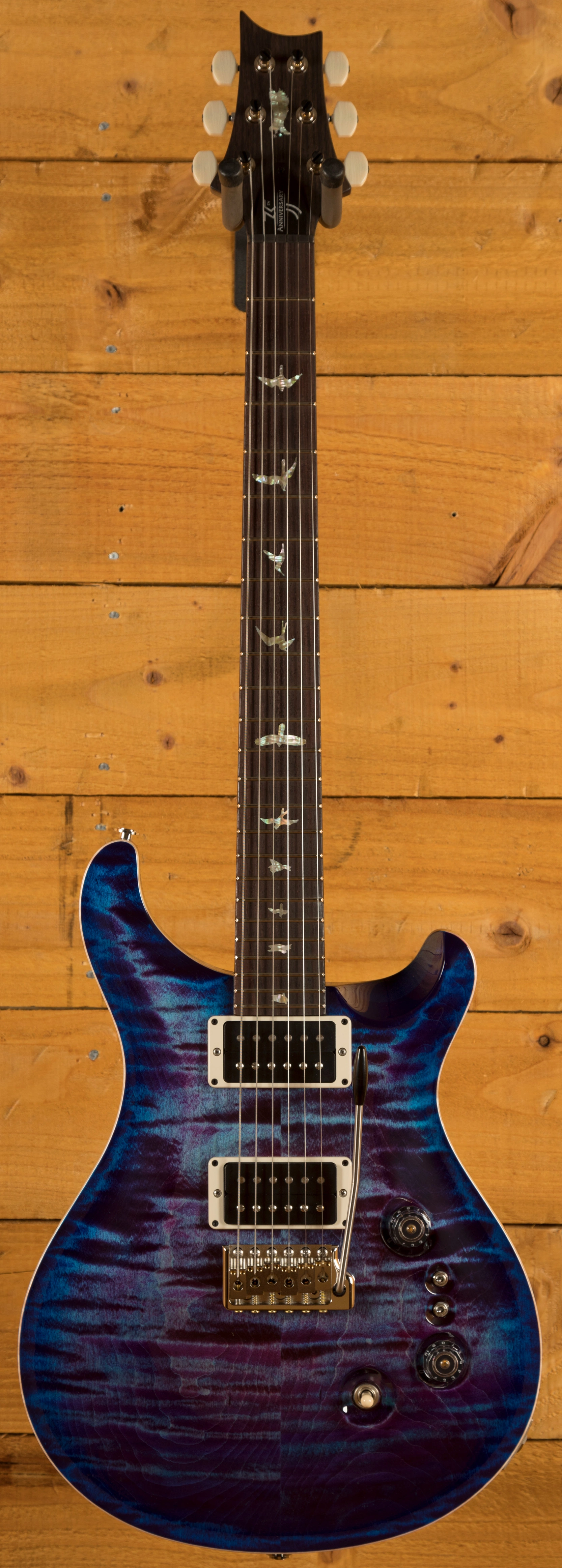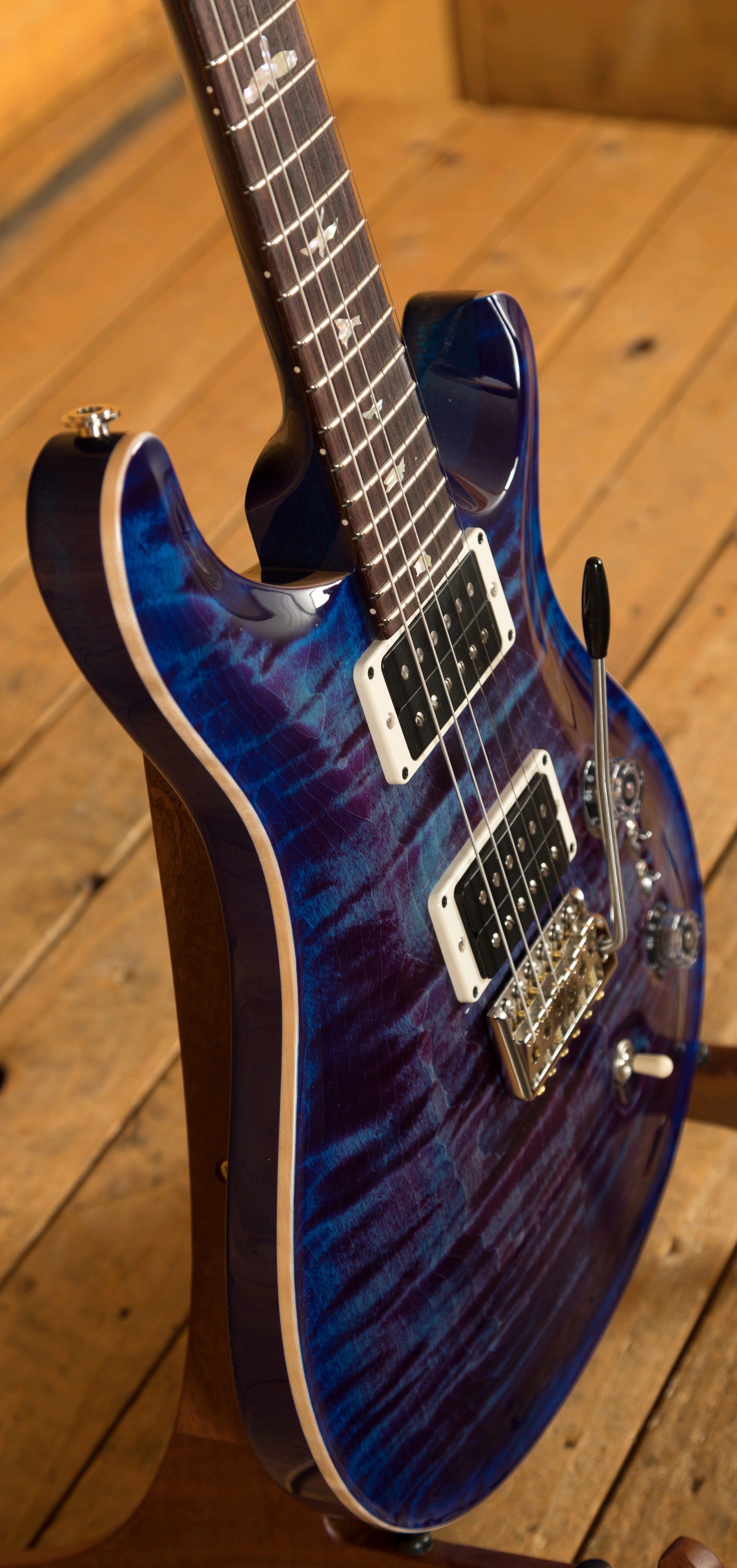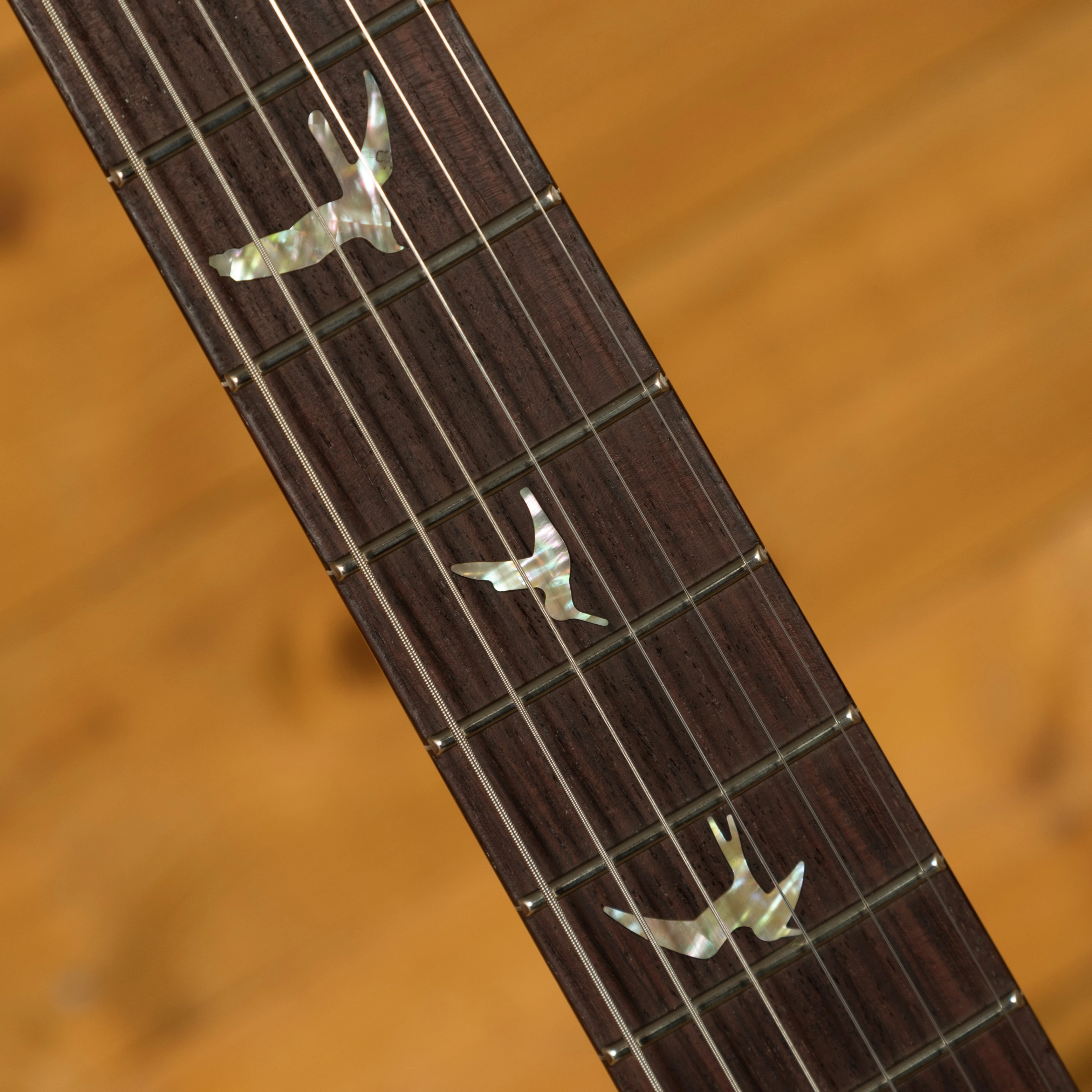 The Mahogany body with carved figured Maple top a offers a rich warmth and depth that complements the beautiful Violet Blueburst finish. With a 25" scale length, Pattern Regular profile and of course, 24 frets, the Mahogany neck feels really comfortable and familiar. The iconic PRS birds sit proudly atop the Rosewood fingerboard for the definitive PRS experience.