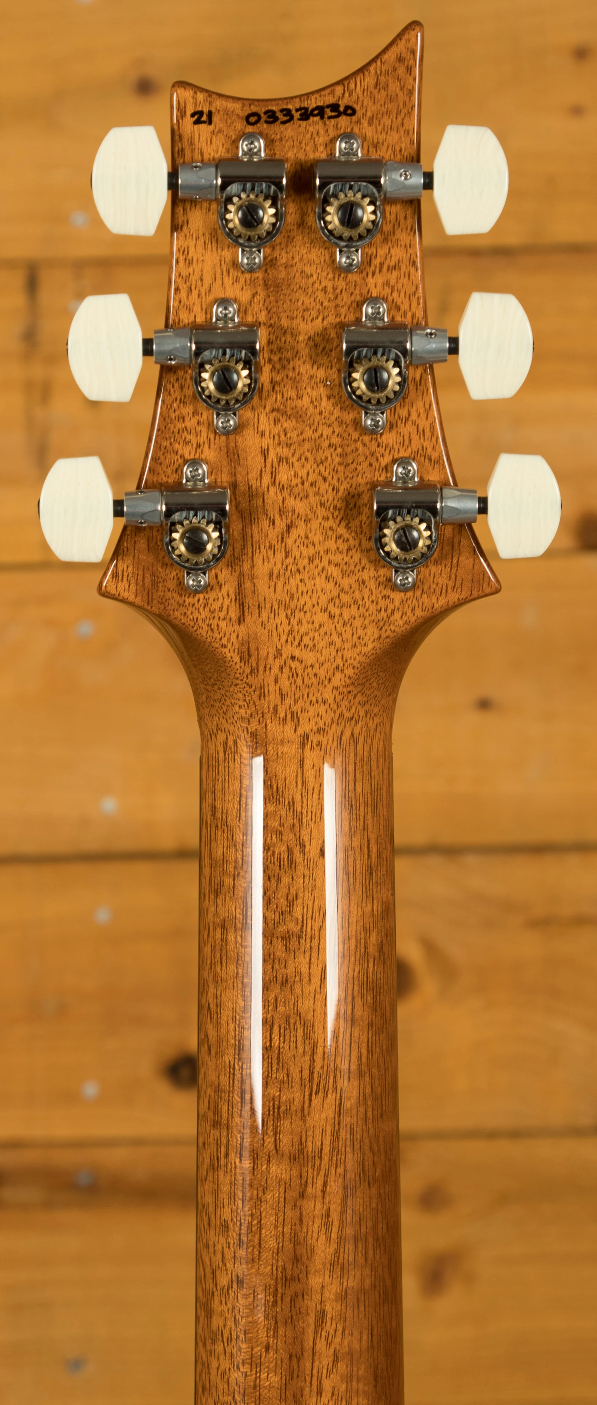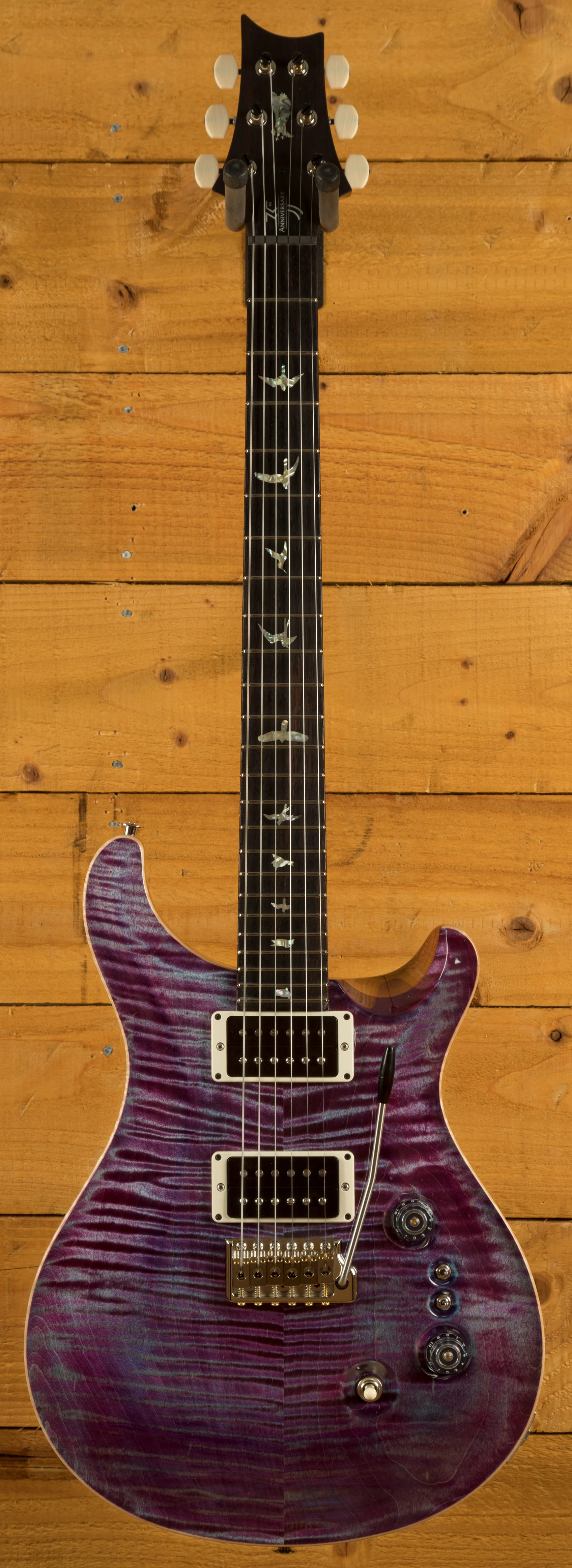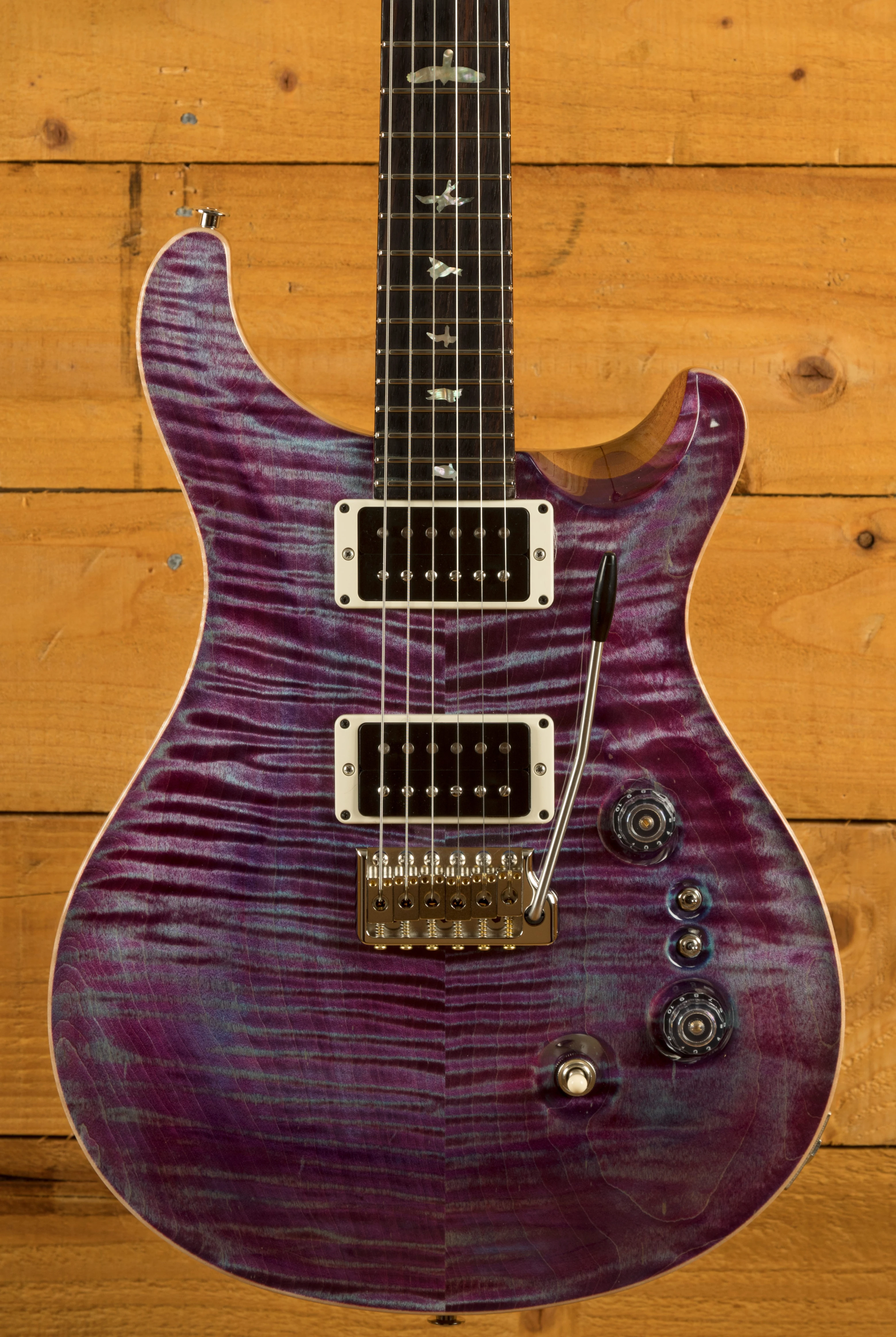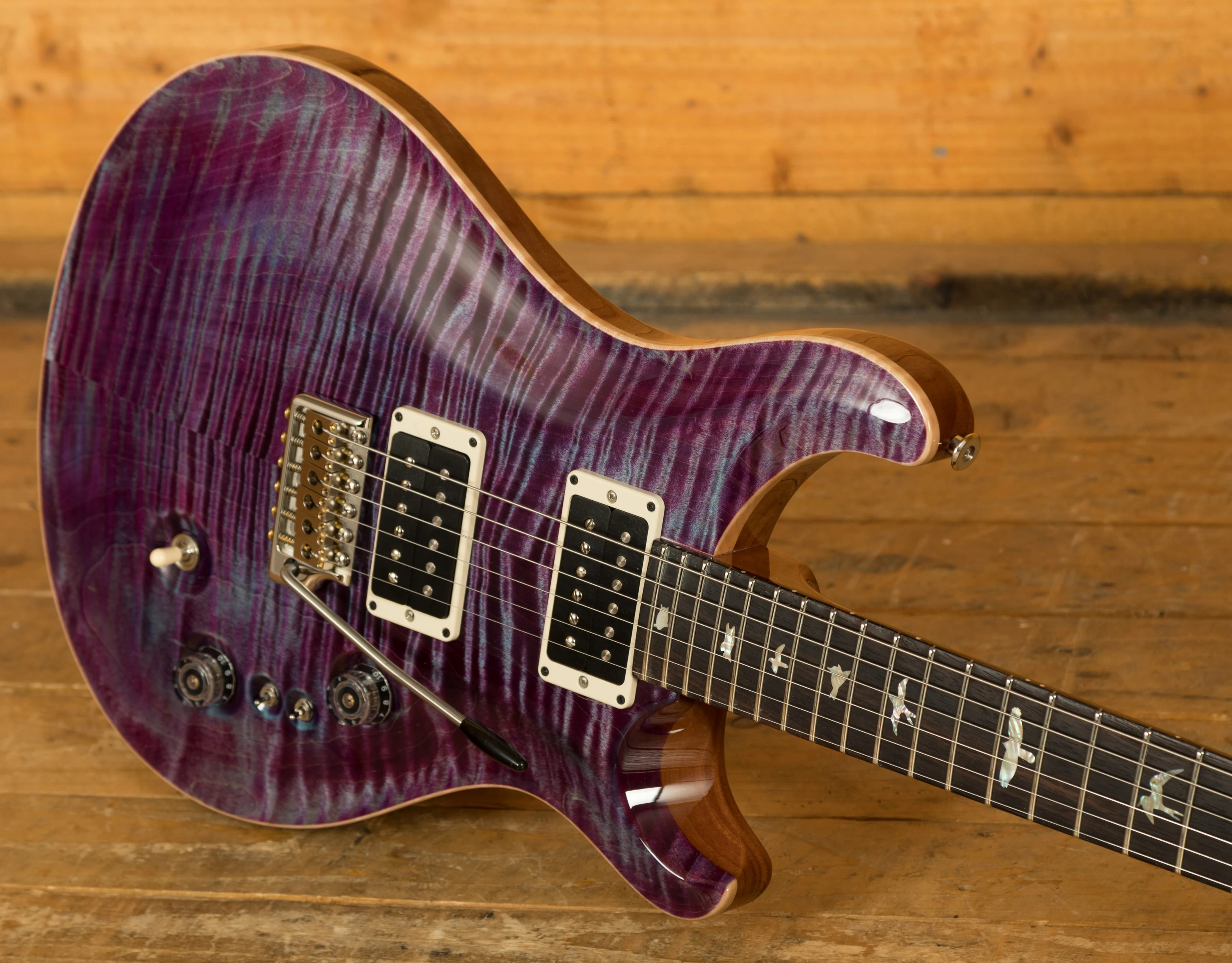 The Mahogany body with carved figured Maple top a offers a rich warmth and depth that complements the beautiful Violet finish. With a 25" scale length, Pattern Thin profile and of course, 24 frets, the Mahogany neck feels really comfortable and familiar. The iconic PRS birds sit proudly atop the Rosewood fingerboard for the definitive PRS experience.
