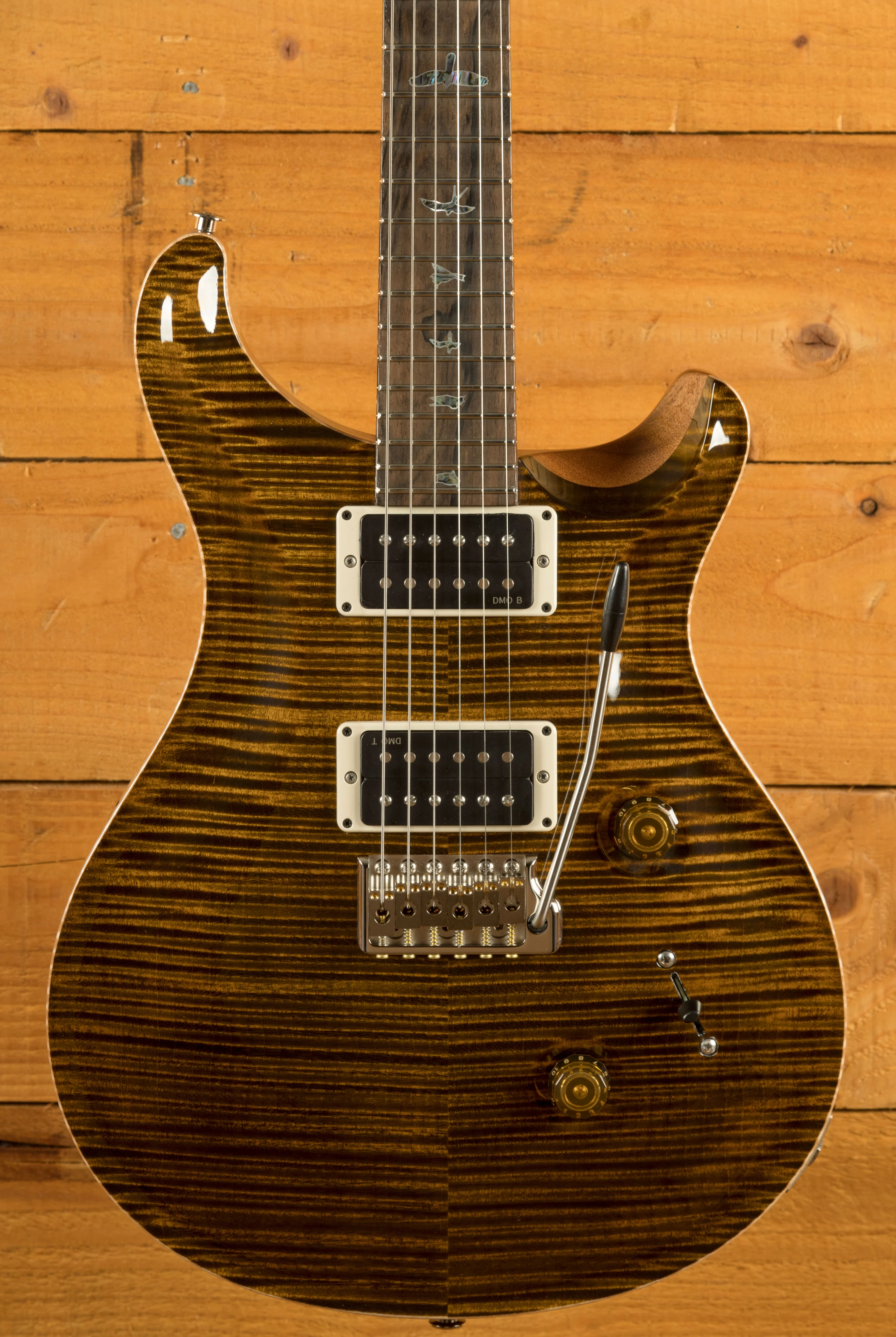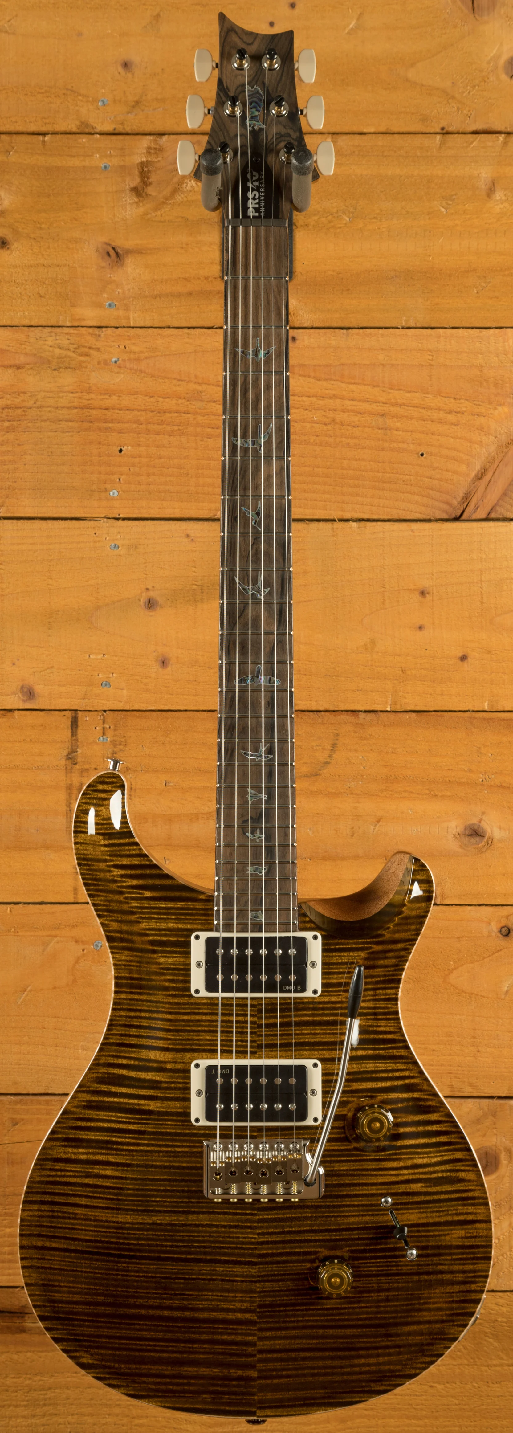 In terms of tone, the 40th Anniversary Custom 24 goes beyond tradition with the all-new PRS DMO (Dynamic, Musical, Open) pickups. These DMO Treble and Bass pickups were developed by Paul Reed Smith and the PRS New Products Engineering team to produce an open, vocal-like sound. This makes the guitar an incredibly versatile instrument, suited for a range of playing styles. Paired with a 5-way blade pickup switch, it offers numerous tonal possibilities.