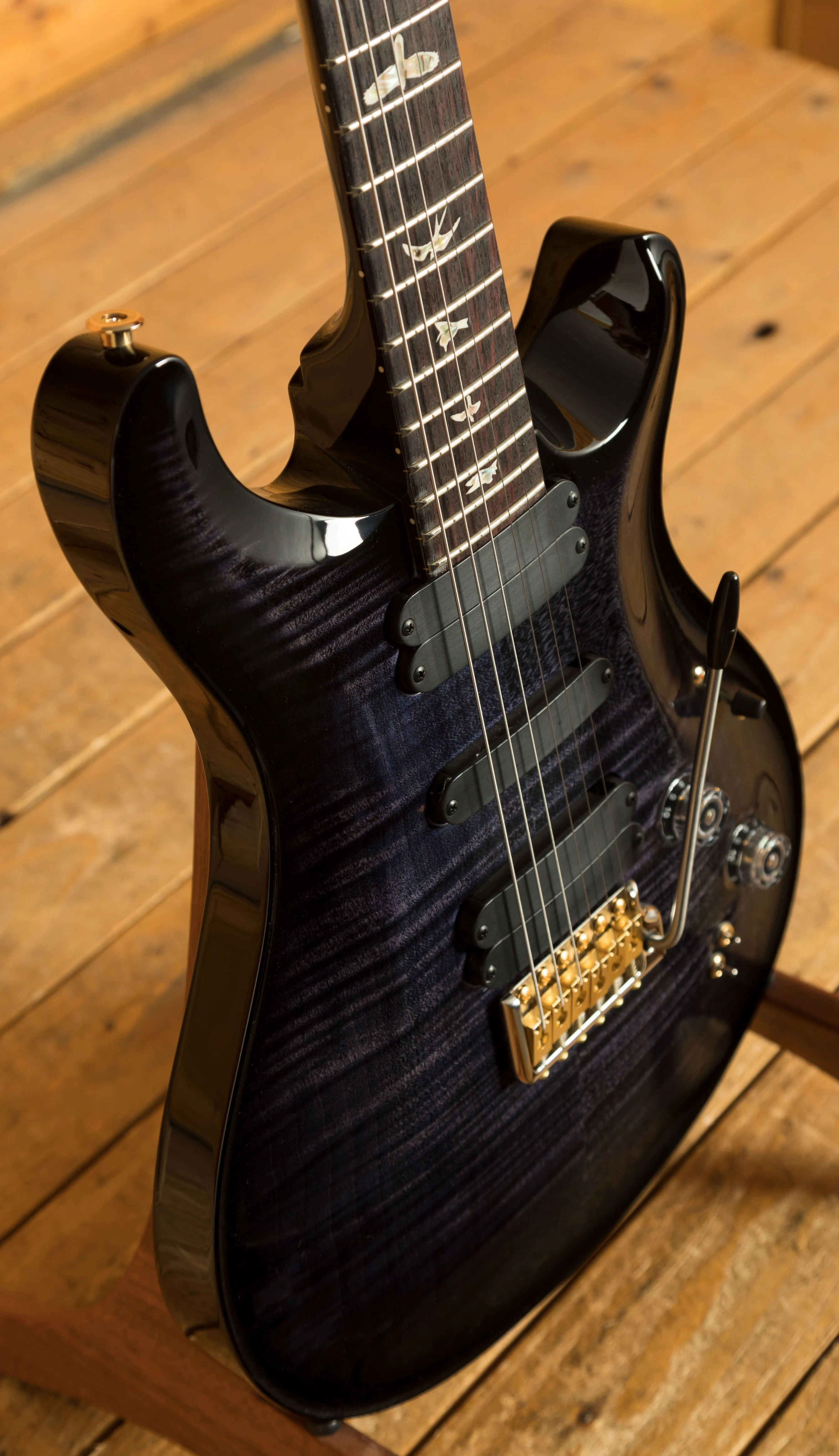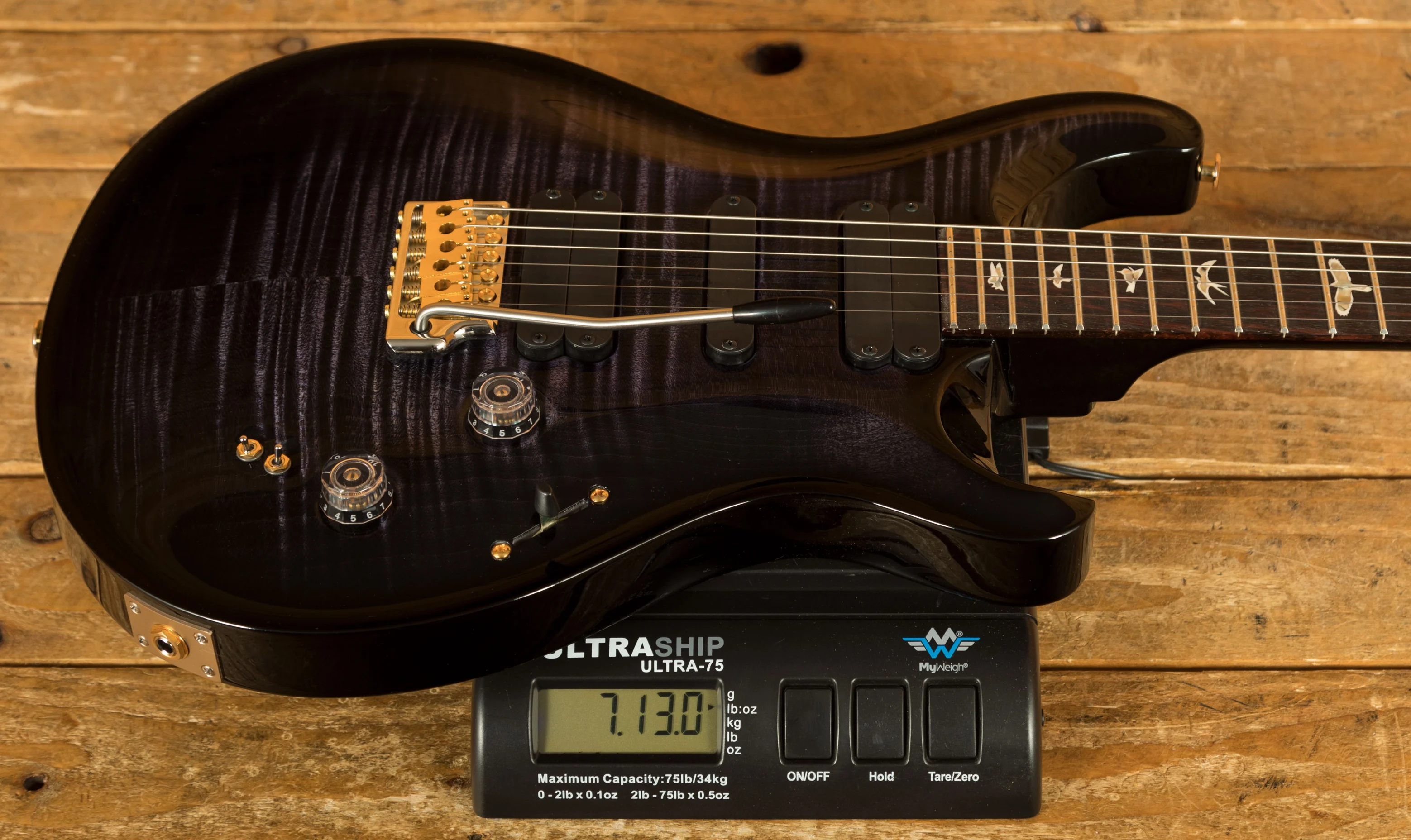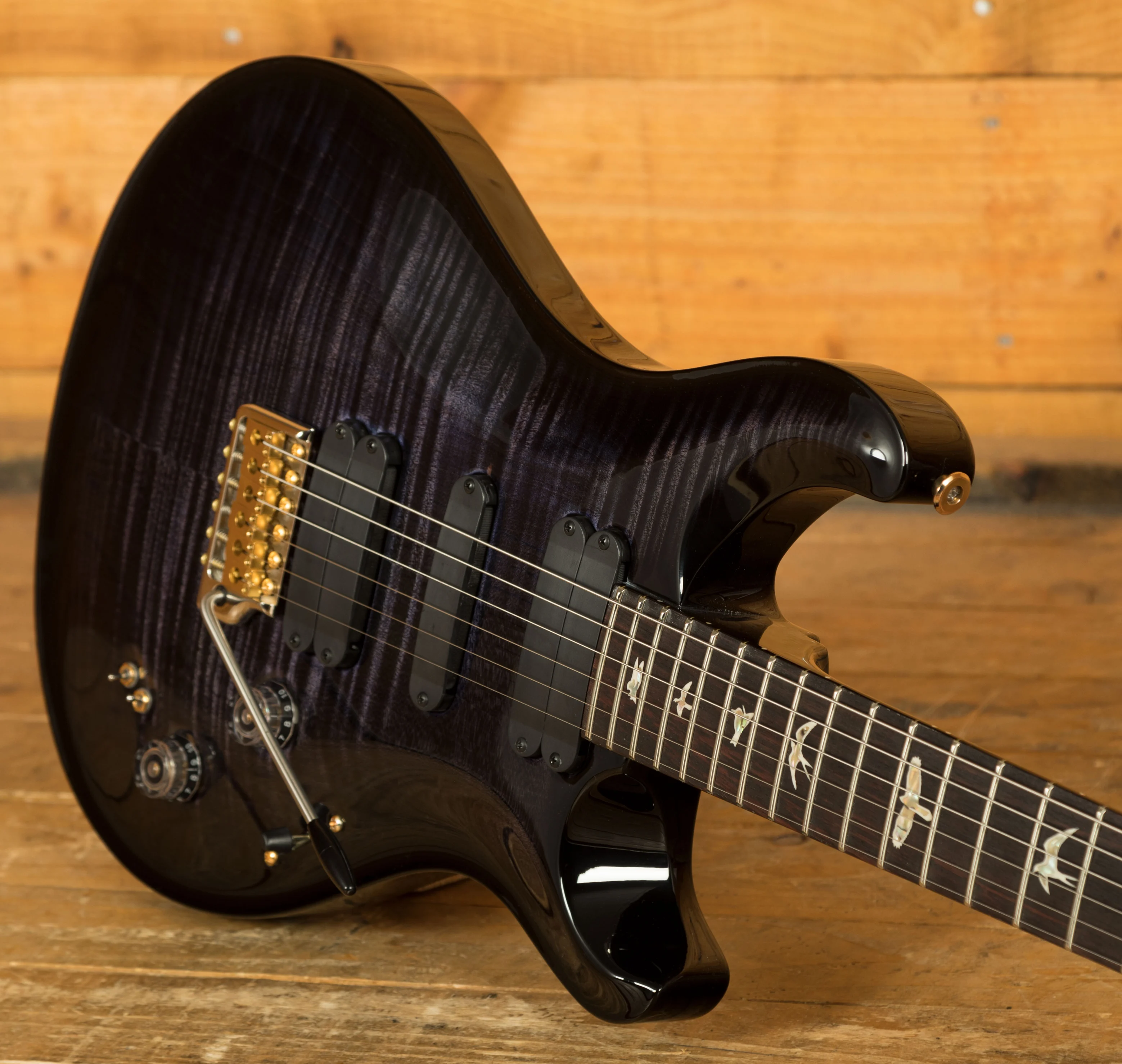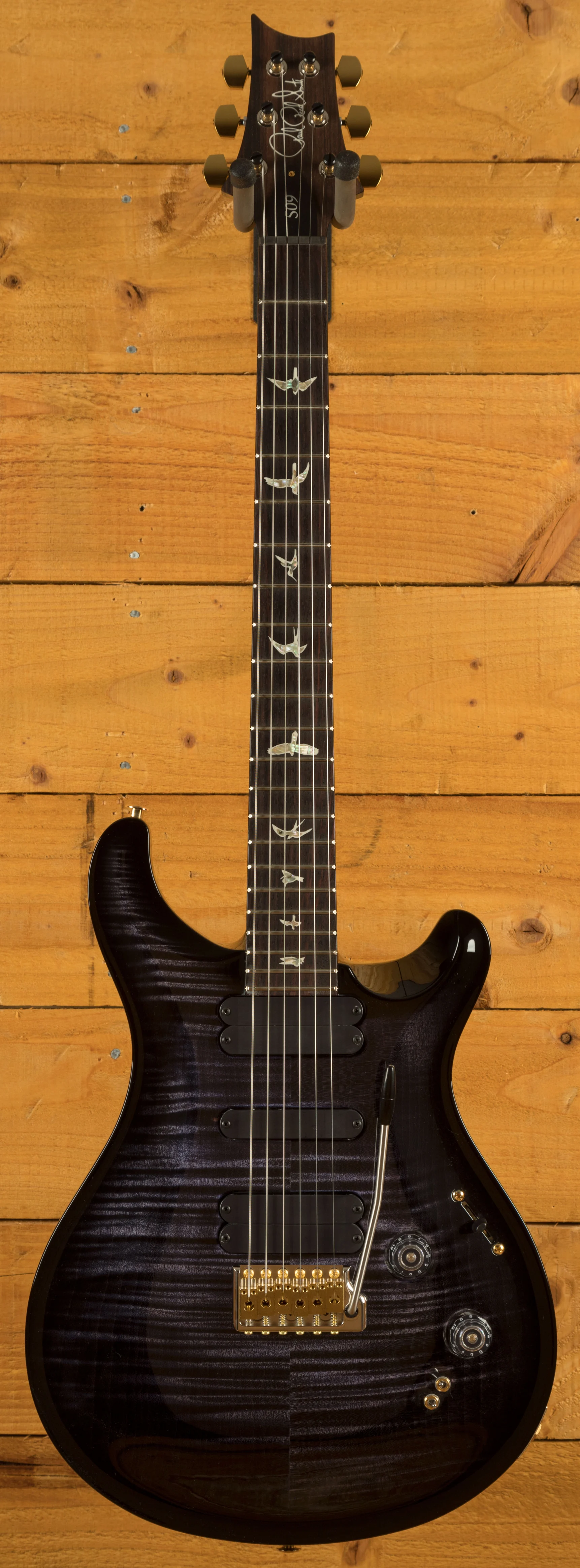 With a stunning carved figured maple top 10 top and mahogany back, it looks every bit as good as it sounds. Finished in Purple Iris Smokeburst Wrap, the 509 is a real statement! A 22 fret Rosewood fingerboard proudly bears the signature PRS birds and with its 25.25" scale length Mahogany neck it feels supremely comfortable.