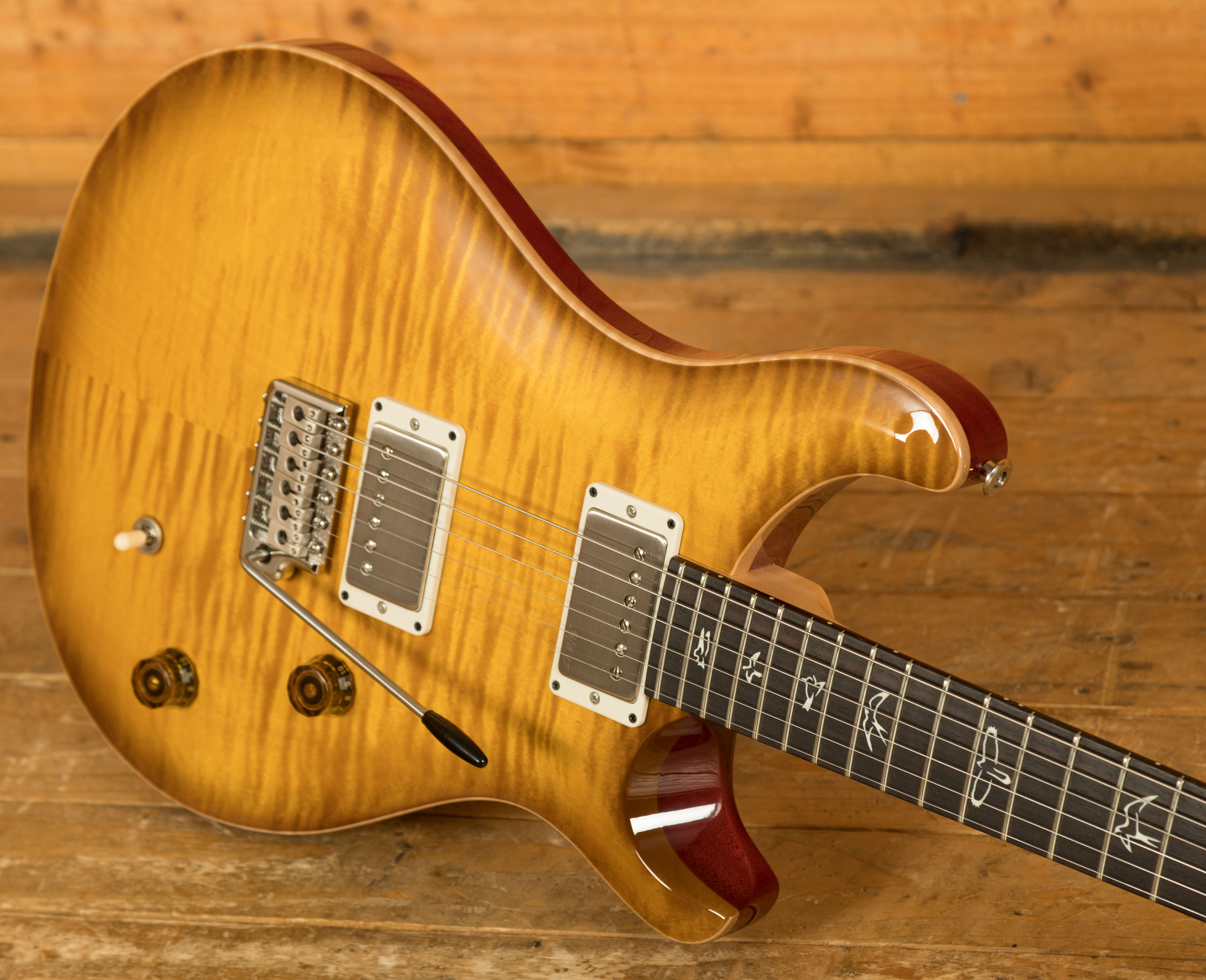 The PRS CE 22 Limited Edition is a high-performance guitar designed for players seeking versatility and clarity. Its bolt-on maple neck provides added brightness and definition, complementing the warm, resonant tone of the mahogany body with maple top. The 22-fret, 25" scale length Pattern Regular neck ensures comfort and familiarity, while the rosewood fretboard with a 10" radius and classic bird inlays enhances playability and visual appeal. The guitar's construction supports consistent resonance and dynamic response, making it suitable for both stage and studio use.