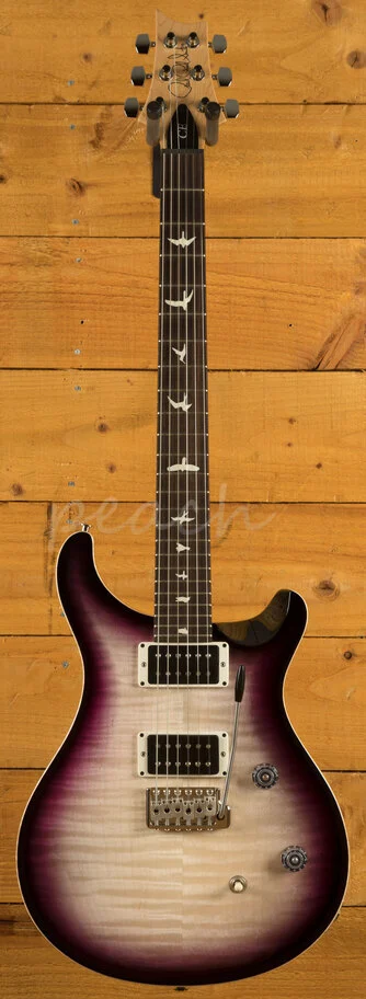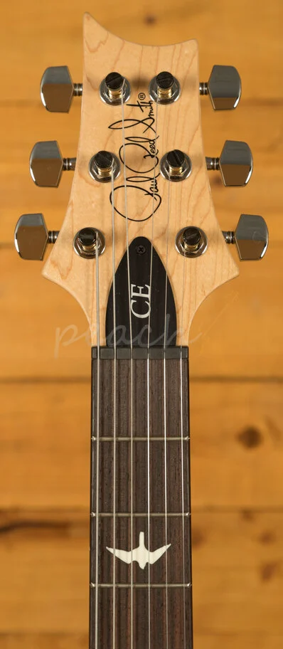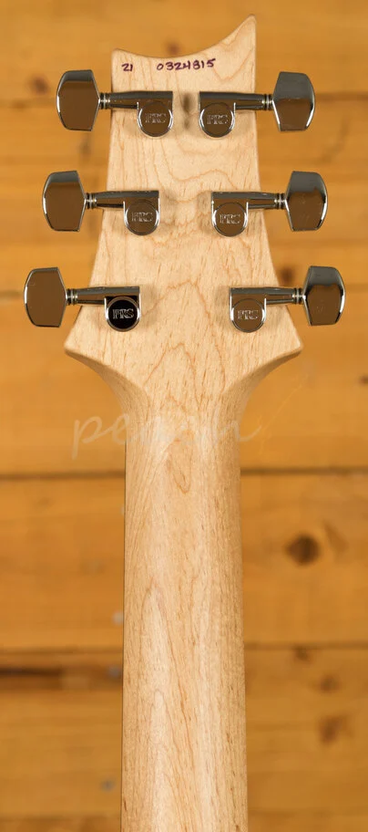 The Mahogany body, with a carved Maple top, offers a rich warmth and depth that complements the snappy response of the bolt on Maple neck. With a Pattern Thin profile, 25" scale length and of course, 24 frets the Maple neck feels comfortable and familiar. The iconic PRS birds sit proudly atop the Rosewood fingerboard for the definitive PRS experience.
