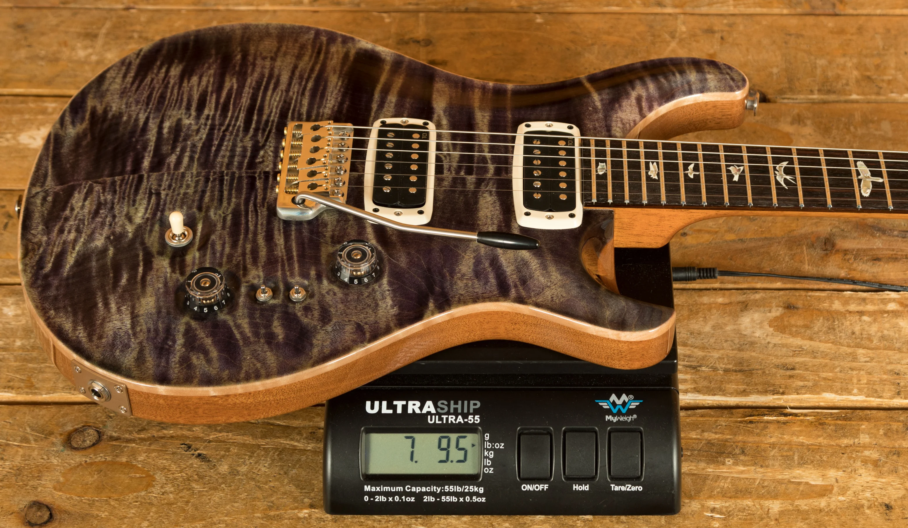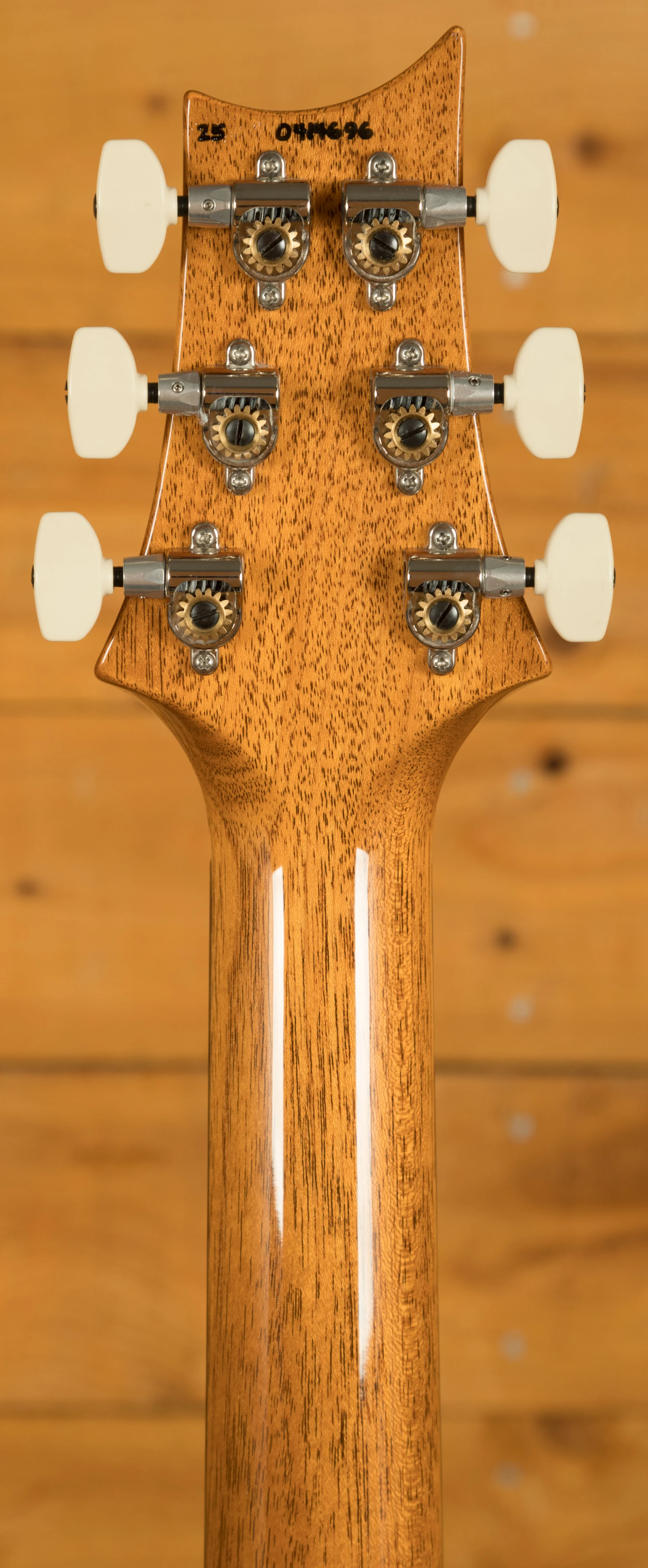 The Mahogany body with the Violin Carved Maple top offers a rich warmth and depth that complements the beautiful aesthetic. With a Pattern Thin profile, 25" scale length and of course, 24 frets, the Mahogany neck feels really comfortable and familiar. The iconic PRS birds sit proudly atop the 10" Rosewood fingerboard for the definitive PRS experience.