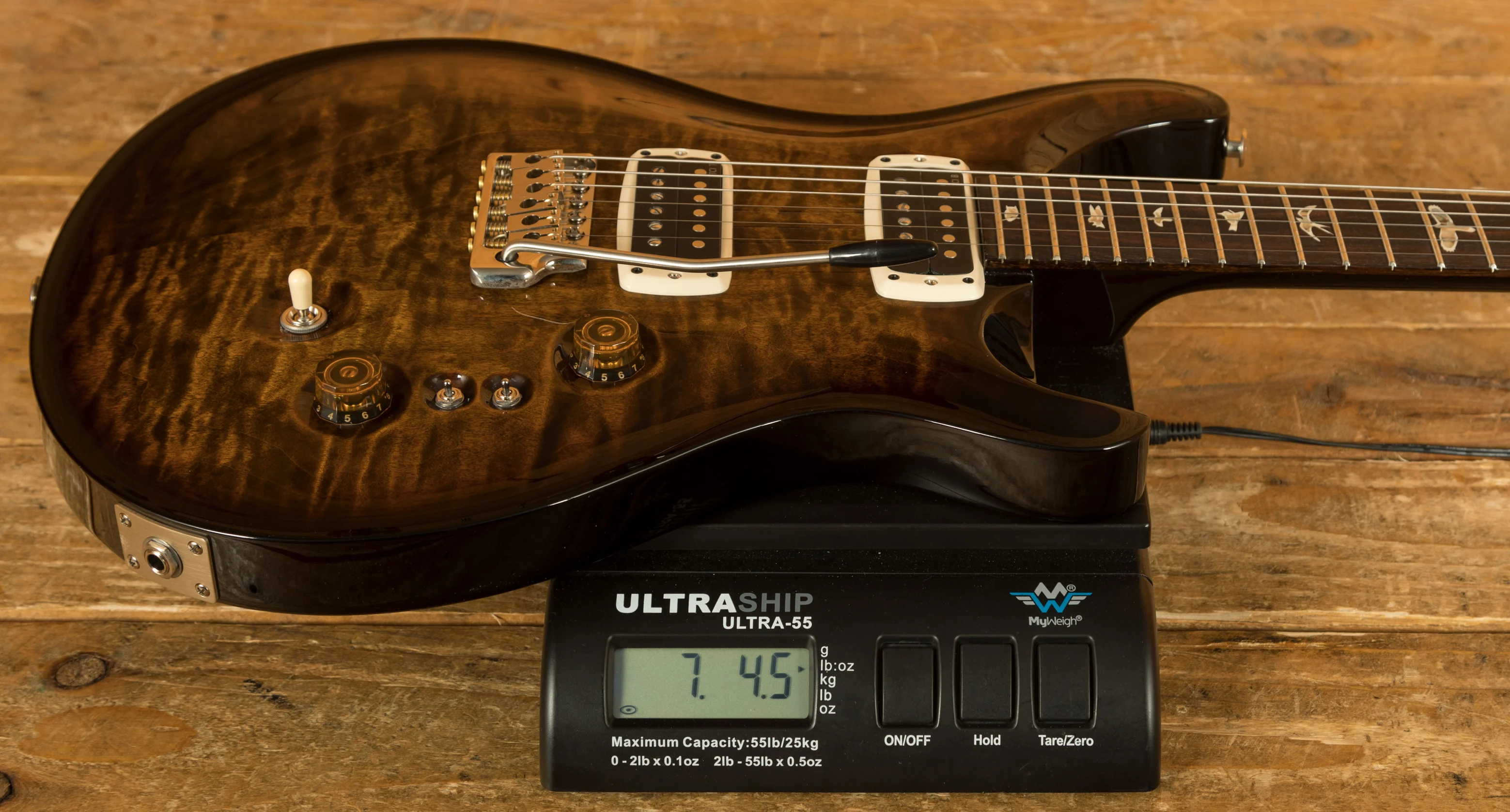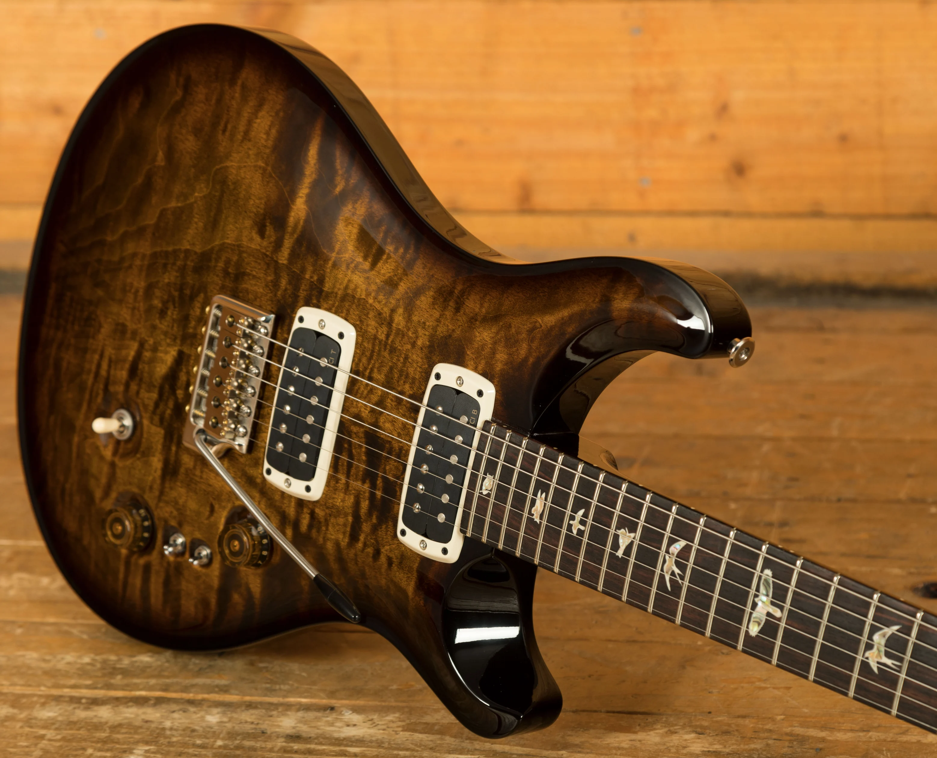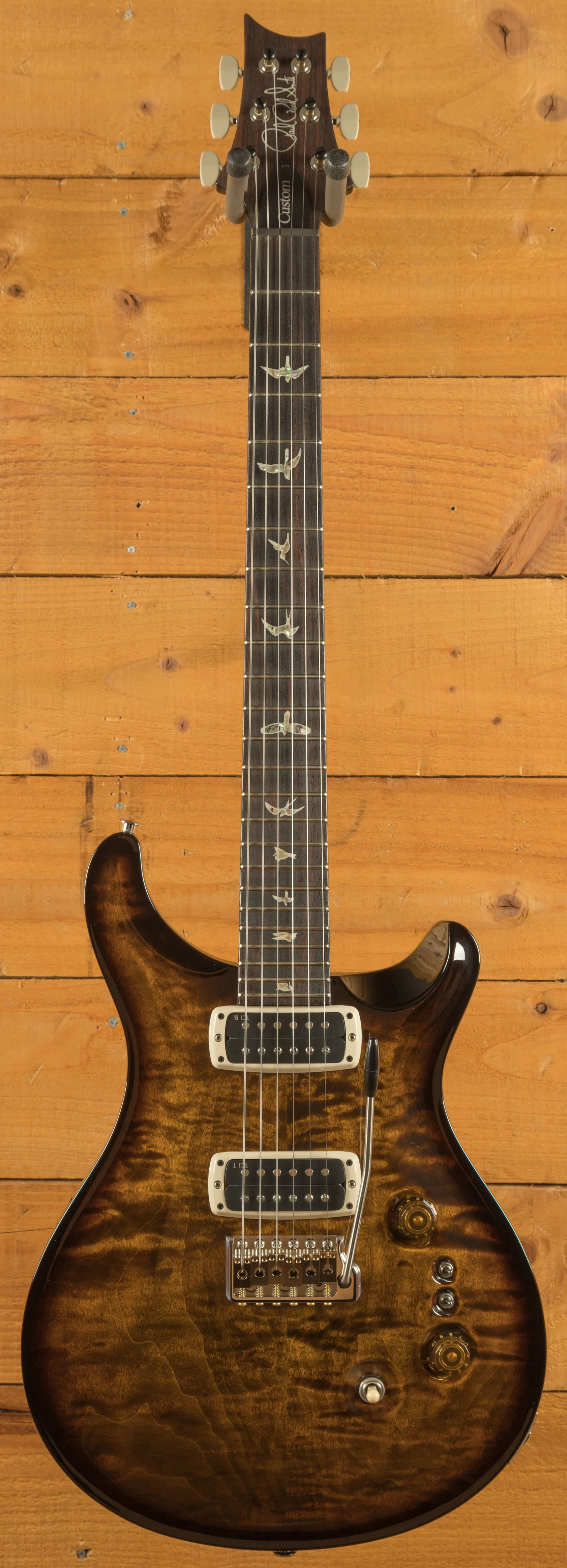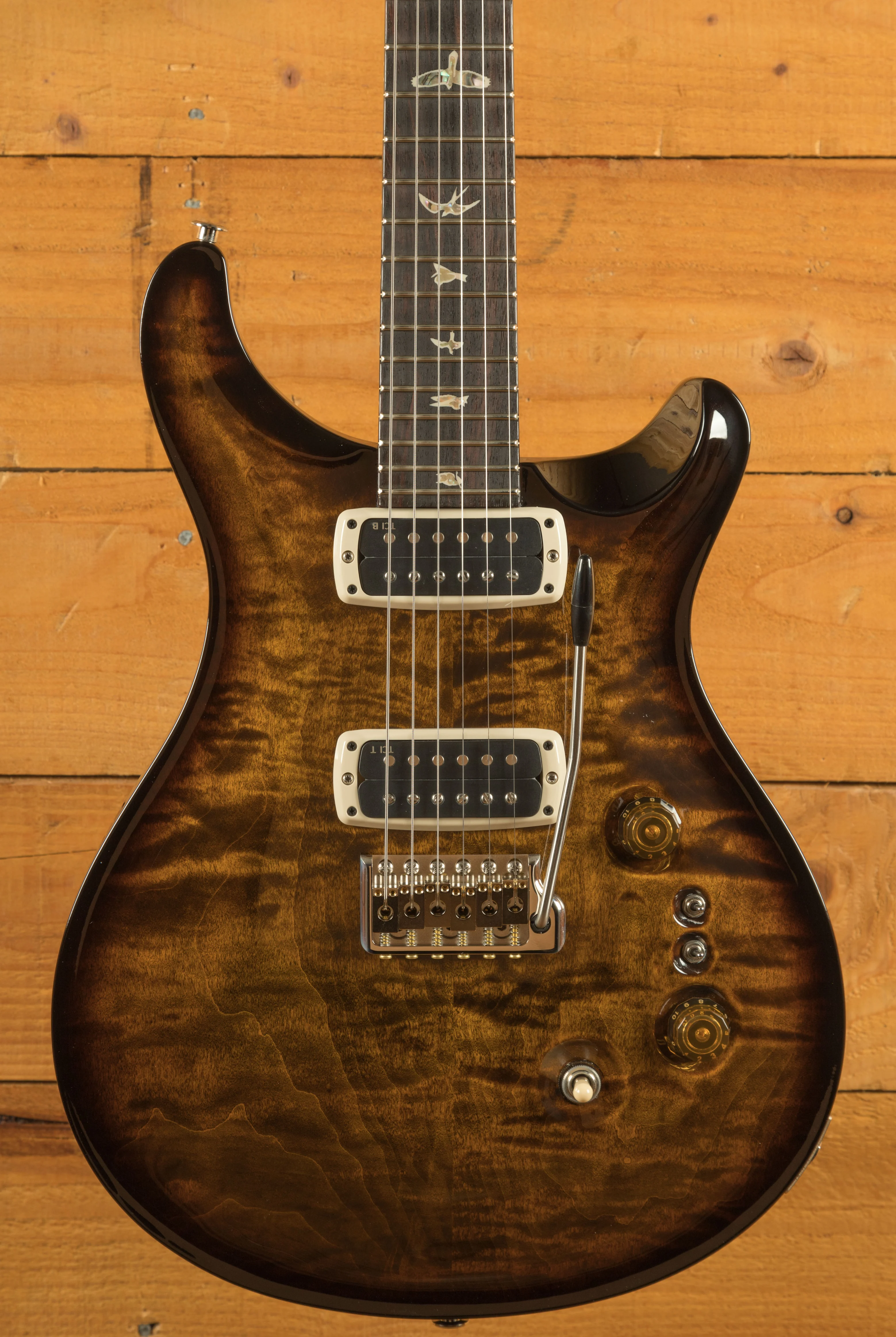 Pickups & Hardware: TCI pickups with a 3-way blade switch and two EQ Mini-Toggle Switches for EQ adjustments, complemented by a PRS Gen III tremolo and Phase III locking tuners with wing buttons.