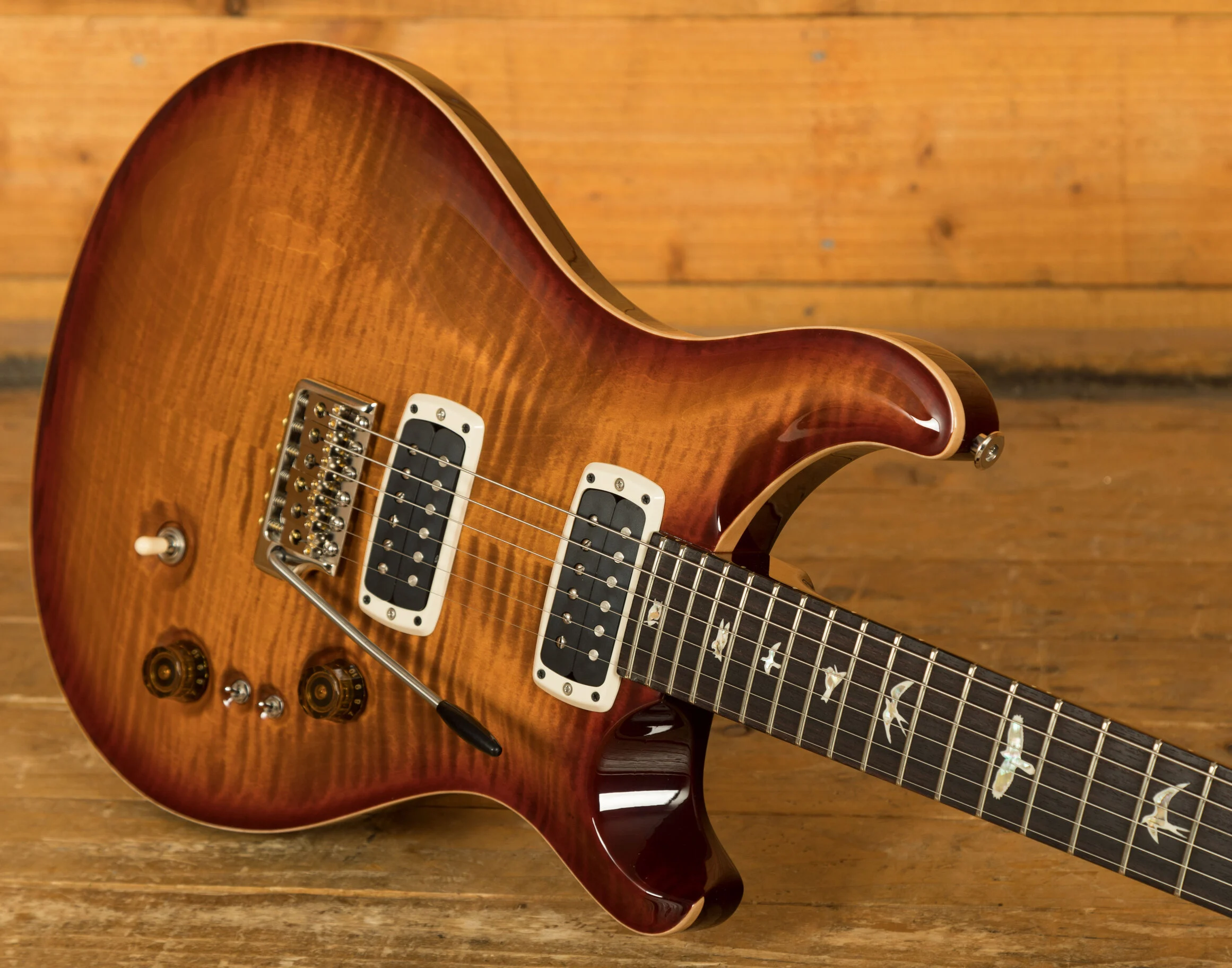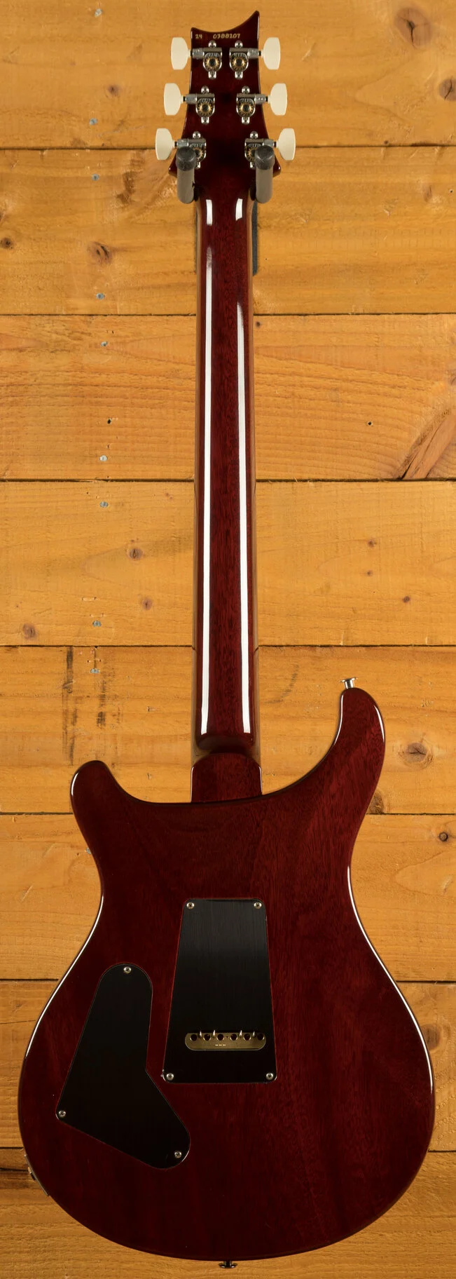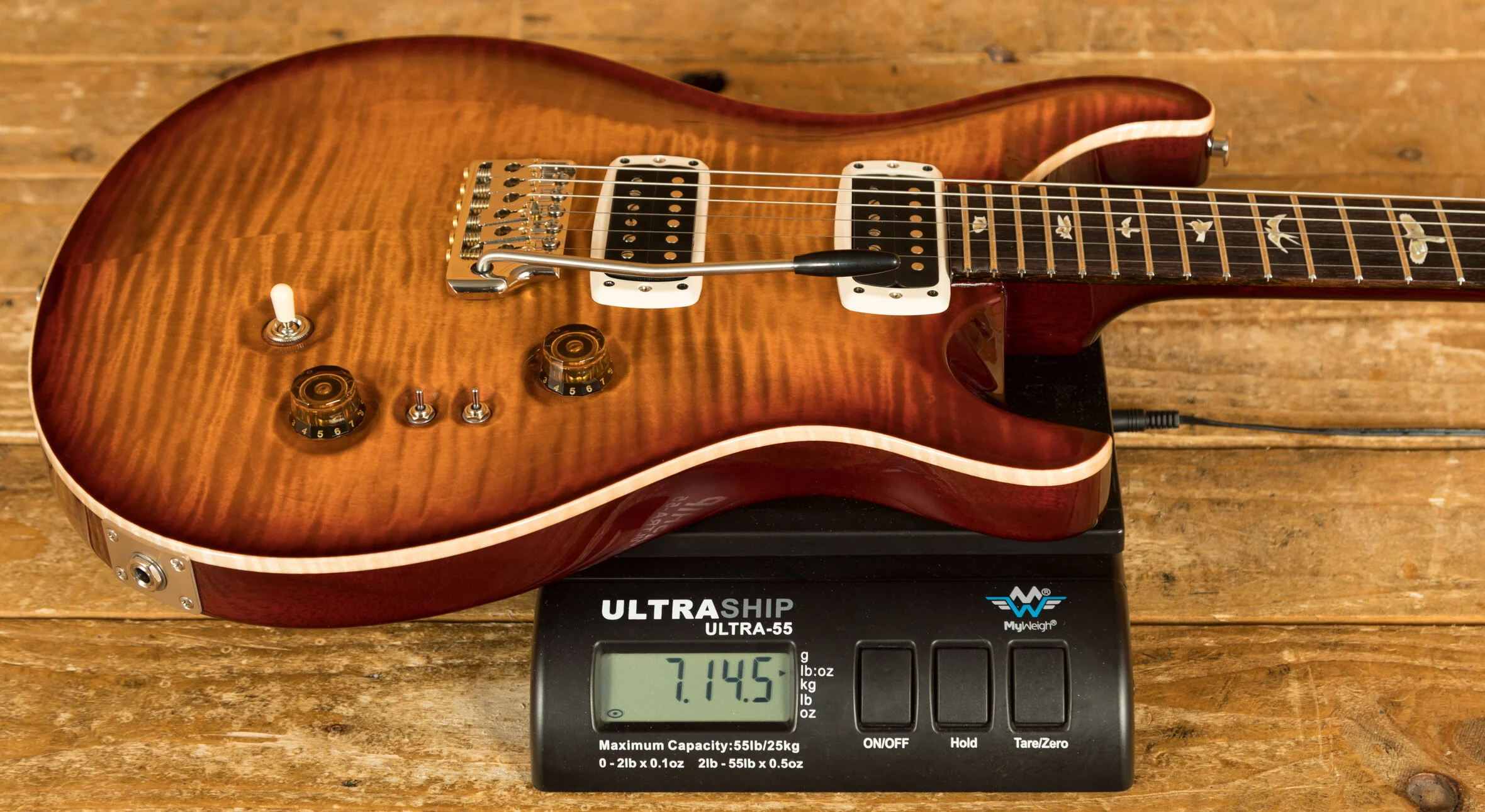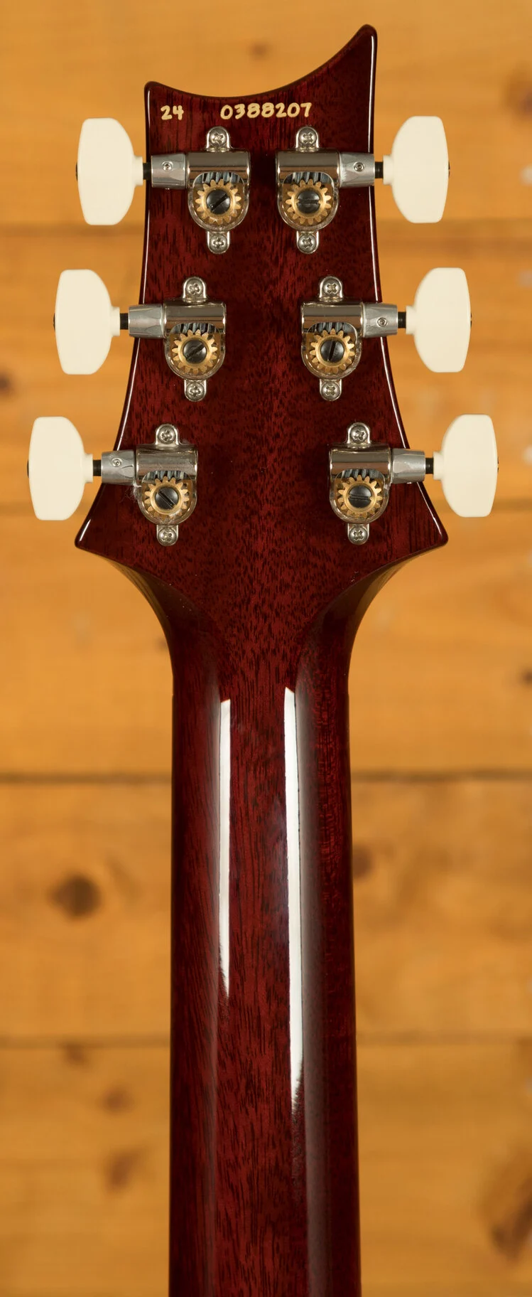 The Mahogany body with the Violin Carved Maple top offers a rich warmth and depth that complements the beautiful aesthetic. With a Pattern Thin profile, 25" scale length and of course, 24 frets, the Mahogany neck feels really comfortable and familiar. The iconic PRS birds sit proudly atop the Rosewood fingerboard for the definitive PRS experience.
