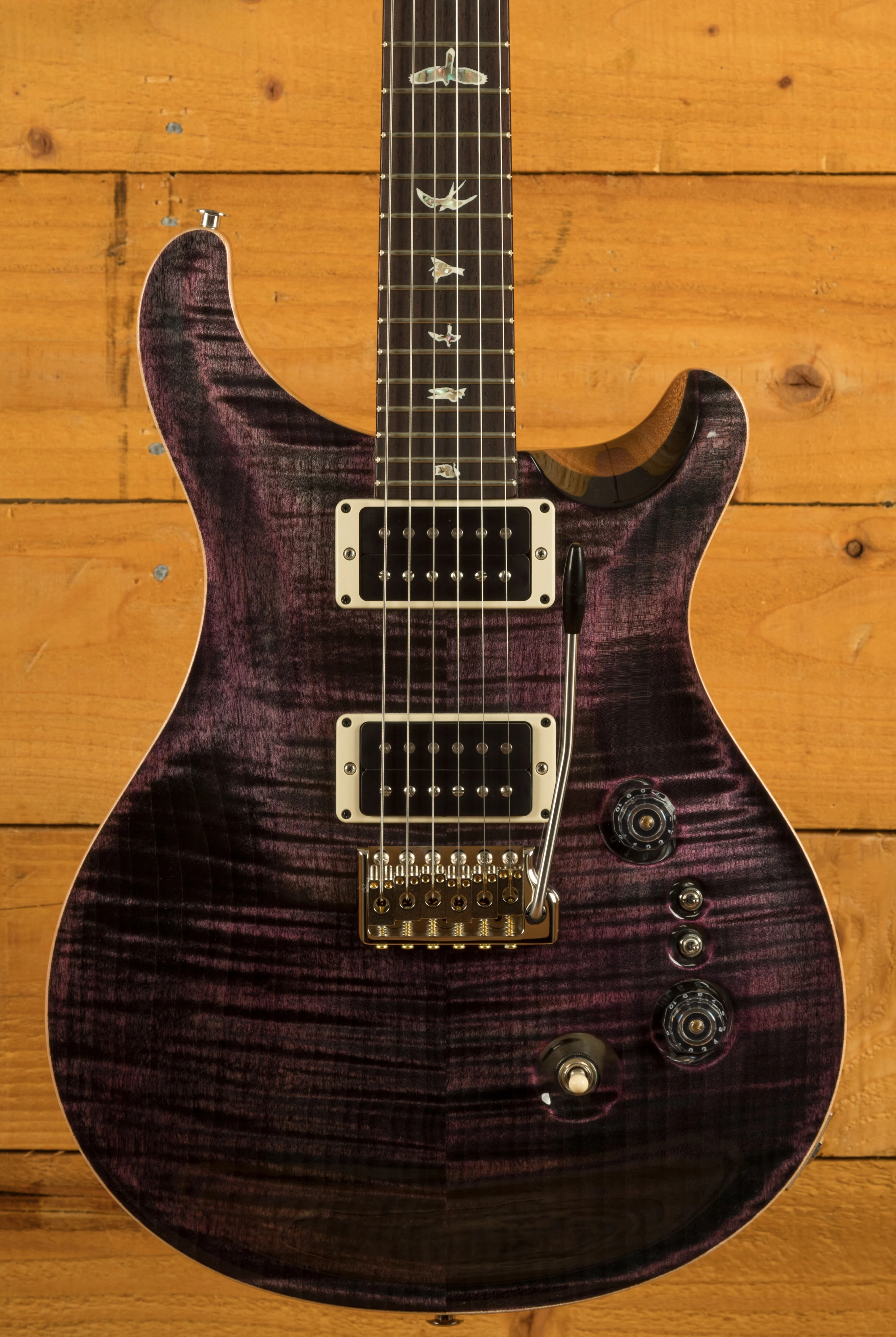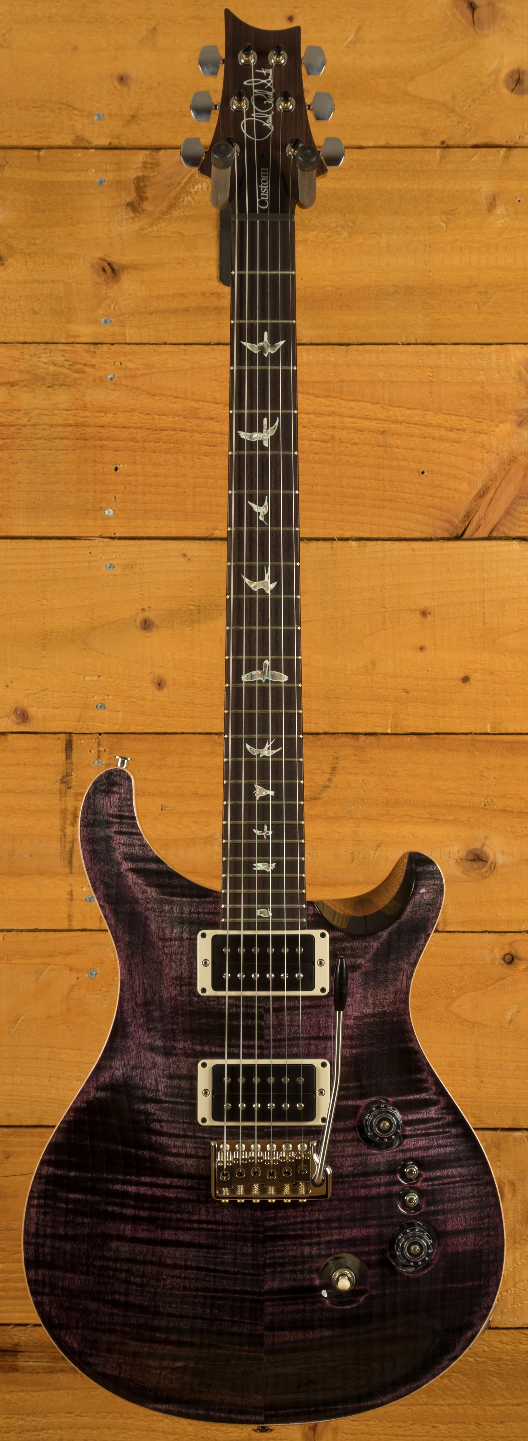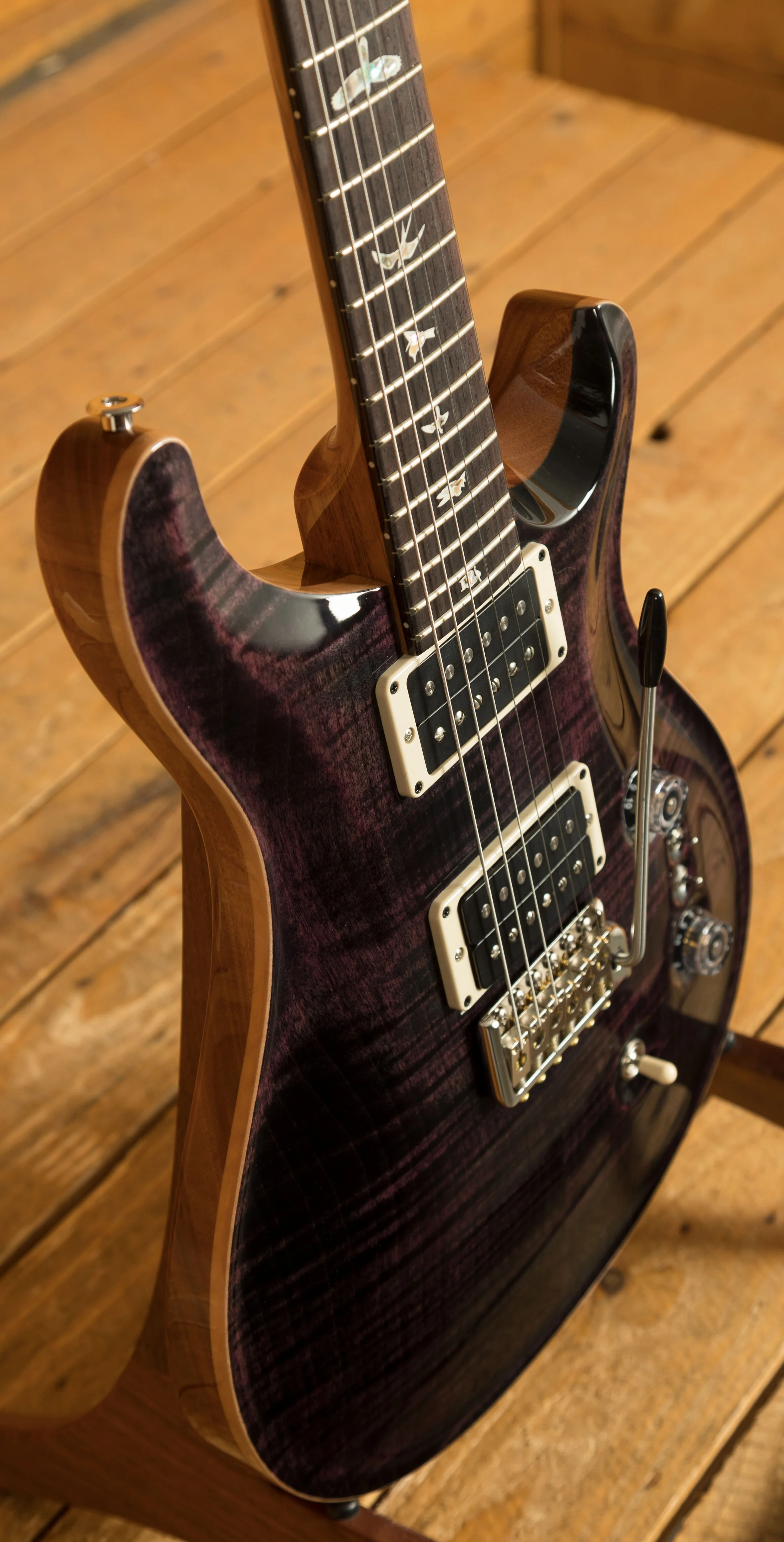 The Mahogany body with the Violin Carved Figured Maple top offers a rich warmth and depth that complements the beautiful aesthetic. With a Pattern Thin profile, 25" scale length and of course, 24 frets, the Mahogany neck feels really comfortable and familiar. The iconic PRS birds sit proudly atop the Rosewood fingerboard for the definitive PRS experience.