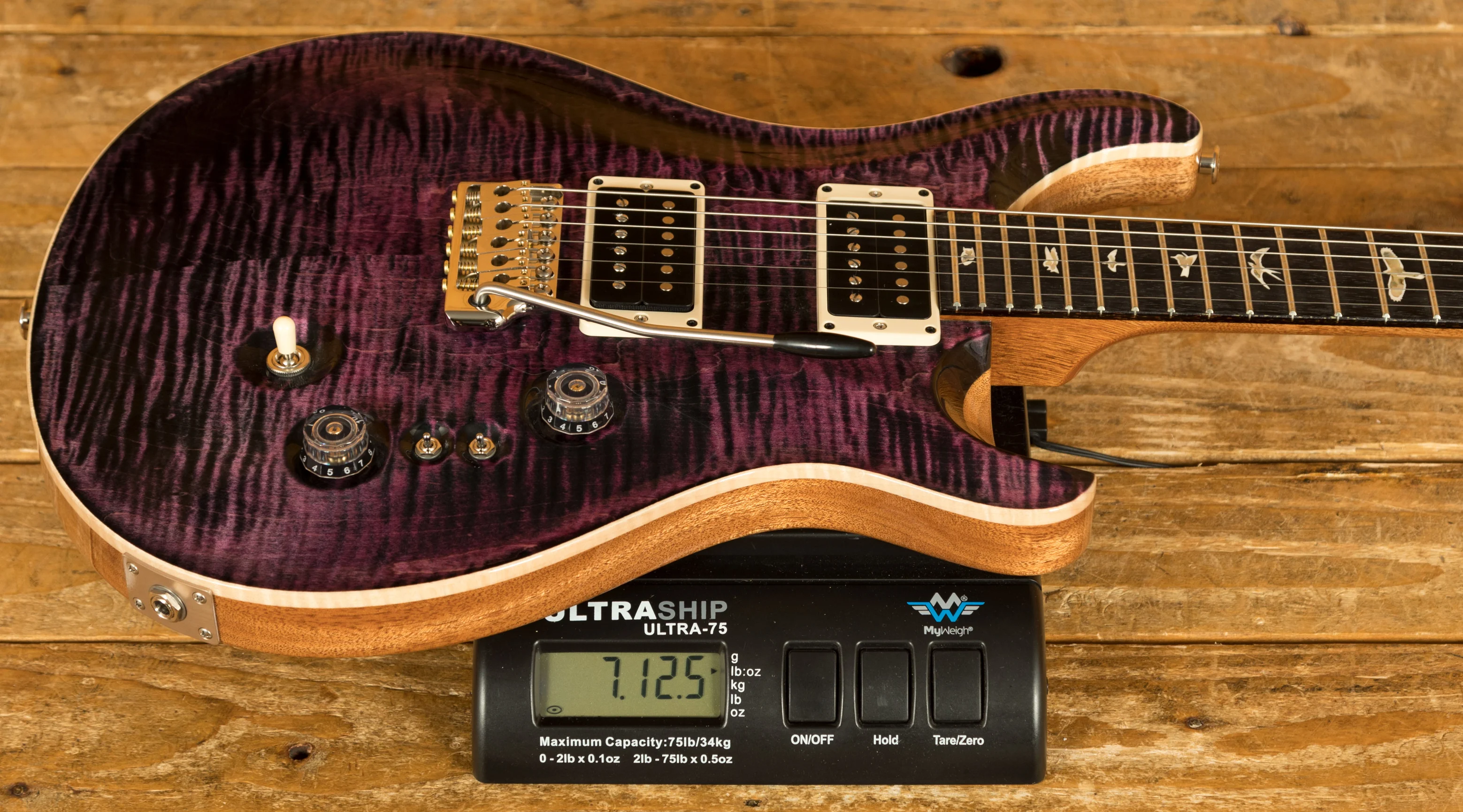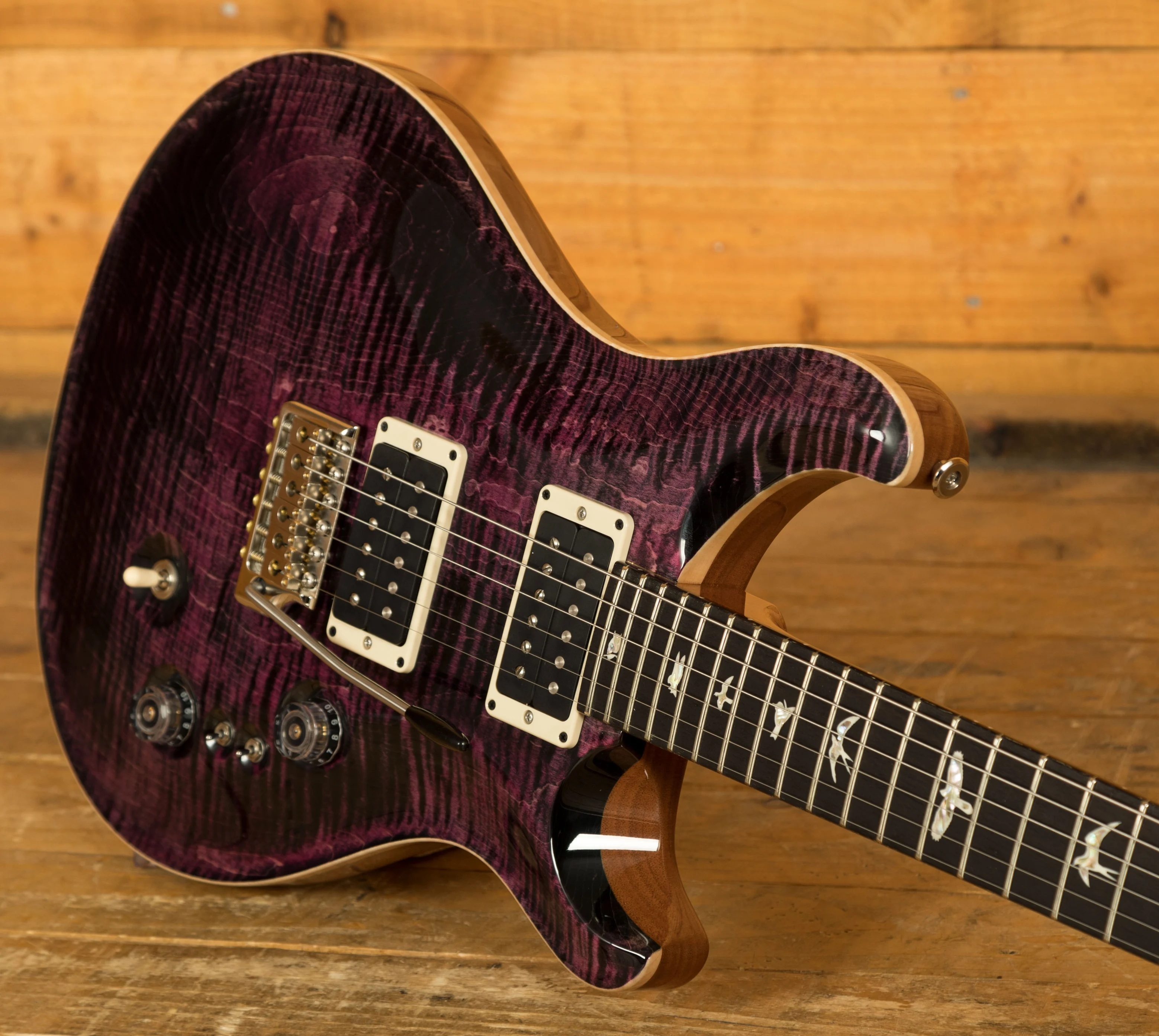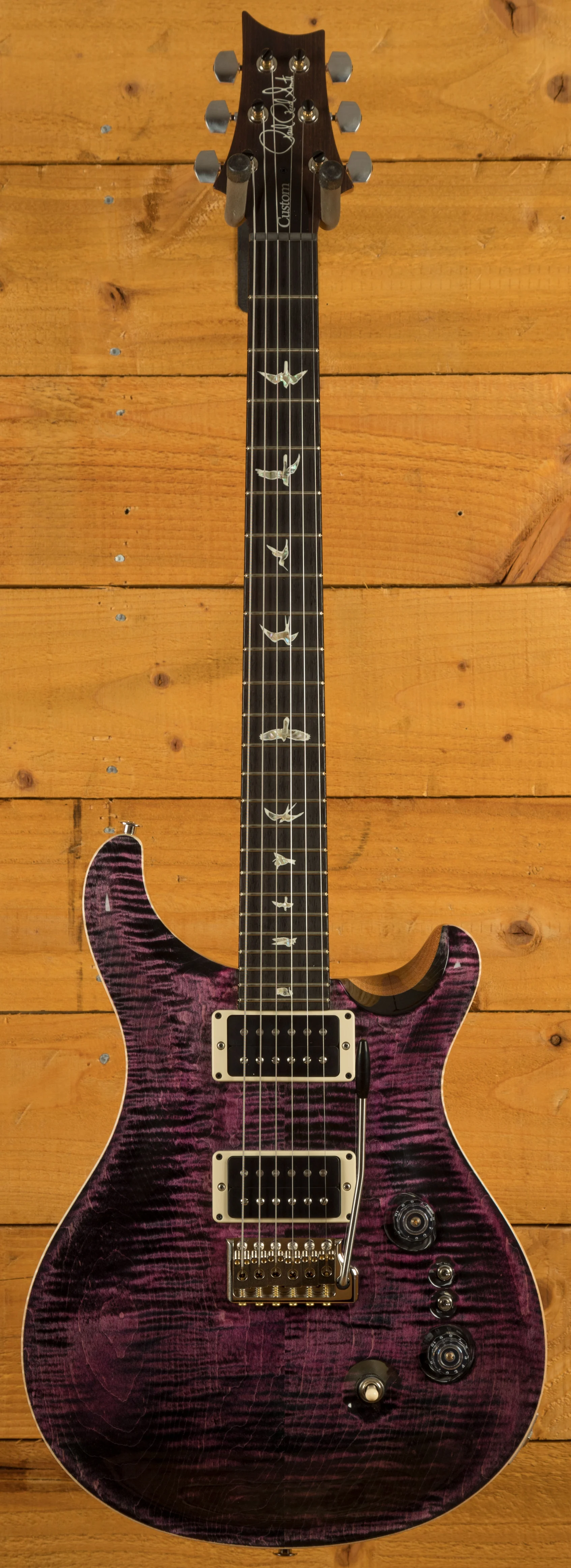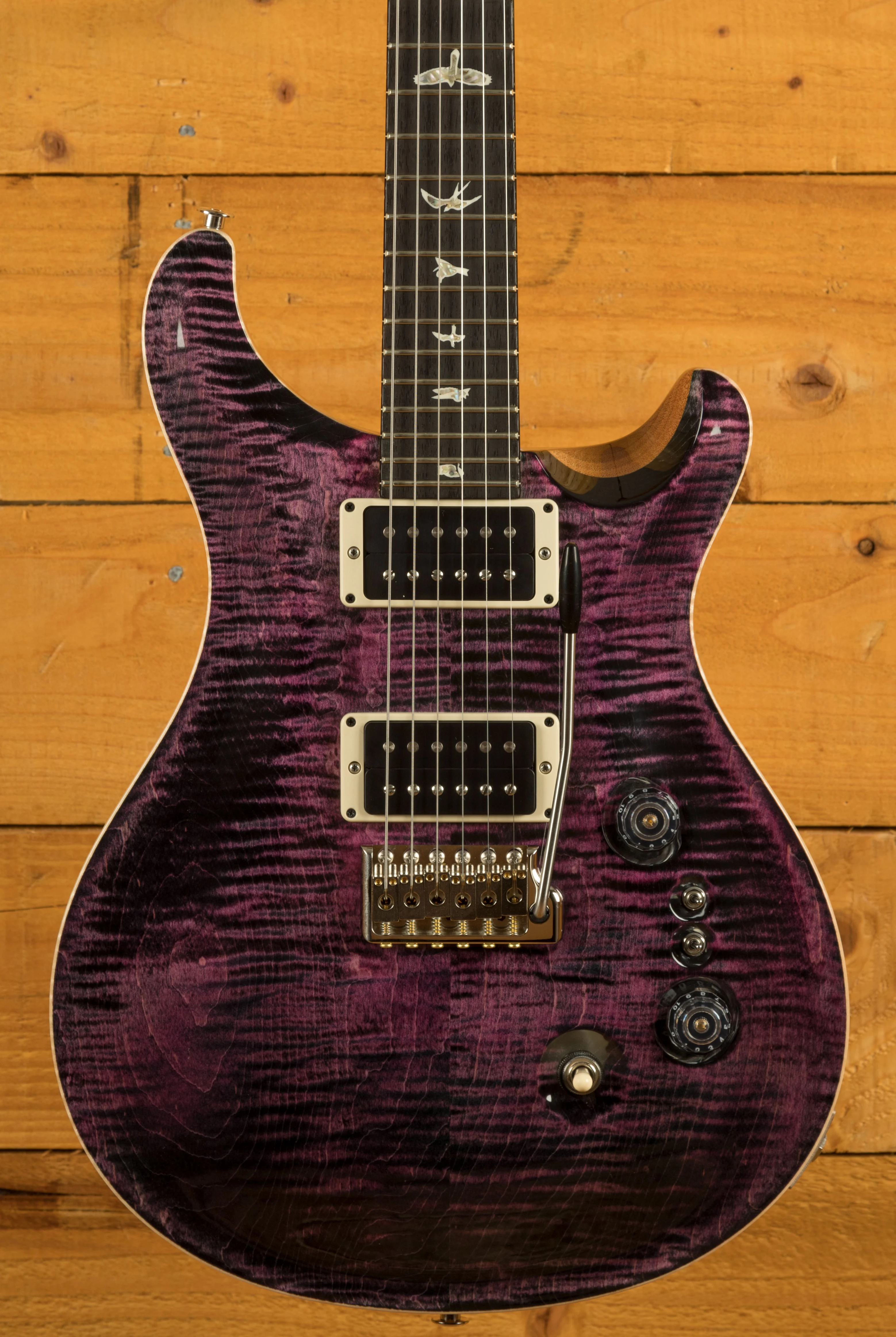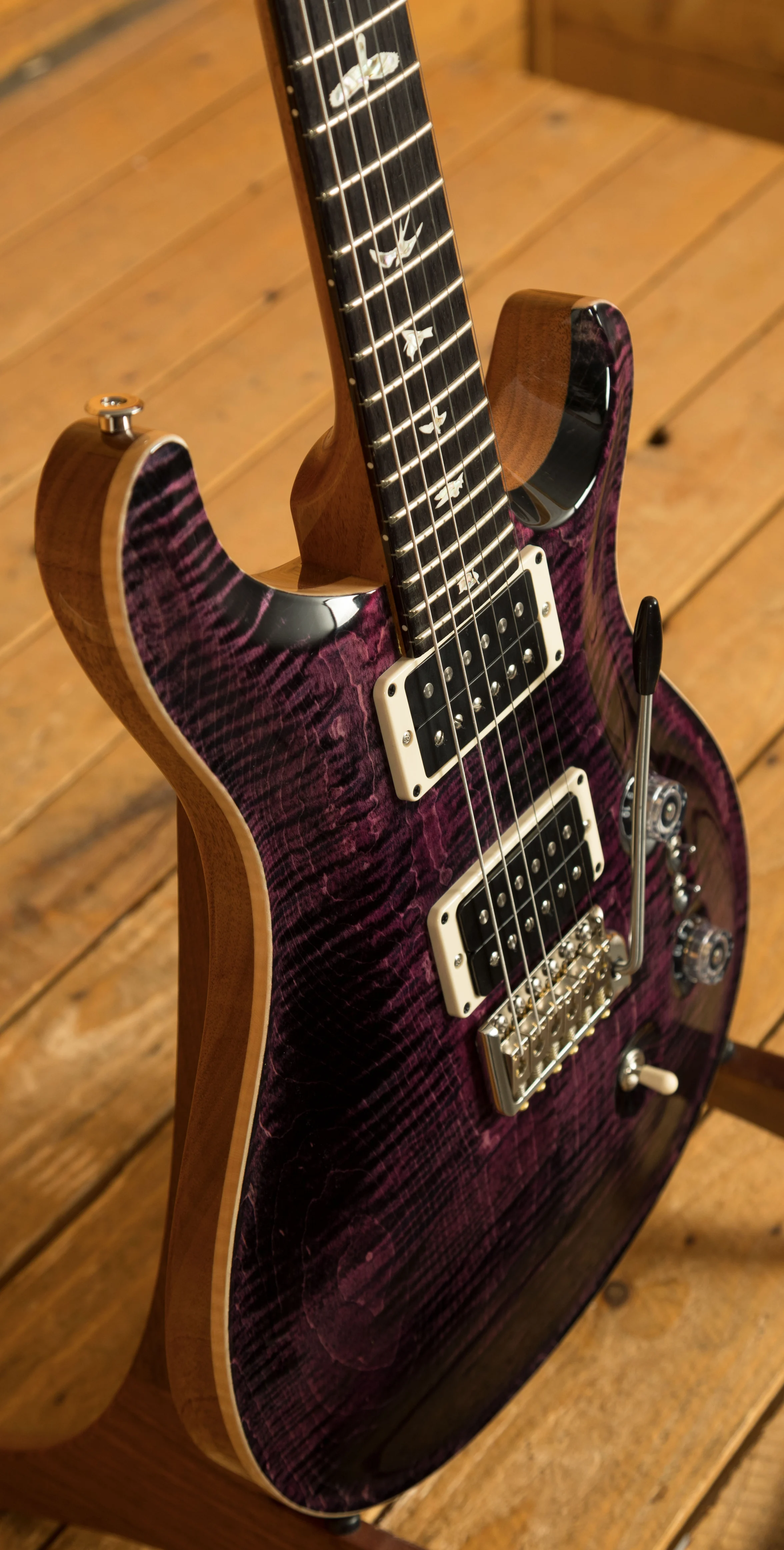 The Mahogany body with the Violin Carved Figured Maple top offers a rich warmth and depth that complements the beautiful aesthetic. With a Pattern Thin profile, 25" scale length and of course, 24 frets, the Mahogany neck feels really comfortable and familiar. The iconic PRS birds sit proudly atop the Rosewood fingerboard for the definitive PRS experience.