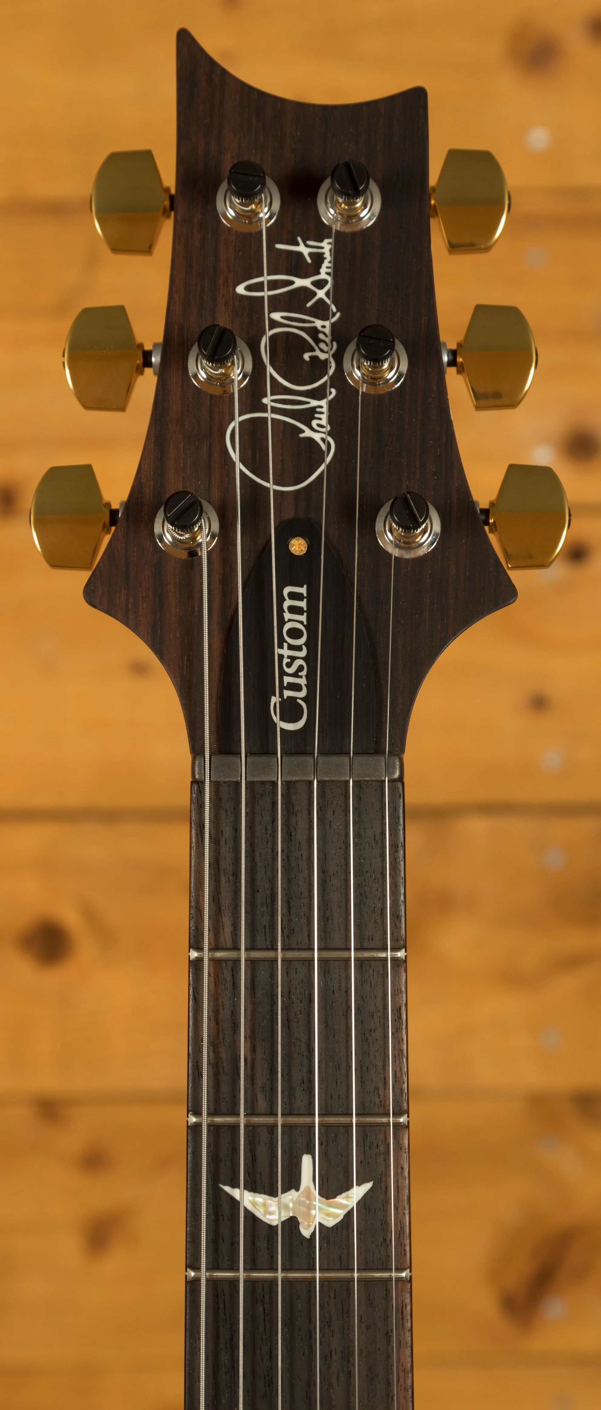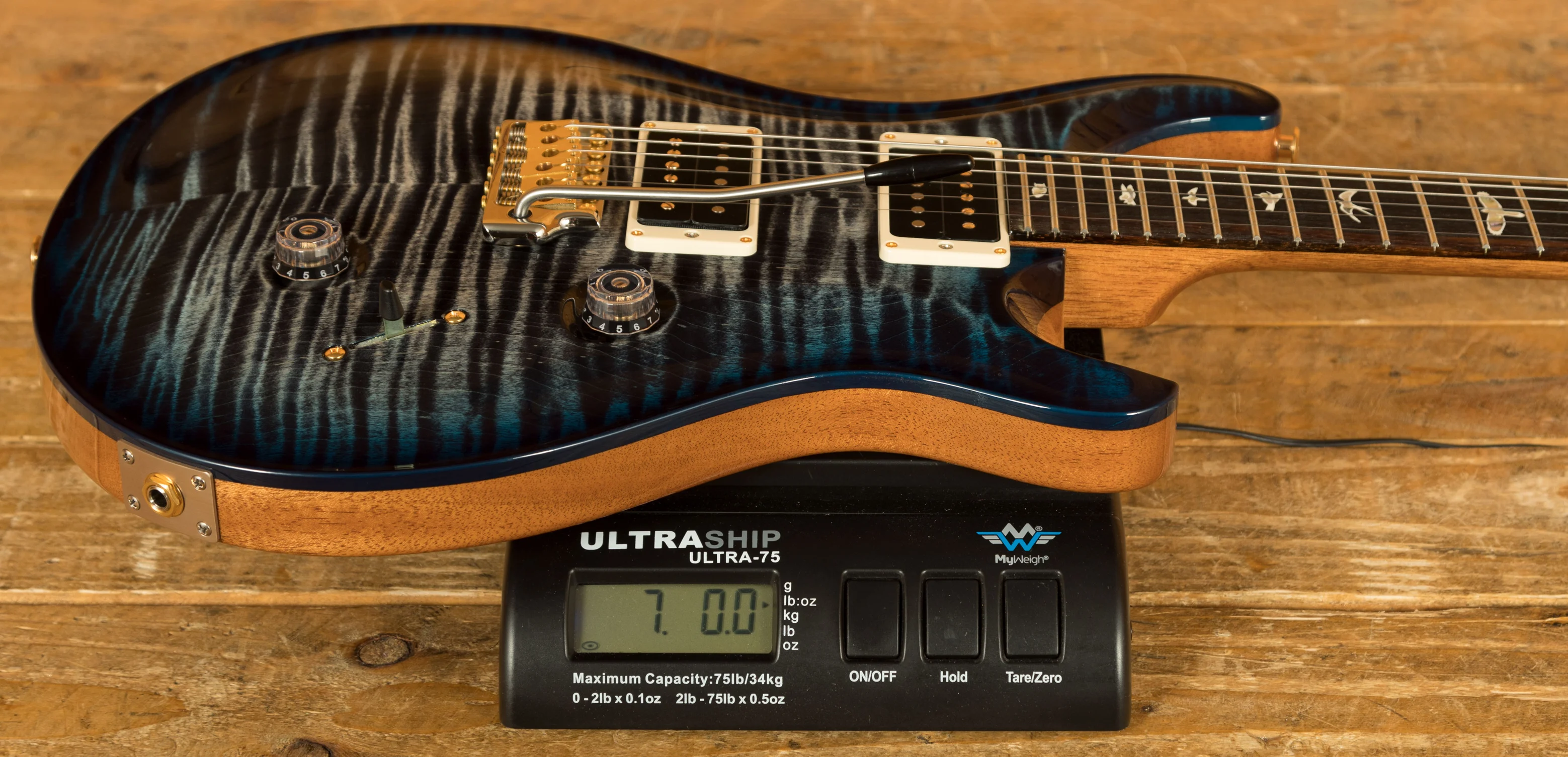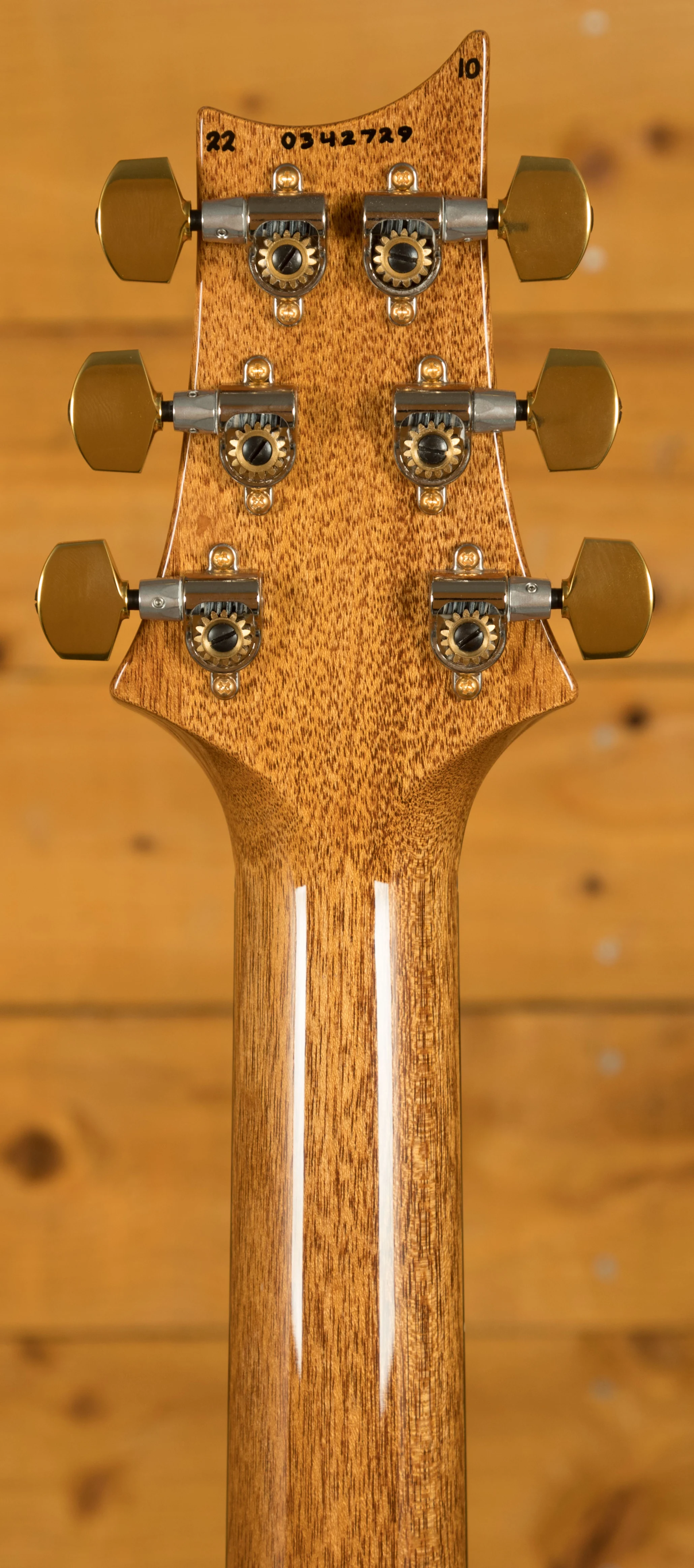 The Mahogany body with carved figured Maple 10 top a offers a rich warmth and depth that complements the beautiful custom colour finish. With a 25" scale length, Pattern Thin profile and of course, 24 frets, the Mahogany neck feels really comfortable and familiar. The iconic PRS birds sit proudly atop the Rosewood fingerboard for the definitive PRS experience.