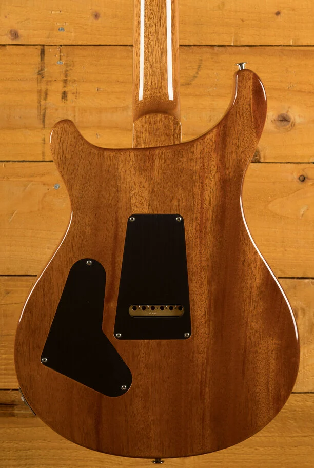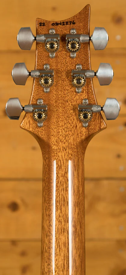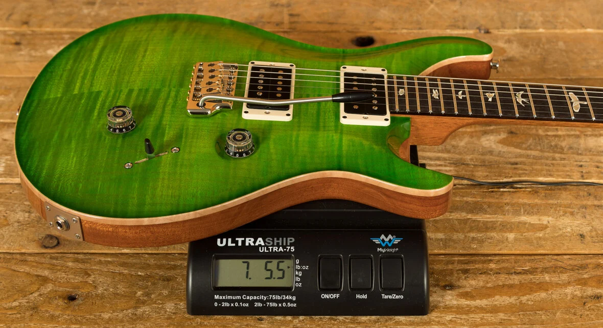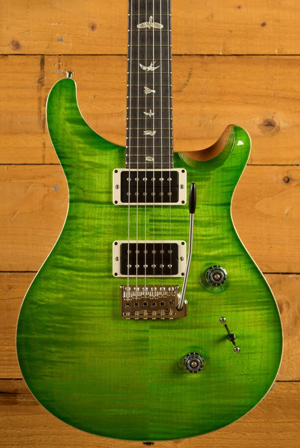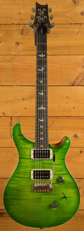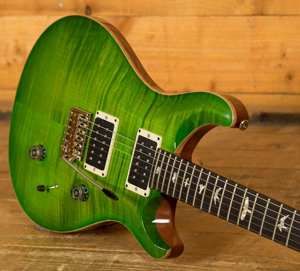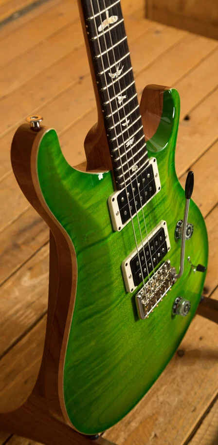 The Mahogany body with carved figured Maple top a offers a rich warmth and depth that complements the beautiful Eriza Verde finish. With a 25" scale length, Pattern Thin profile and of course, 24 frets, the Mahogany neck feels really comfortable and familiar. The iconic PRS birds sit proudly atop the Rosewood fingerboard for the definitive PRS experience.