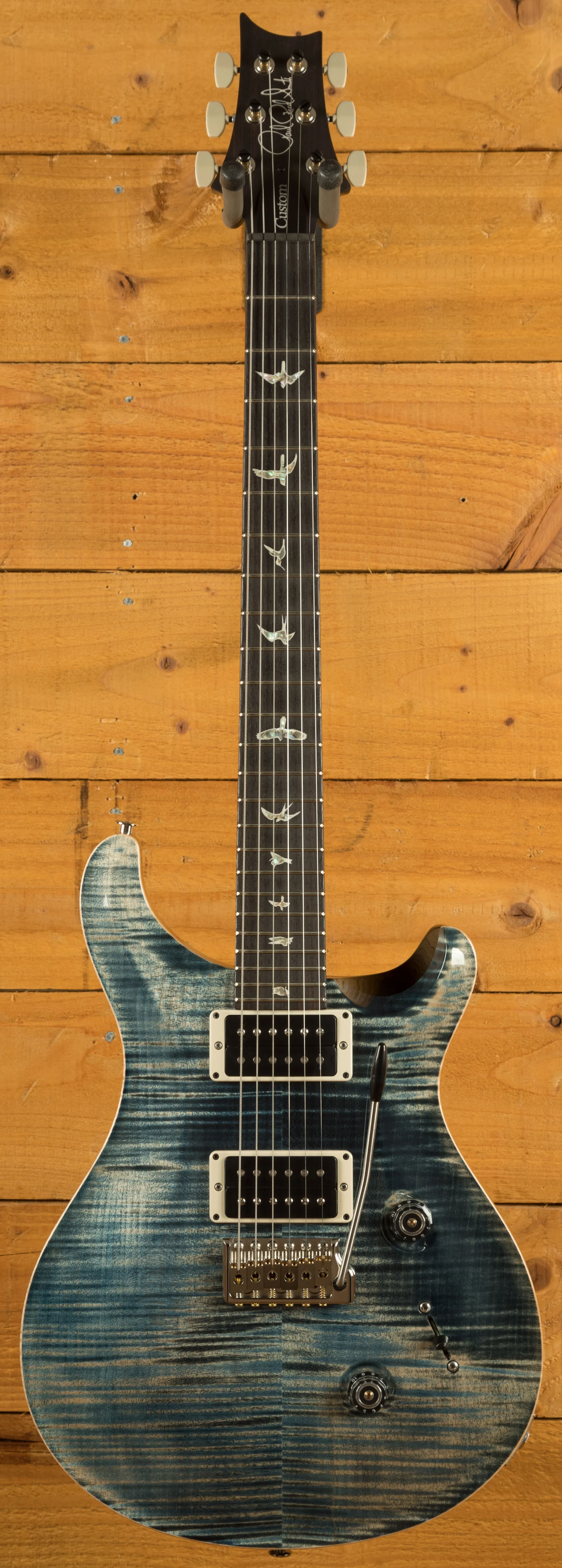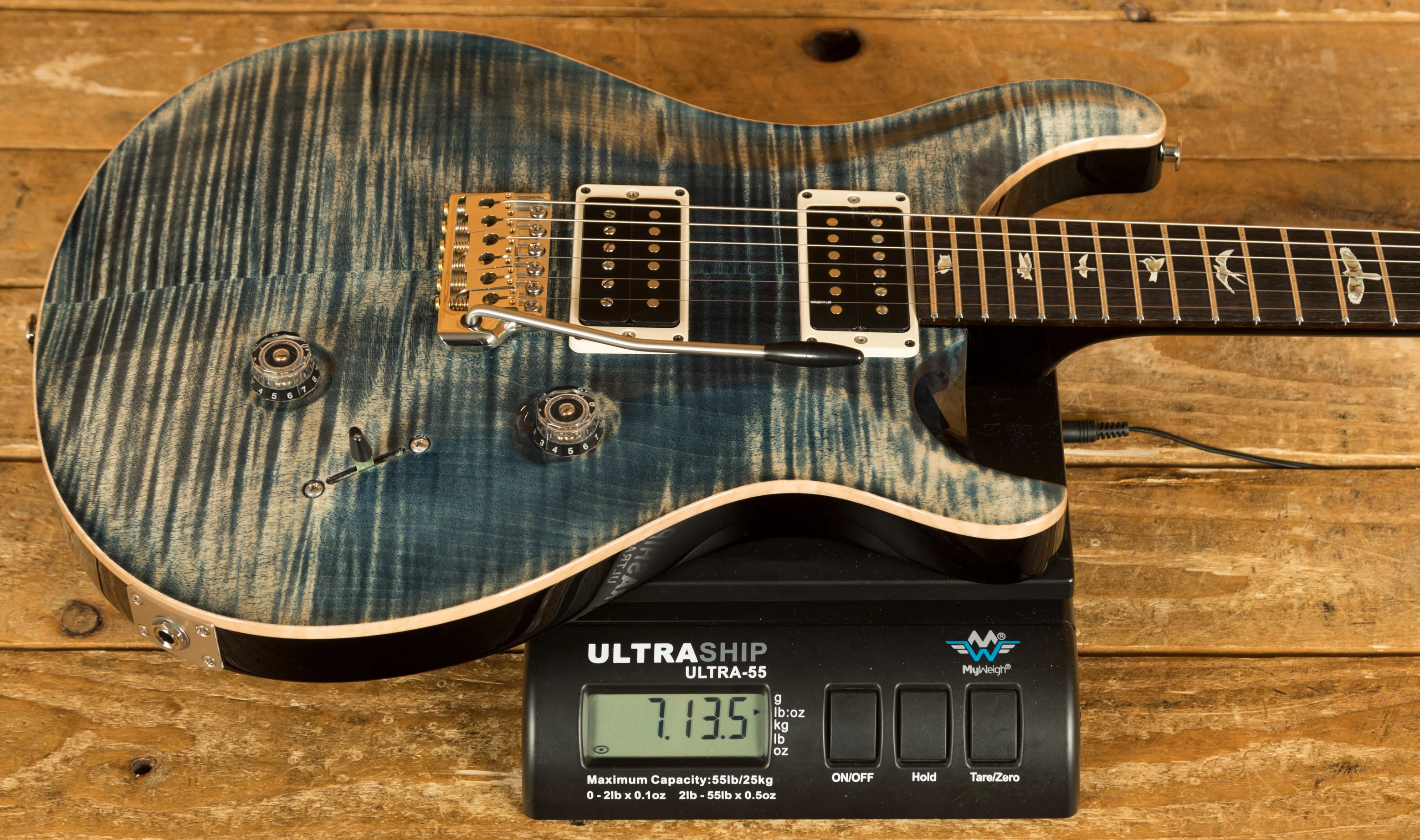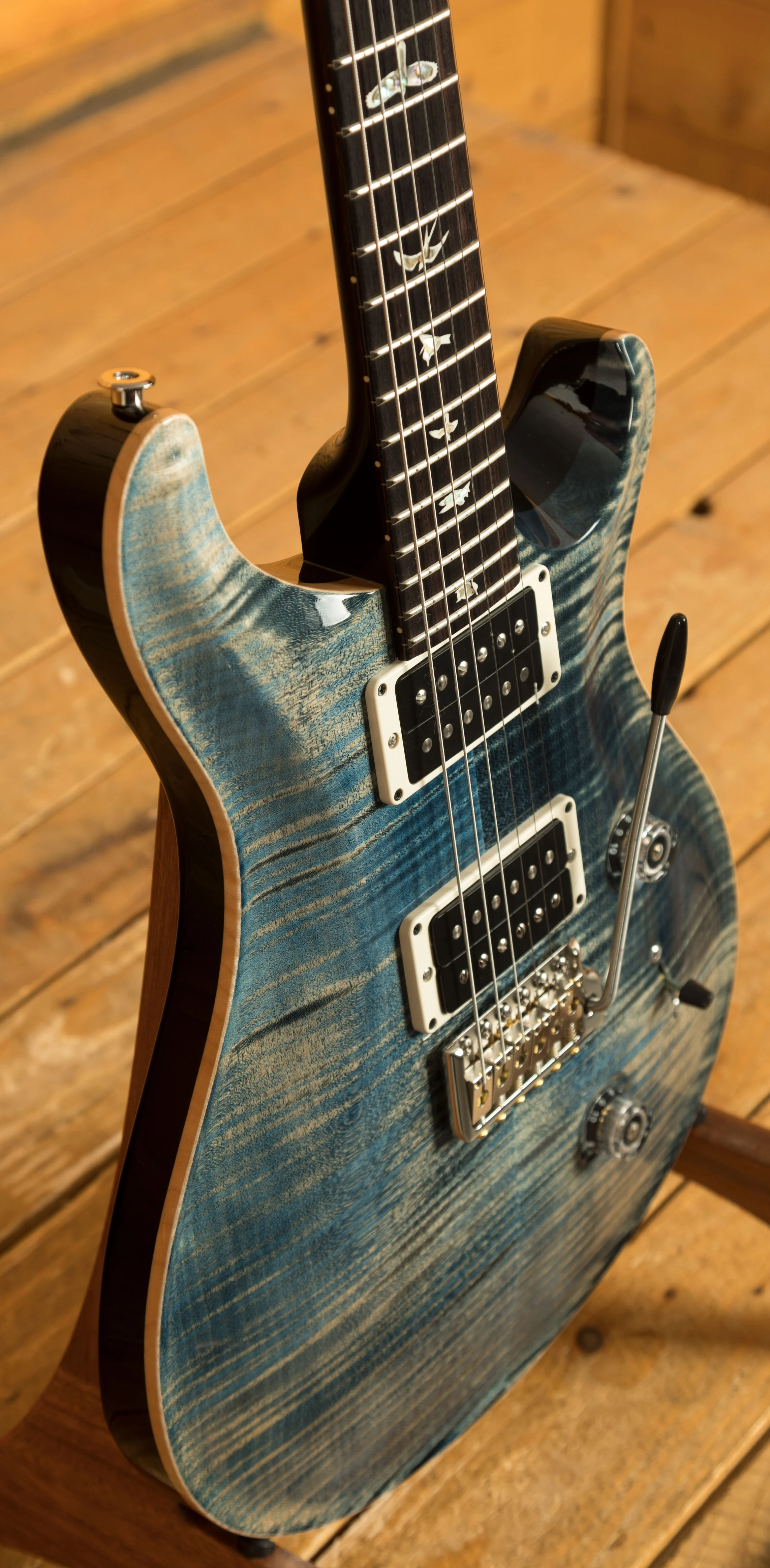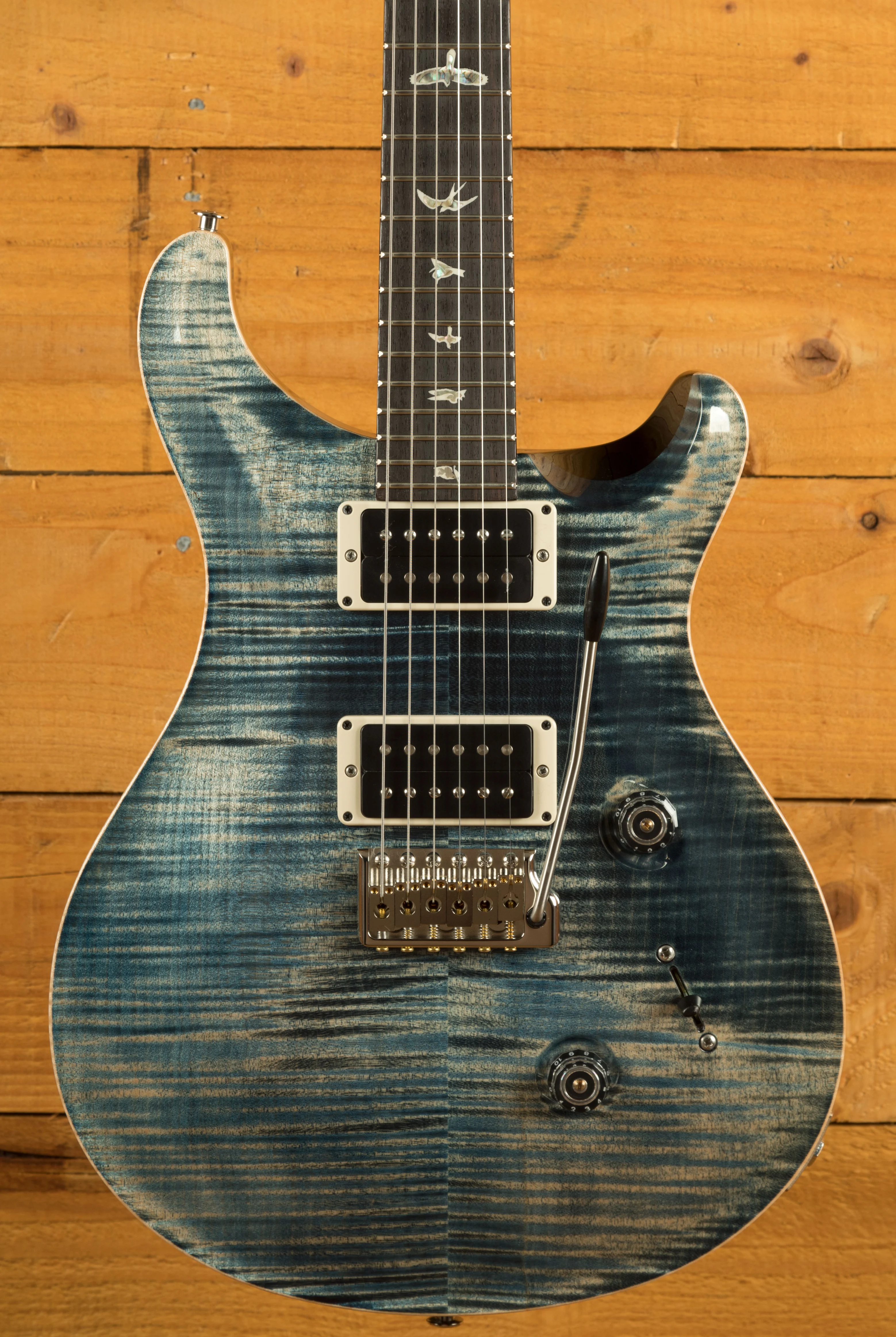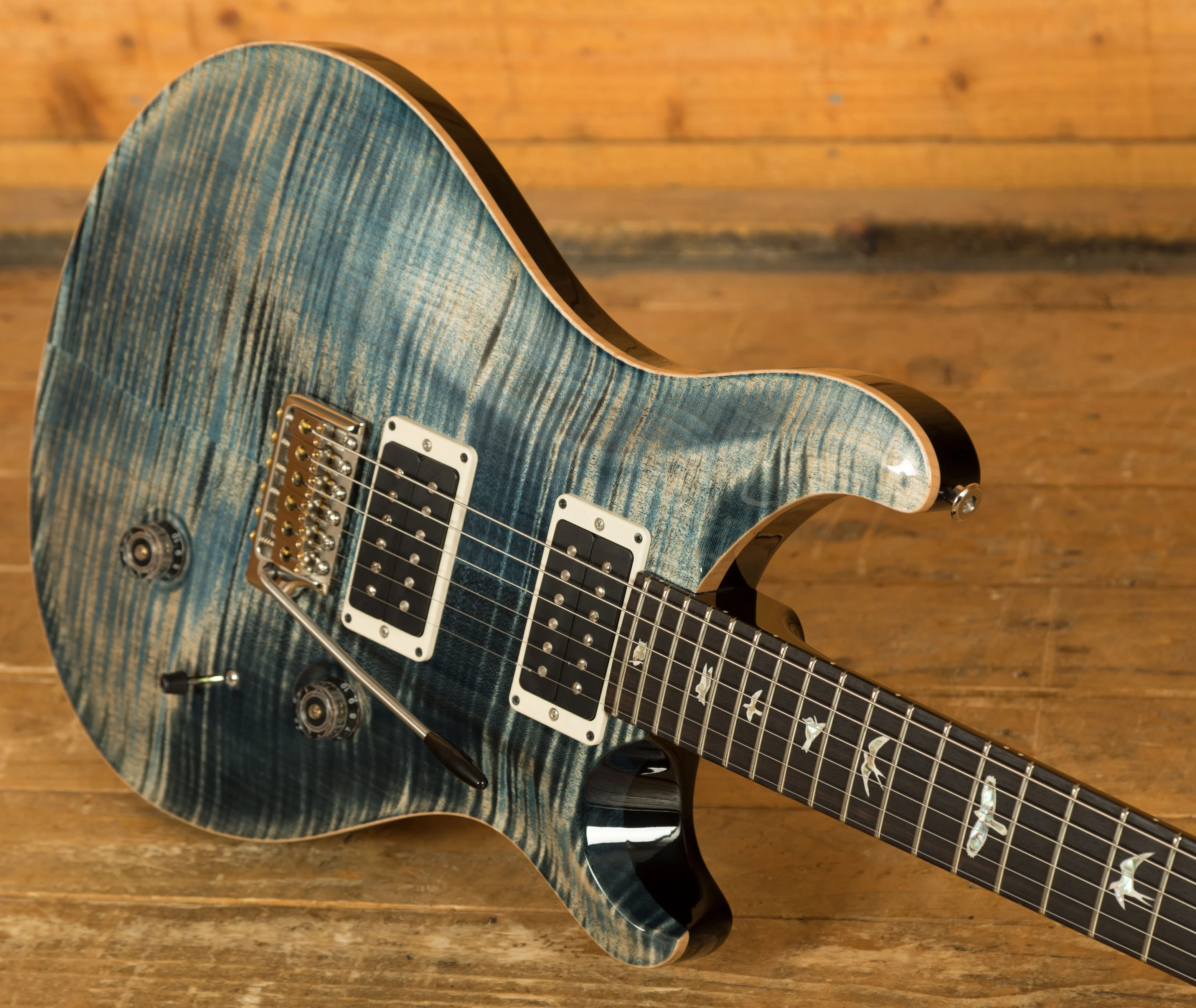 This is truly a dazzling example of what PRS can produce with their Core range of USA guitars. This rendition of their flagship model - the Custom 24 - features a figured maple top on mahogany body with nickel hardware. This model is adorned in a tranquil Faded Whale Blue that plays off of the wood grain's intricacies with a plethora of blues and greys that are reminiscent of a stormy sea.