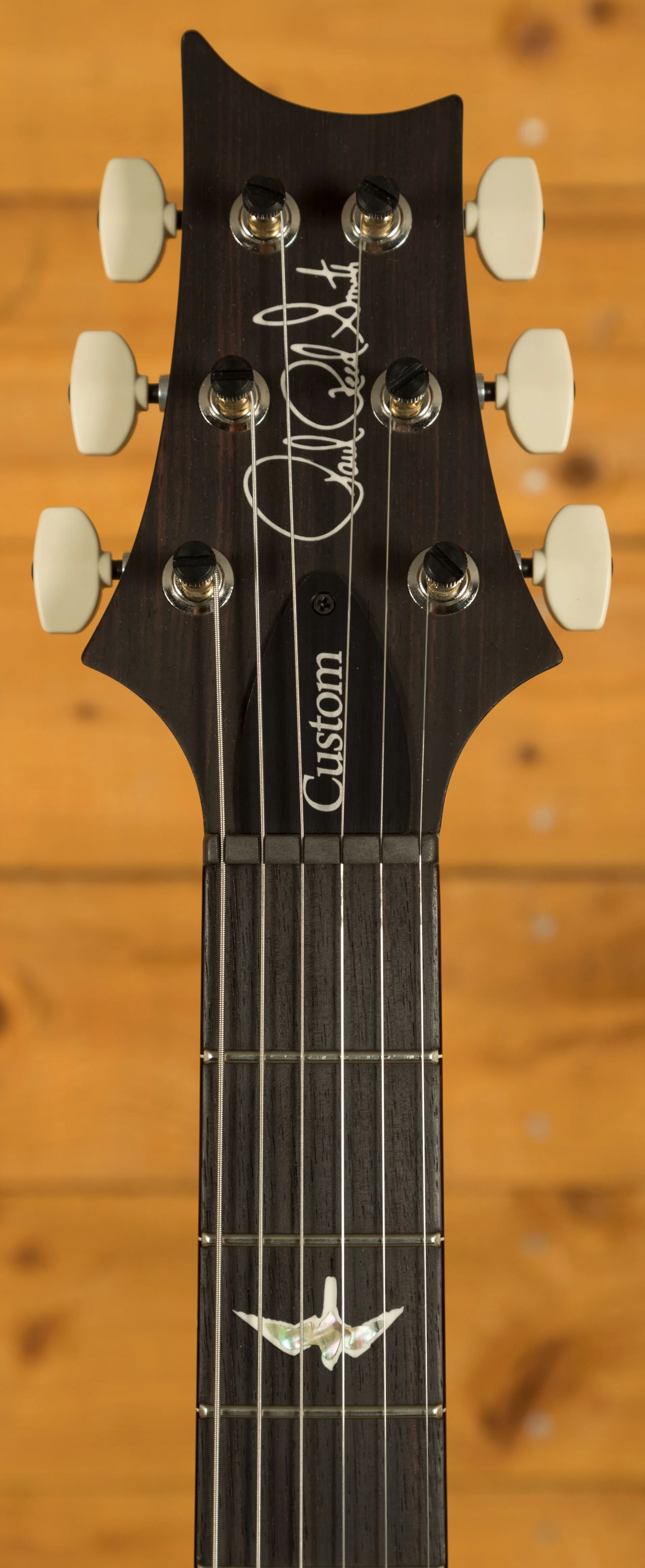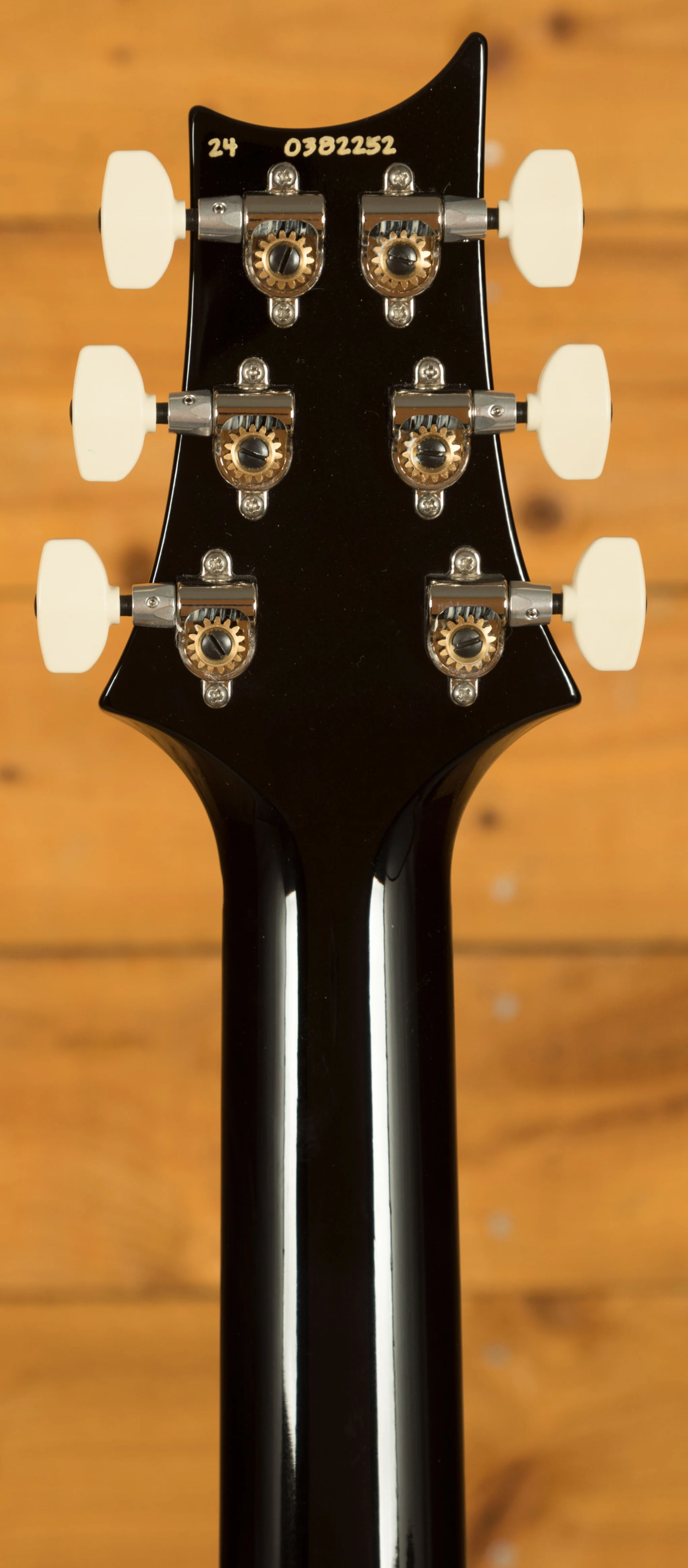 The 25" scale-length, 10" radius, 24-fret Rosewood fingerboard stoically rises up the set, one-piece, Mahogany neck as it makes a home for the iconic PRS Bird inlays that hold such a status. Reaching the headstock, one can fine the beautiful grain of the top piece that houses the inlay of the PRS founder's name. The PRS Phase III Locking Tuners prominently line up on either side - ever diligent in their duty to keep sturdy and accurate tuning.