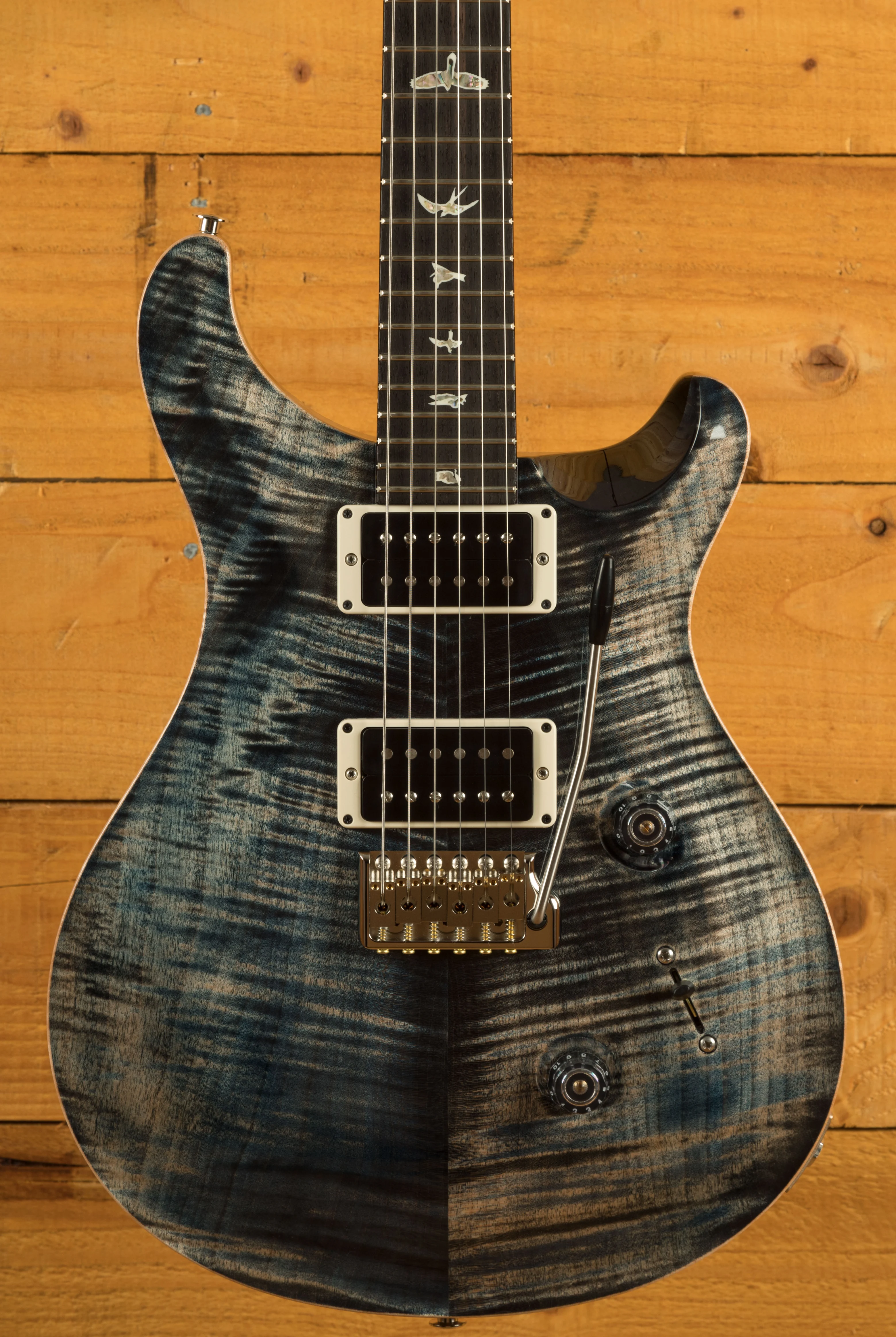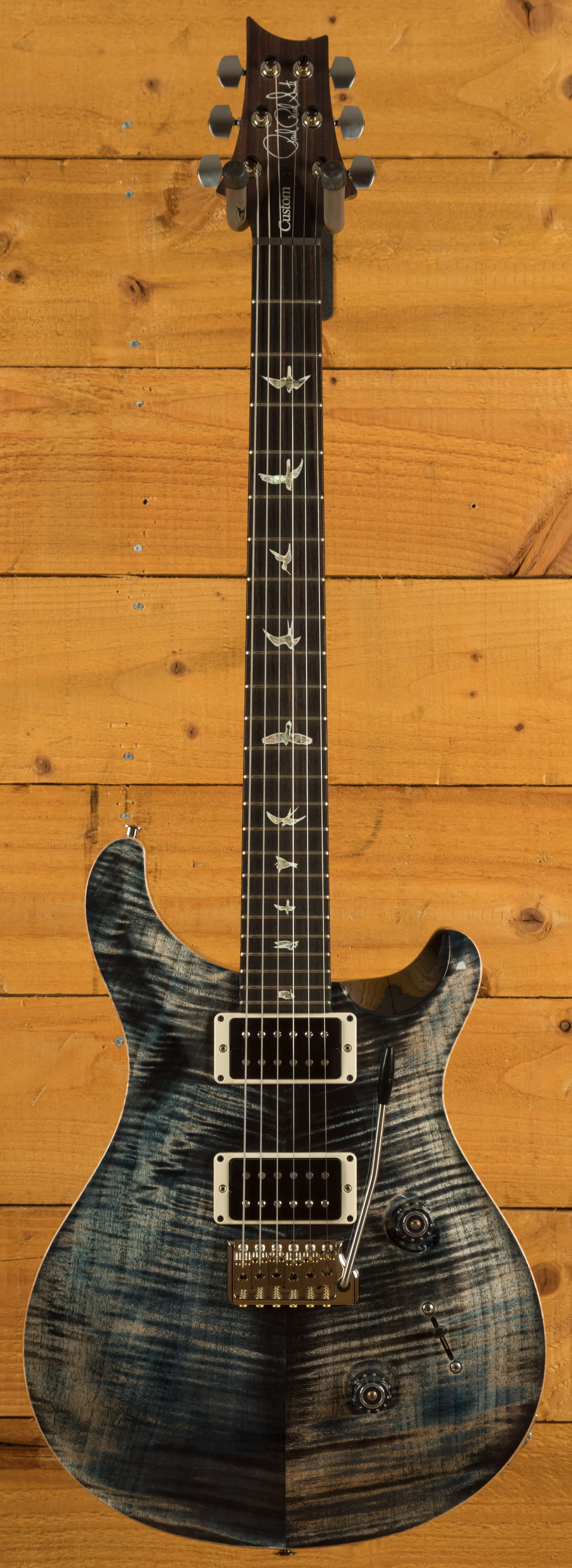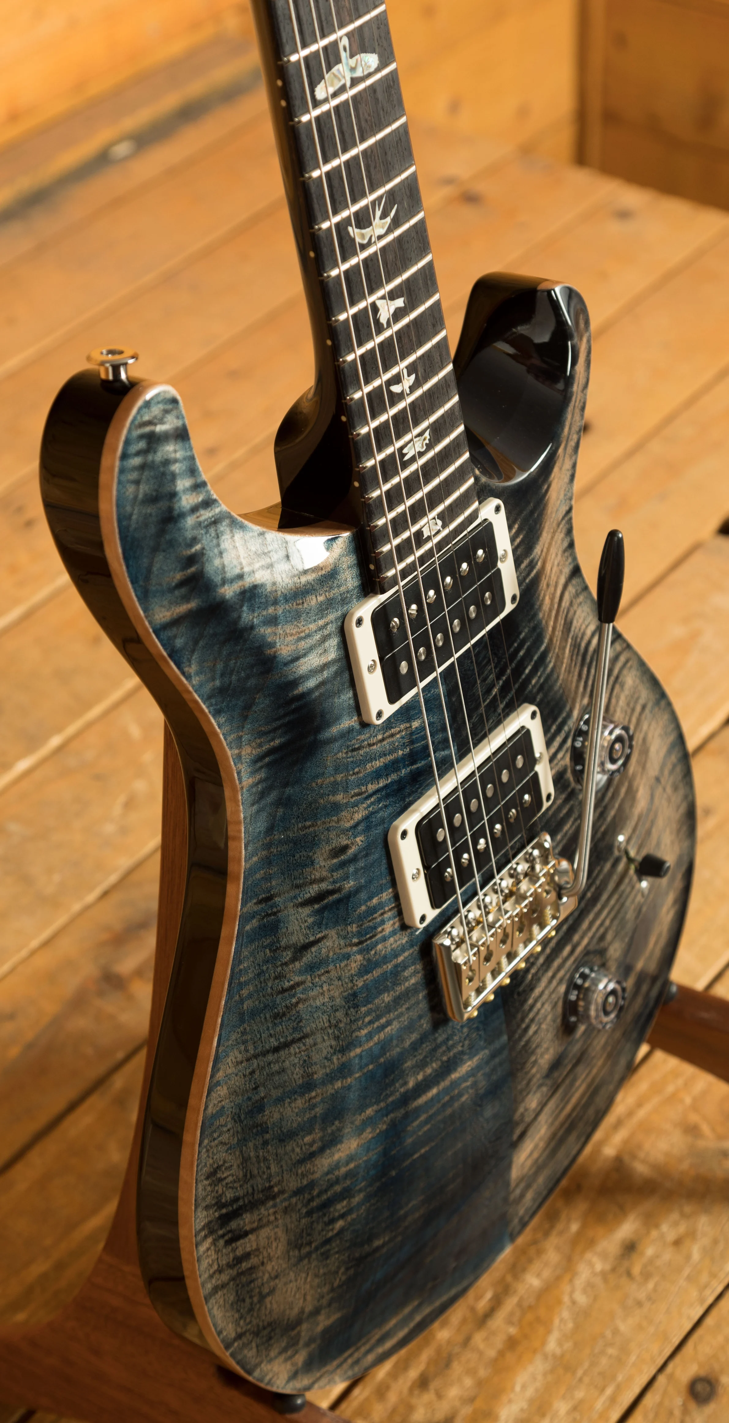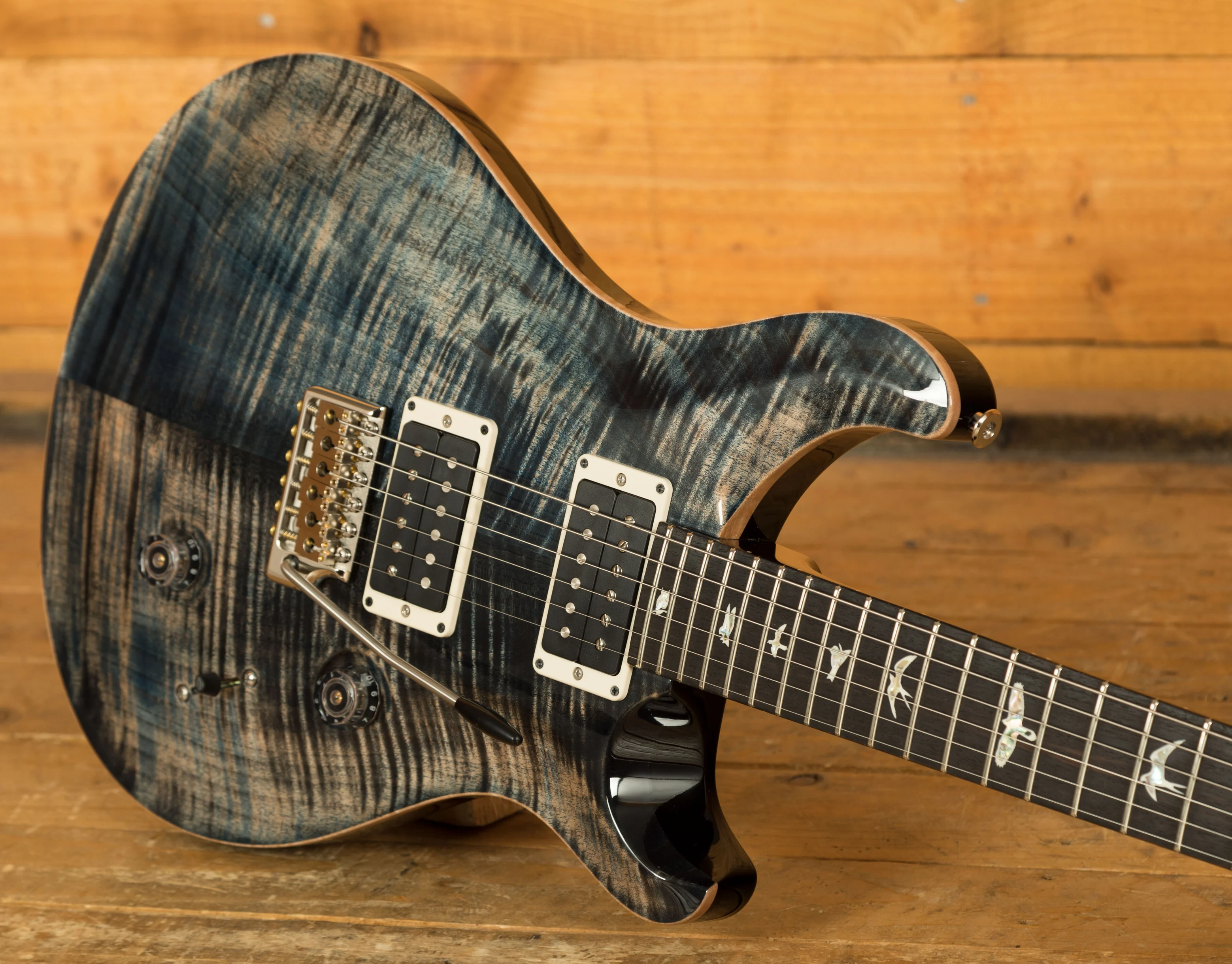 This is truly a dazzling example of what PRS can produce with their Core range of USA guitars. This rendition of their flagship model - the Custom 24 - features a figured maple top on mahogany body with nickel hardware. This model is adorned in a tranquil Faded Whale Blue that plays off of the wood grain's intricacies with a plethora of blues and greys that are reminiscent of a stormy sea.