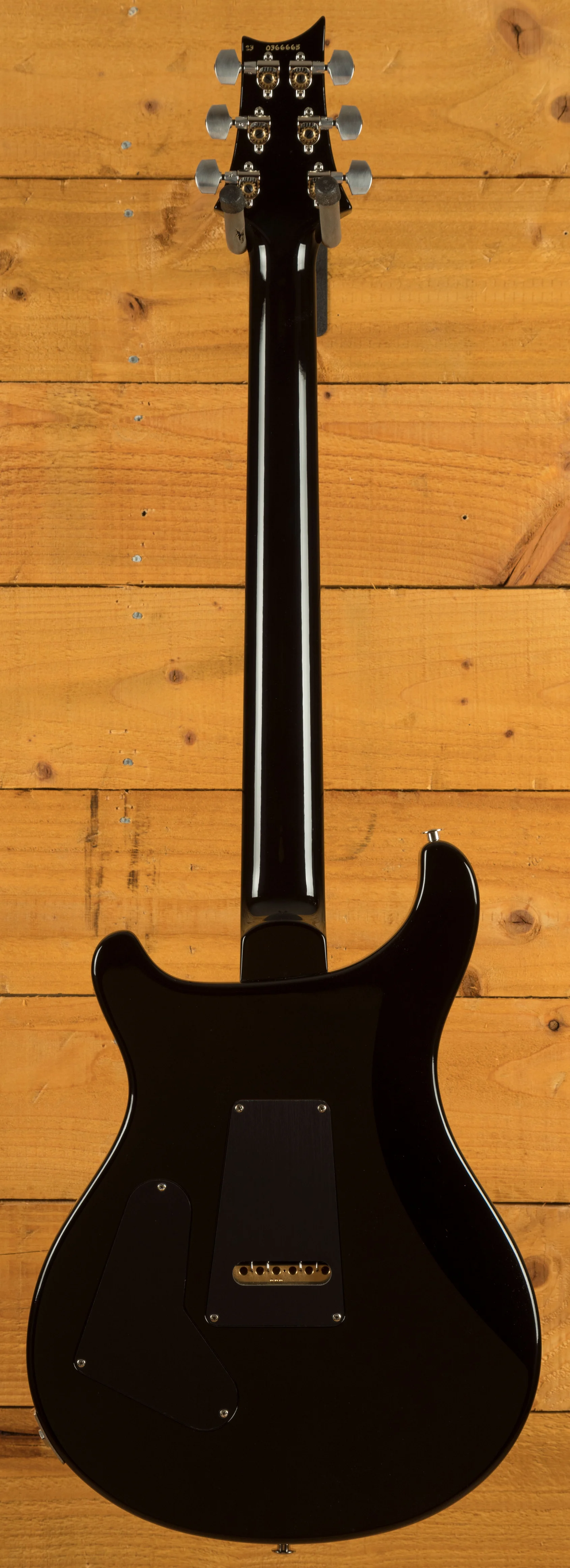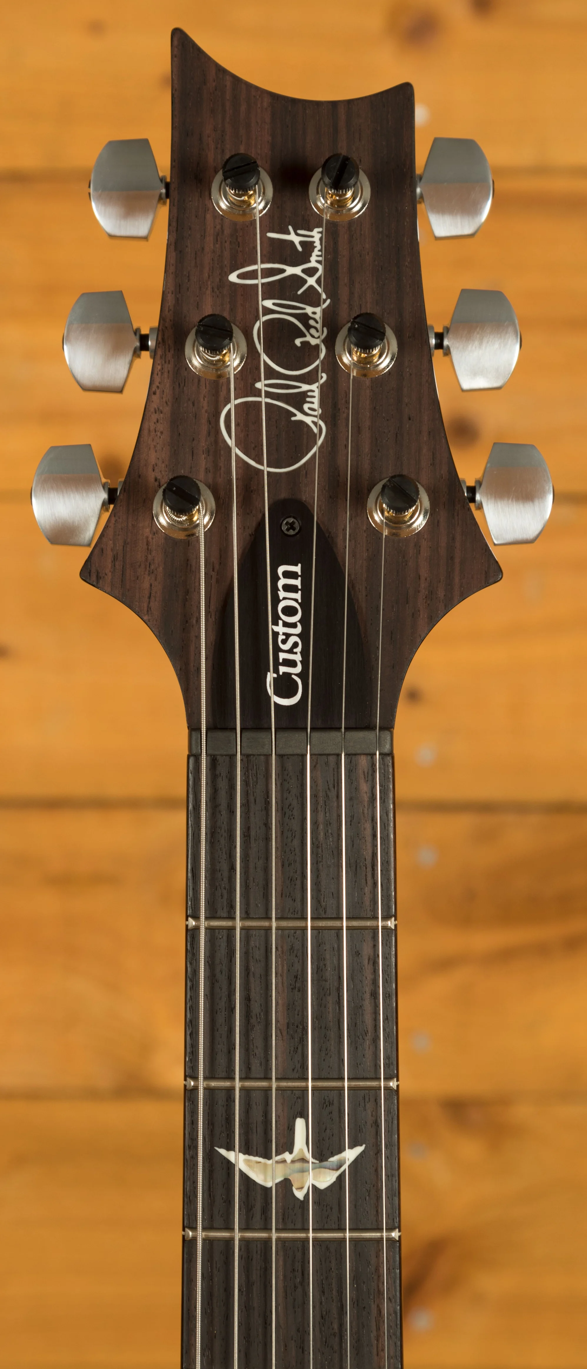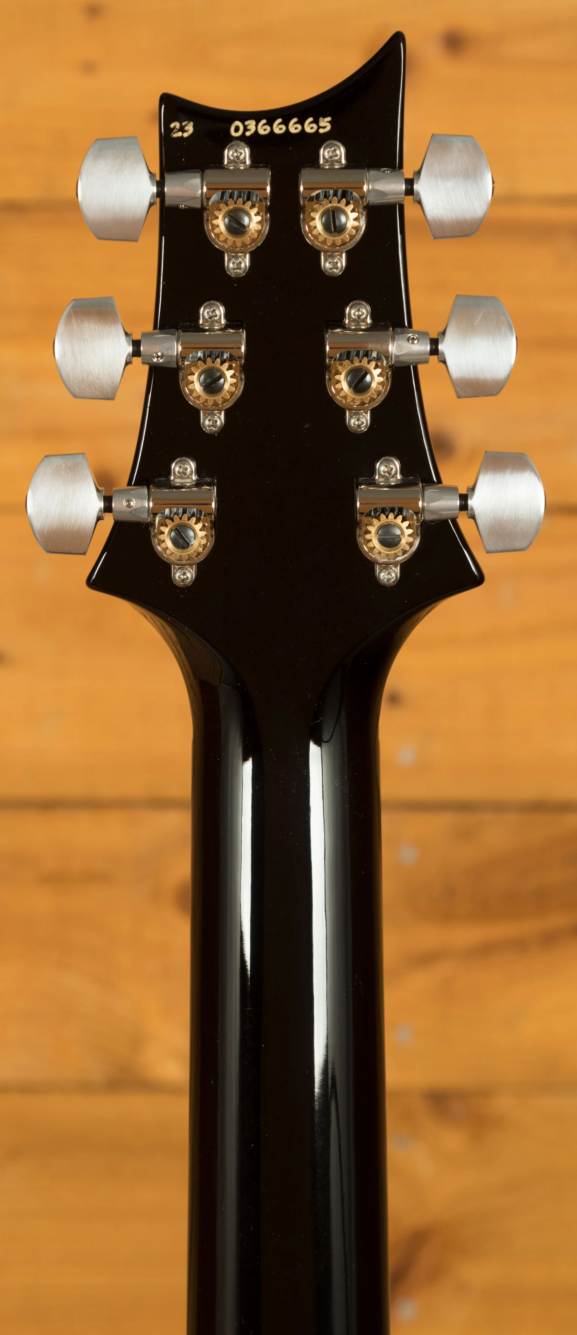 The 25" scale-length, 10" radius, 24-fret Rosewood fingerboard stoically rises up the set, one-piece, Mahogany neck as it makes a home for the iconic PRS Bird inlays that hold such a status. Reaching the headstock, one can fine the beautiful grain of the top piece that houses the inlay of the PRS founder's name. The PRS Phase III Locking Tuners prominently line up on either side - ever diligent in their duty to keep sturdy and accurate tuning.