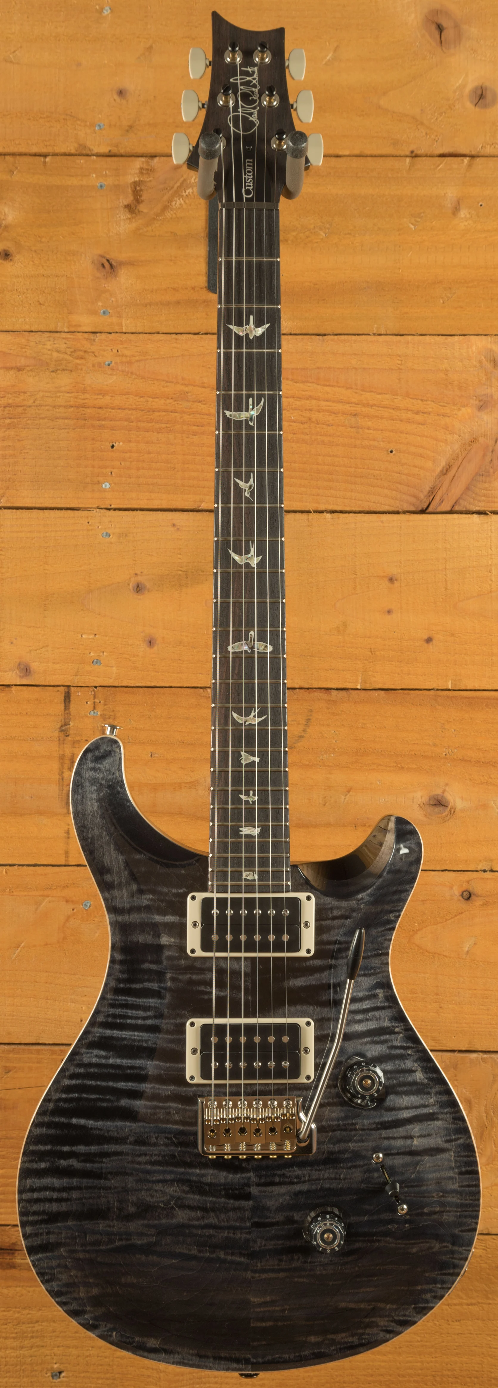 This PRS Custom 24 in Grey Black Pattern Thin features a carved maple top, a mahogany back, and a mahogany neck with a Pattern Thin profile, paired with a rosewood fingerboard. It offers a 25" scale length and 24 frets, equipped with 85/15 pickups and a 5-way blade switch for tonal control, and comes with its case. As the original and best-selling model from PRS since its debut in 1985, the Custom 24 remains a cornerstone of the brand, often overlooked amid the excitement over newer models like the DGT, special semi-hollow, and 24-08, yet it continues to deliver exceptional tone and playability.