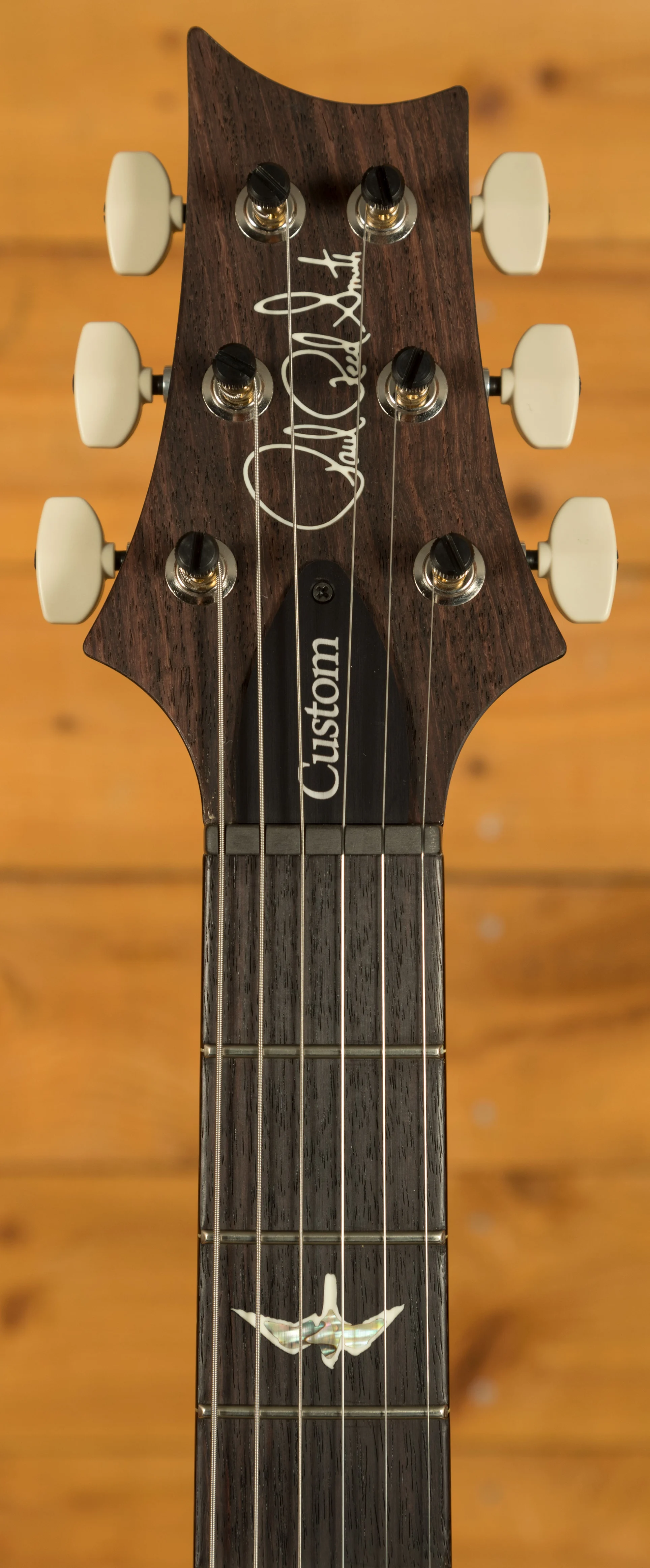 The Custom 24 Piezo boasts a meticulously crafted mahogany body with a stunning maple top, carved in PRS's signature violin carve. The 25-inch scale mahogany neck, shaped in the comfortable Pattern Thin profile, provides effortless playability across the rosewood fretboard. The iconic PRS bird inlays add a touch of elegance, while the new Wing buttons on the Phase III locking tuners not only echo the 12th fret bird wingspan design but also contribute to enhanced resonance and sustain due to their lighter weight. These tuners, combined with the PRS patented Gen III tremolo, ensure rock-solid tuning stability even during the most demanding performances.