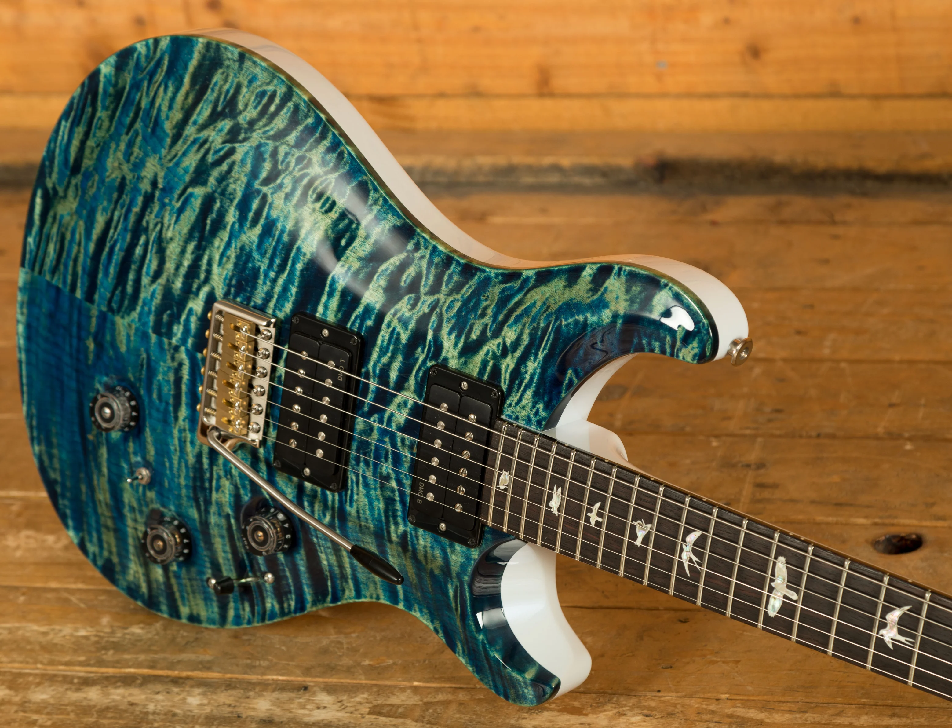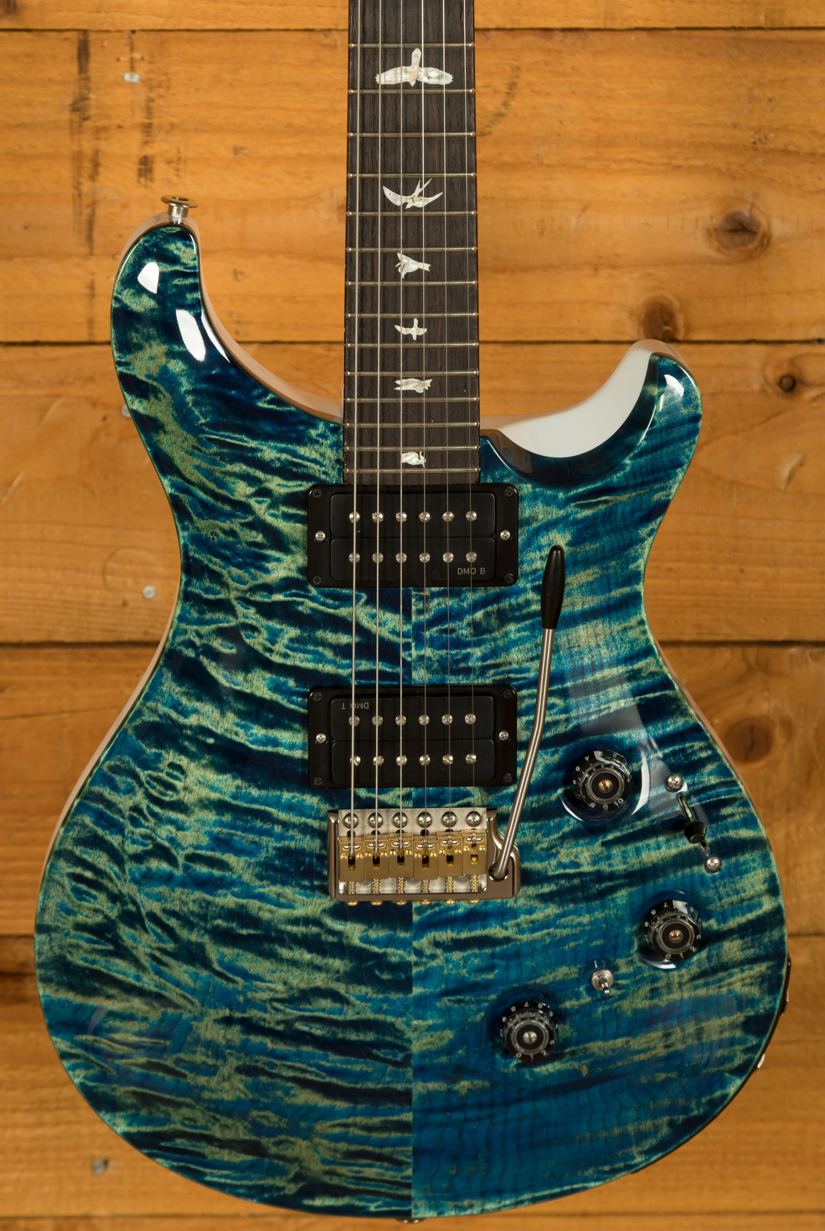 The uncovered DMO pickups offer remarkable dynamics, musicality, and openness, as they are named after. These pickups, combined with the versatile control layout (volume, tone, 5-way blade switch, and dedicated piezo controls), provide access to a nearly infinite range of tonal possibilities.