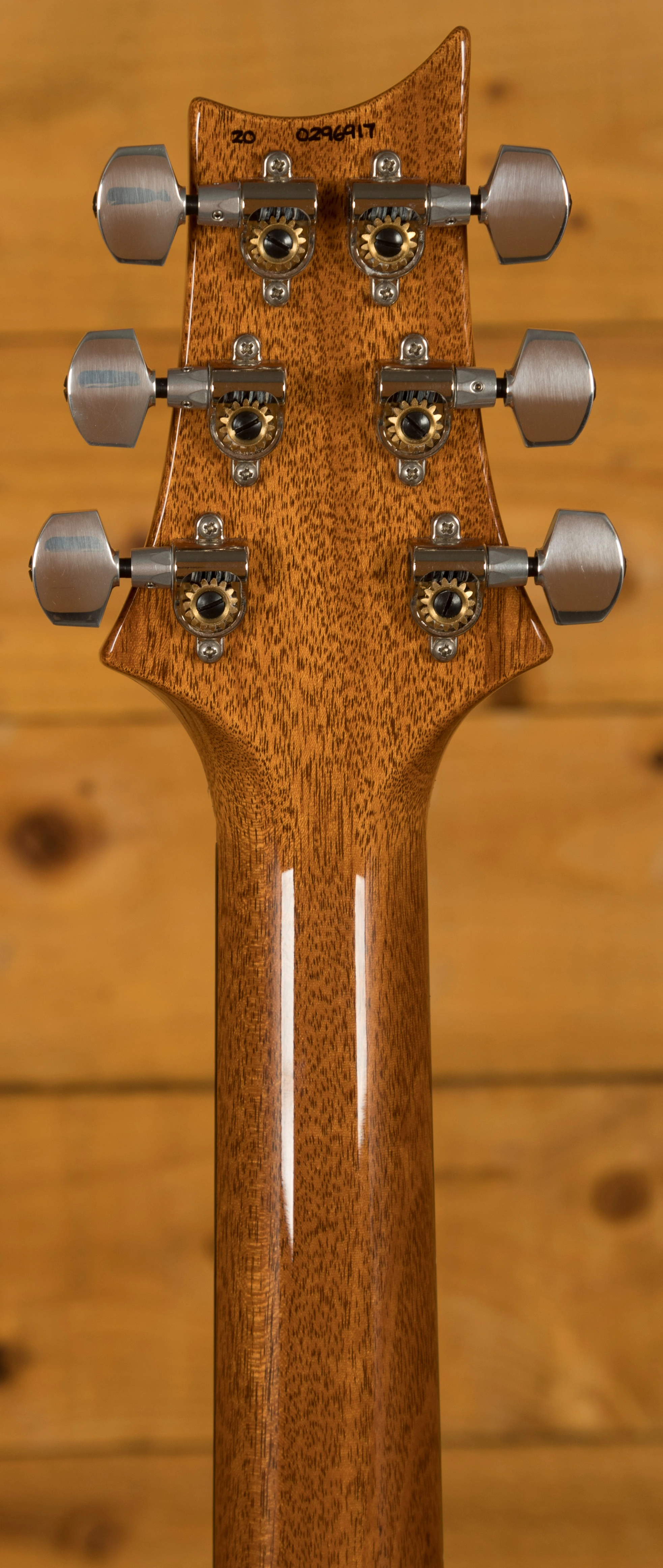 A comfortable 24 fret Rosewood fingerboard proudly bears the signature PRS birds and its 25" scale length Mahogany neck and pattern regular profile offers a comfortable and stable performance. With the PRS patented Gen III tremolo and Phase III locking tuners, you get flawless tuning stability and great intonation, the trem is super responsive and allows you to add some lush texture to your sound.