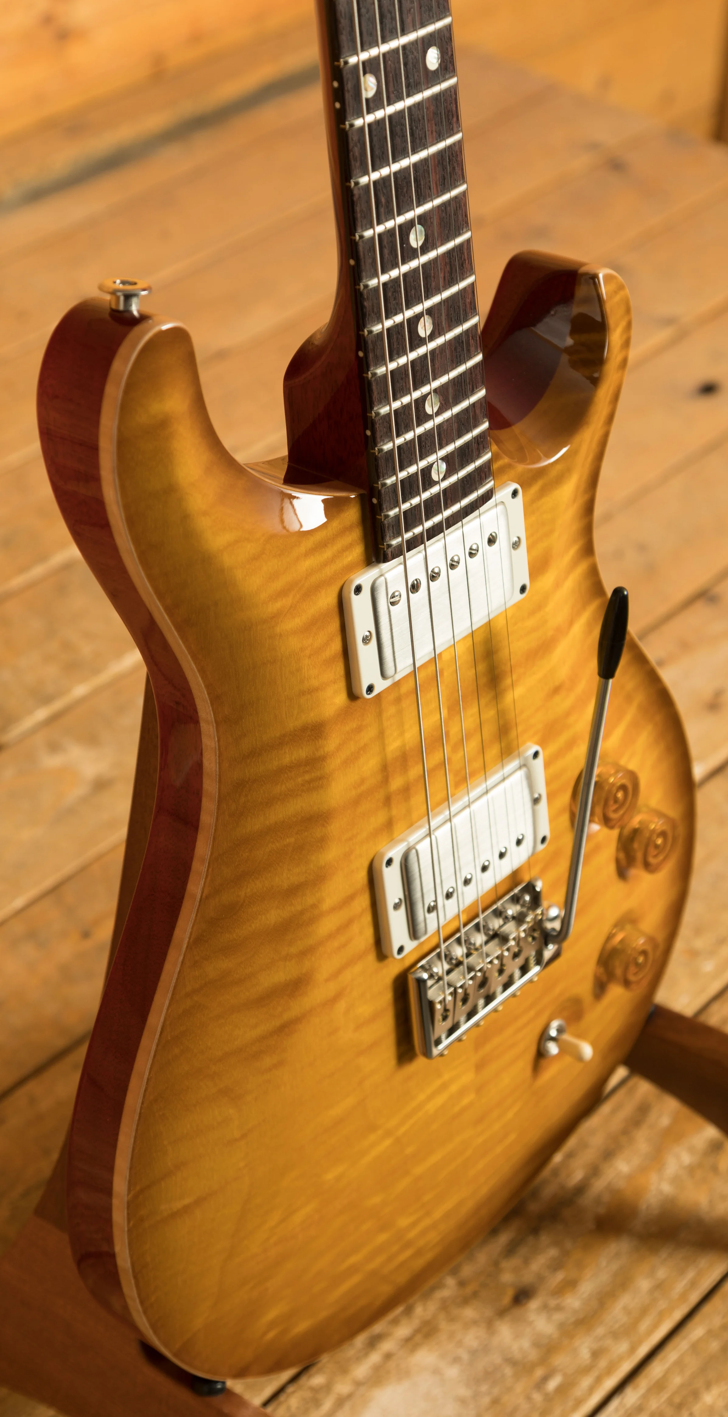 With a stunning carved figured maple top and mahogany back, it looks every bit as good as it sounds. Finished in a stunning McCarty Sunburst, the DGT is a real tone machine! A 22 fret, 10" radius Rosewood fingerboard proudly bears the classic moon inlays and with its 25" scale length Mahogany neck it feels supremely comfortable.
