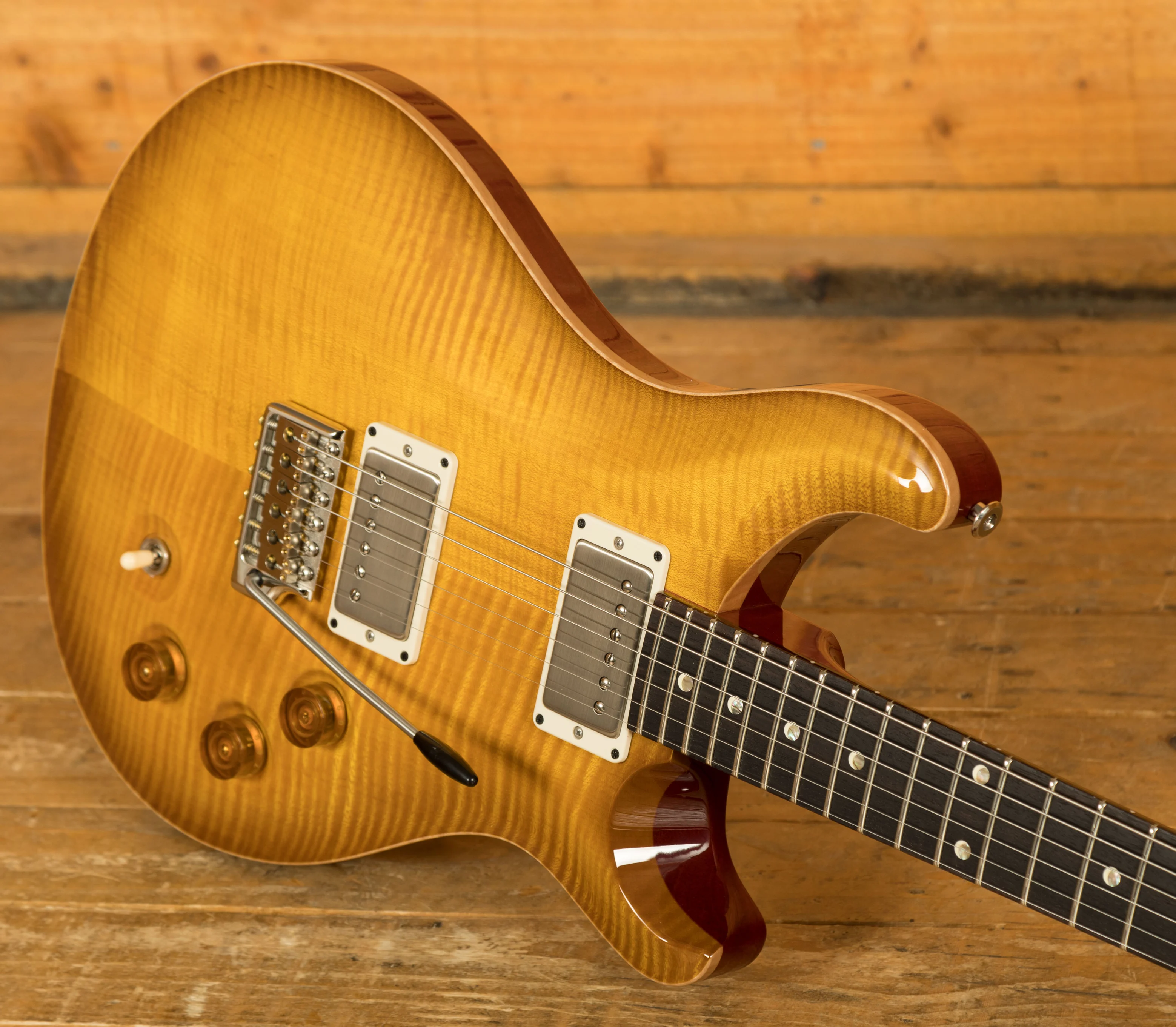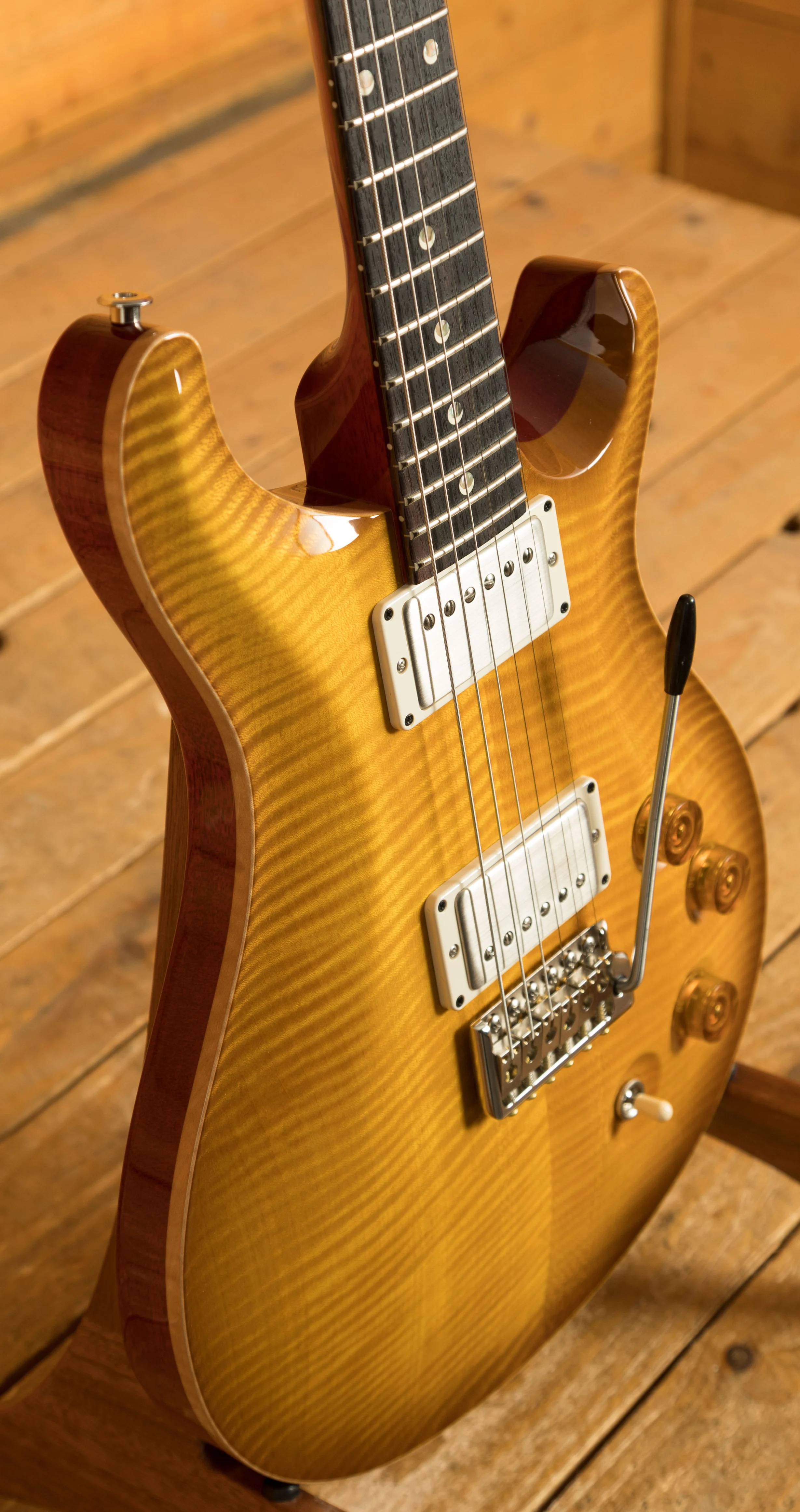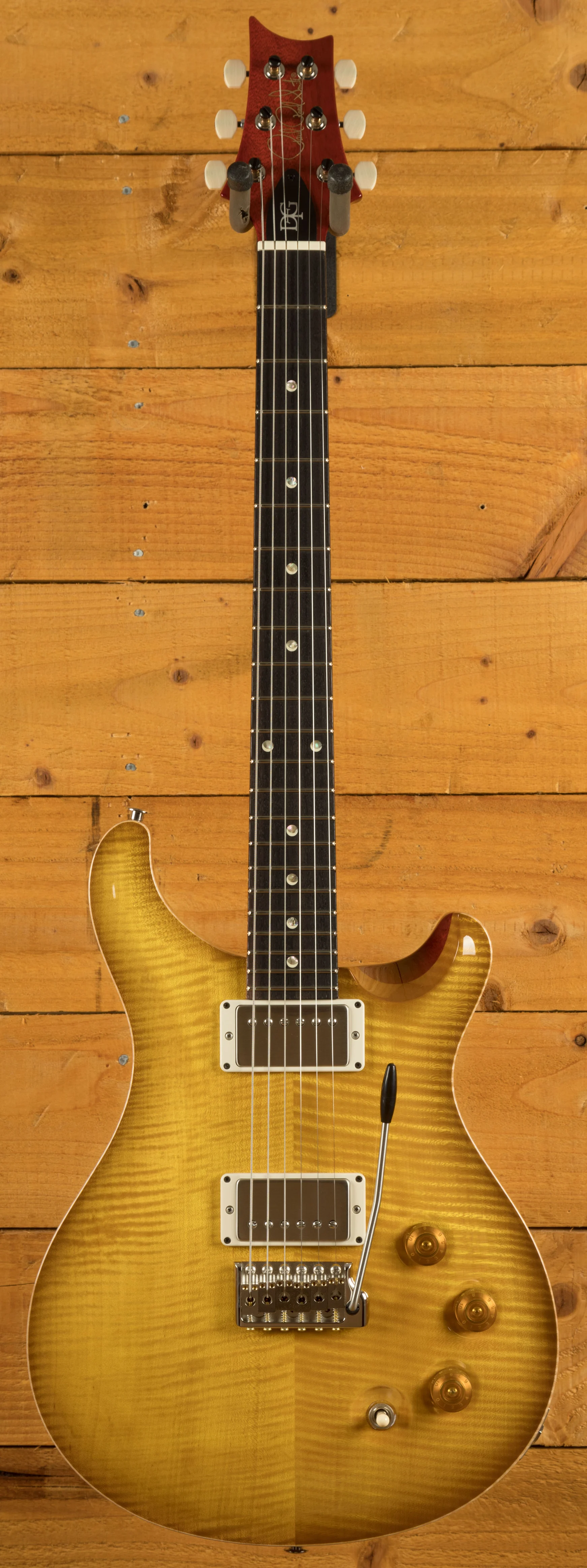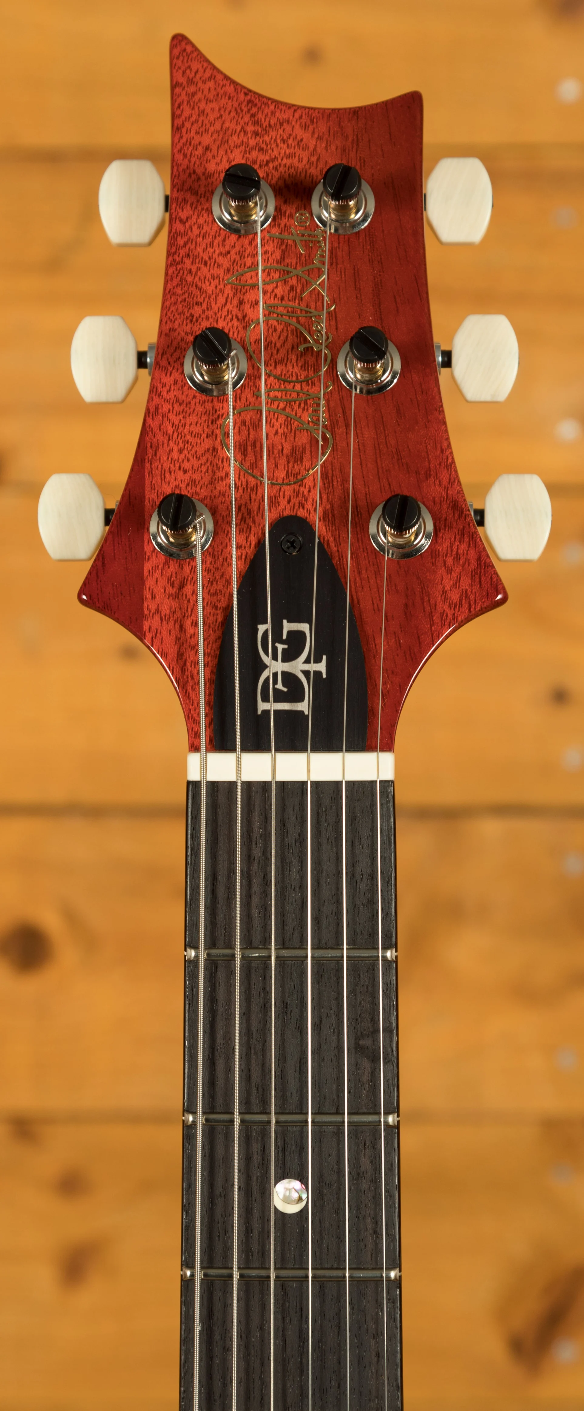 With a stunning carved figured maple top and mahogany back, it looks every bit as good as it sounds. Finished in a stunning McCarty Sunburst, the DGT is a real tone machine! A 22 fret Rosewood fingerboard proudly bears the classic moon inlays and with its 25" scale length Mahogany neck it feels supremely comfortable.