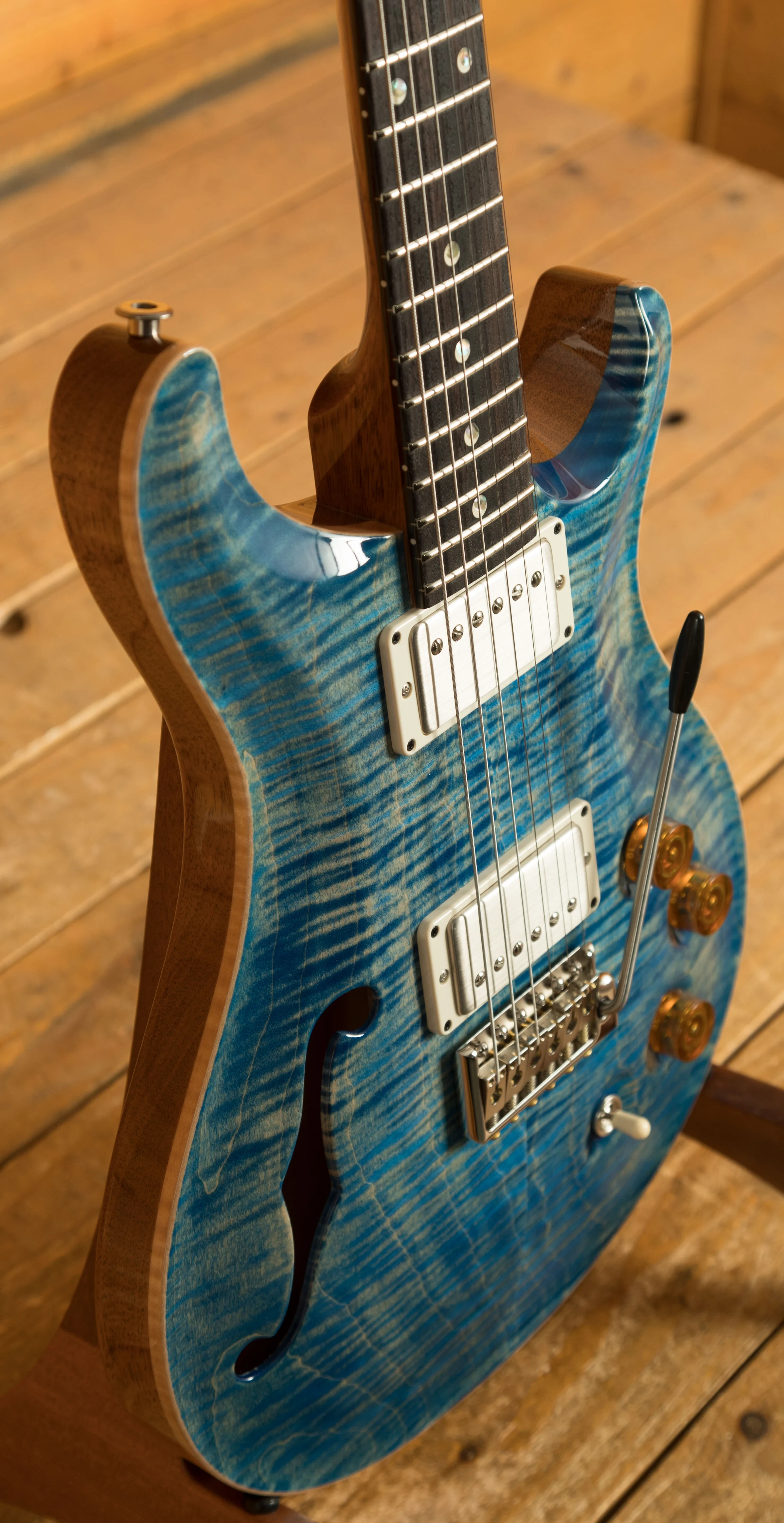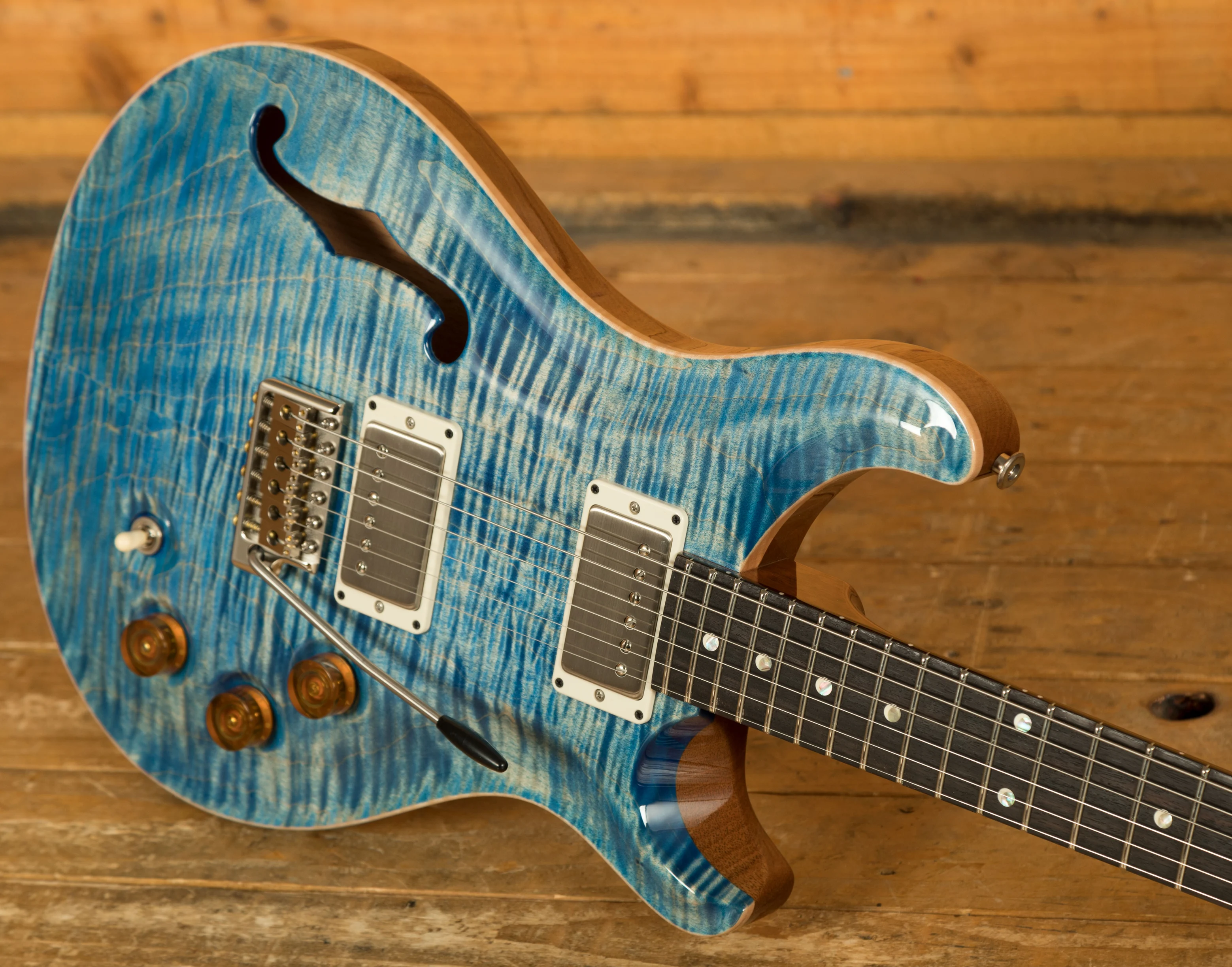 The PRS DGT Semi-Hollow is a meticulously crafted guitar designed from the collaboration between Paul Reed Smith and guitarist David Grissom. Built on the iconic McCarty platform, this semi-hollow guitar brings together classic design elements, such as the Faded Blue Jean finish and moon inlays, with the unique features of Grissom's personal guitar, making it highly sought after by players and collectors alike.