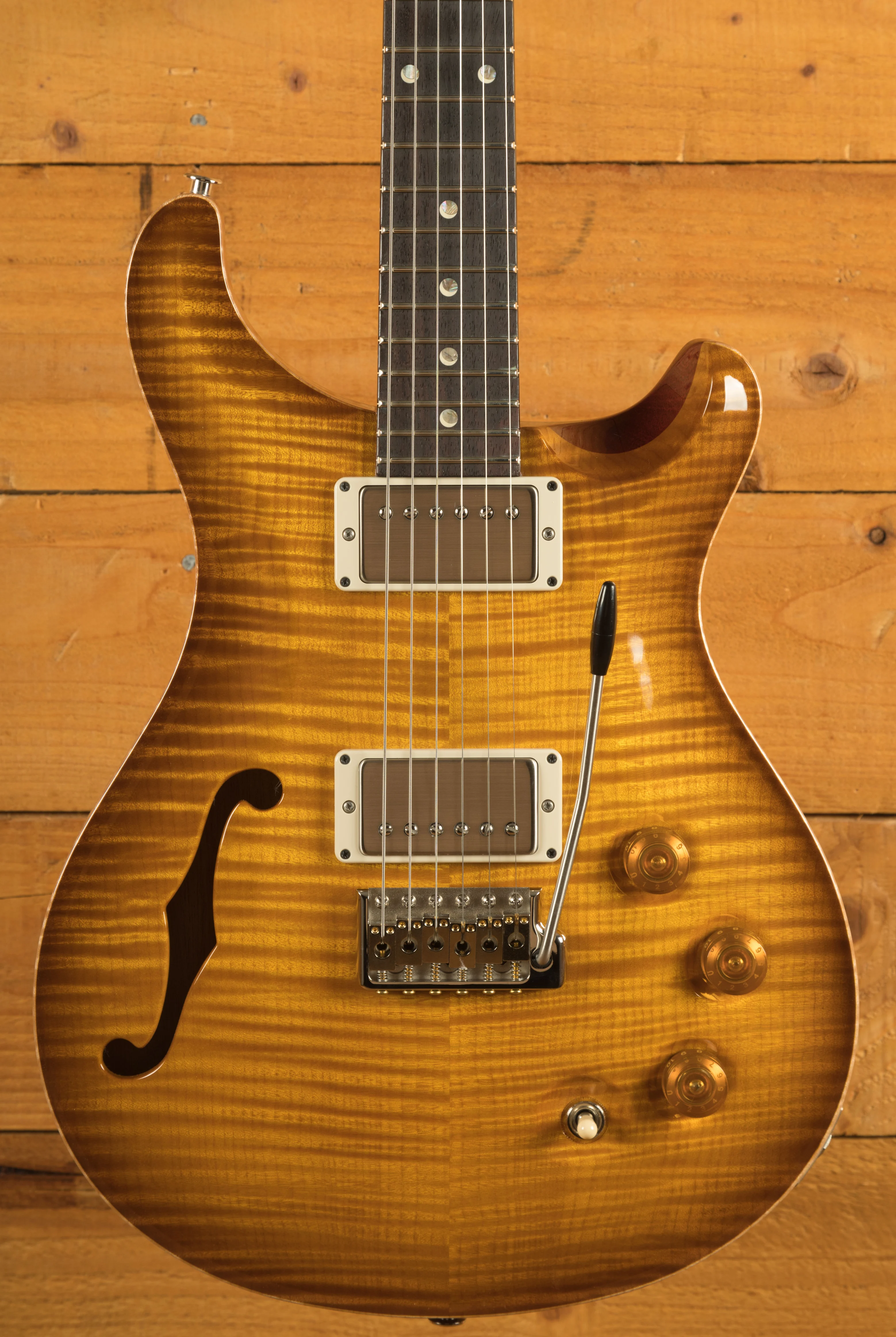Equipped with PRS DGT pickups, this guitar excels in both rhythm and lead settings, providing a "Texas" voice with a distinct punch and clarity. The pickups can be coil-split to produce single-coil tones, offering even greater versatility for players who want a broader range of sounds. Additionally, the PRS Gen II Patented Tremolo enhances the guitar's sonic performance, providing smooth action and tuning stability, making it perfect for expressive playing.