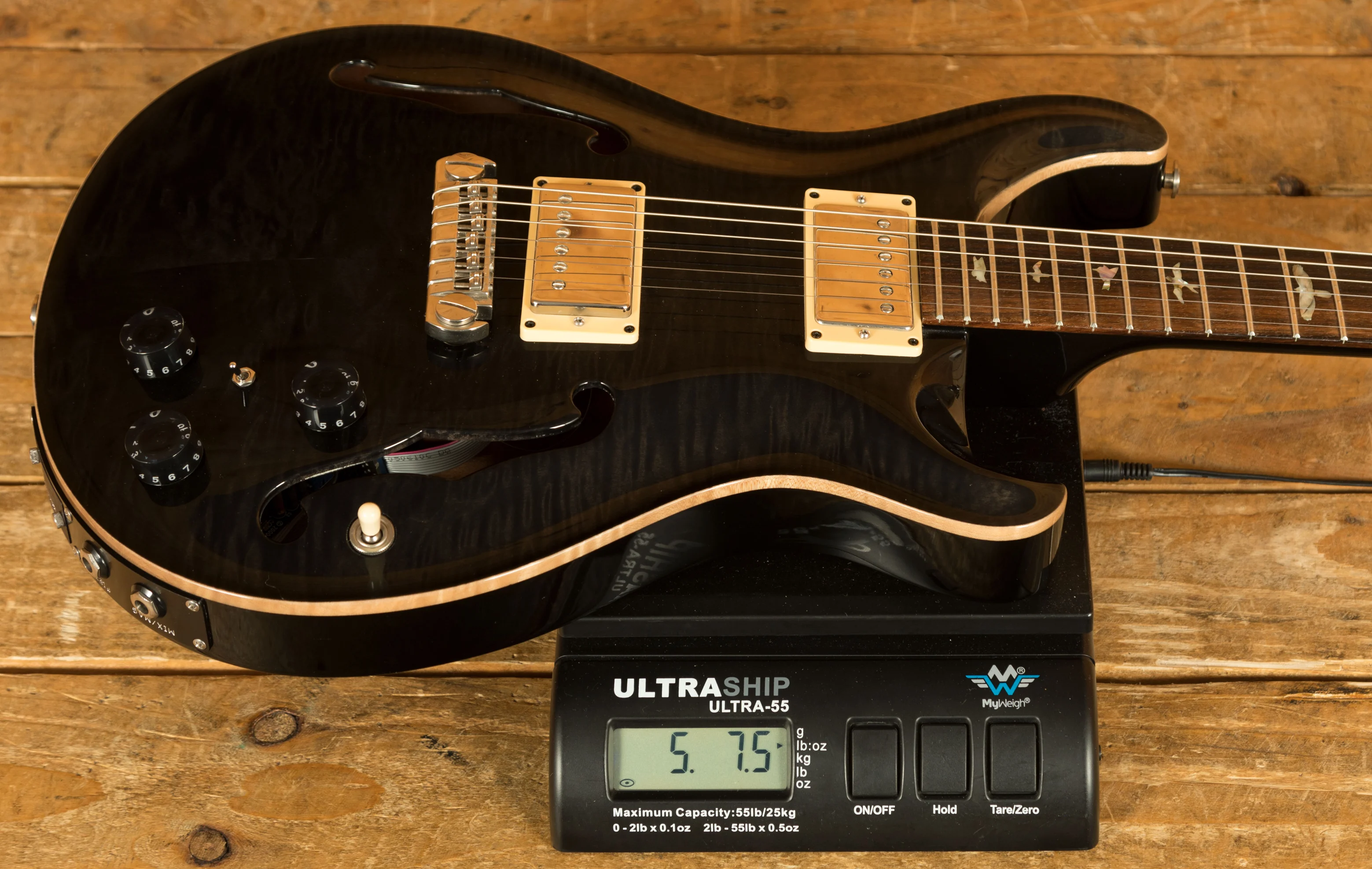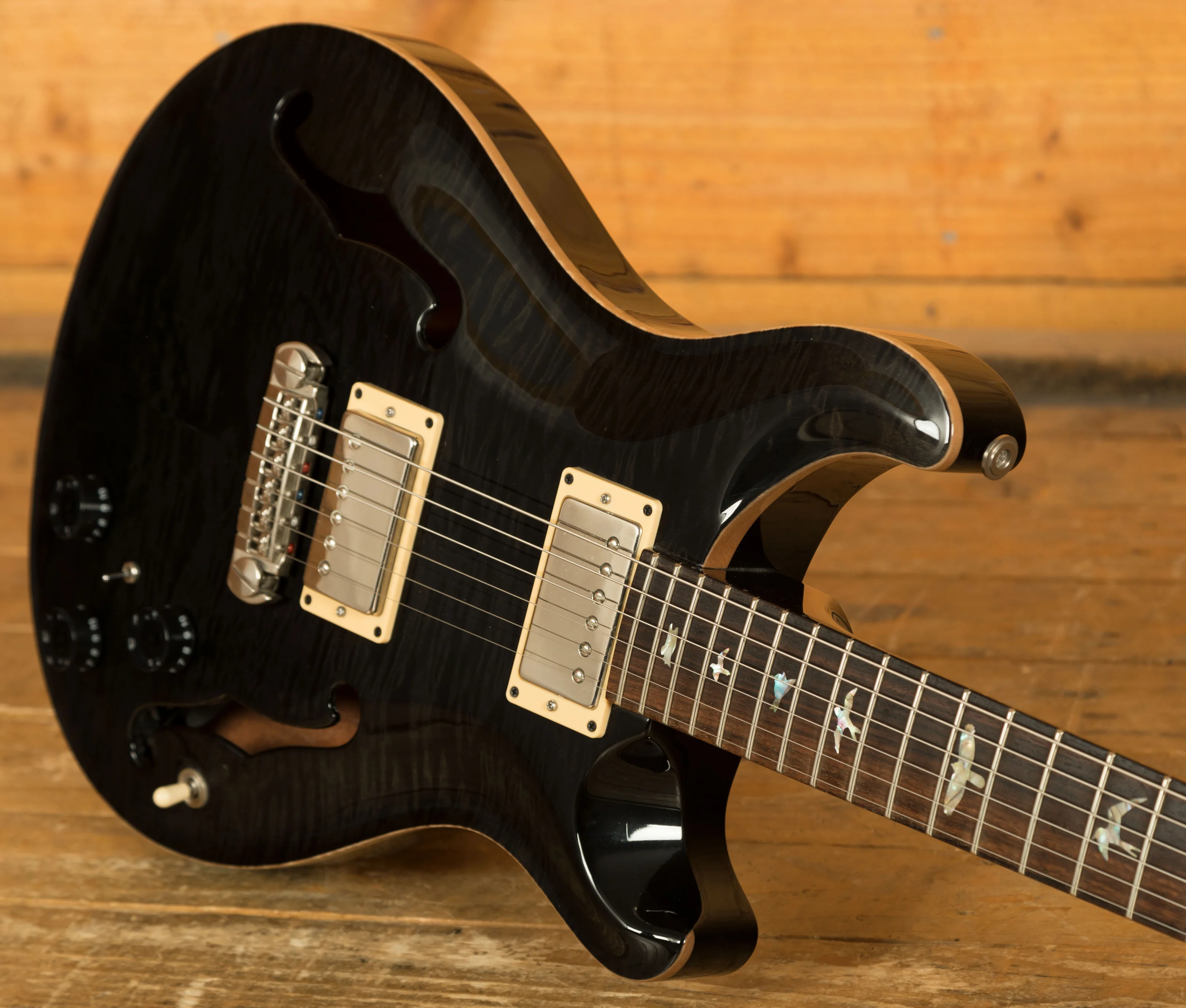 Pickups & Hardware: Two PRS Archtop humbuckers with a 3-way toggle, master volume, tone control, and LR Baggs/PRS Piezo system with blend knob, complemented by a PRS adjustable stoptail bridge and Phase II locking tuners in nickel finish.