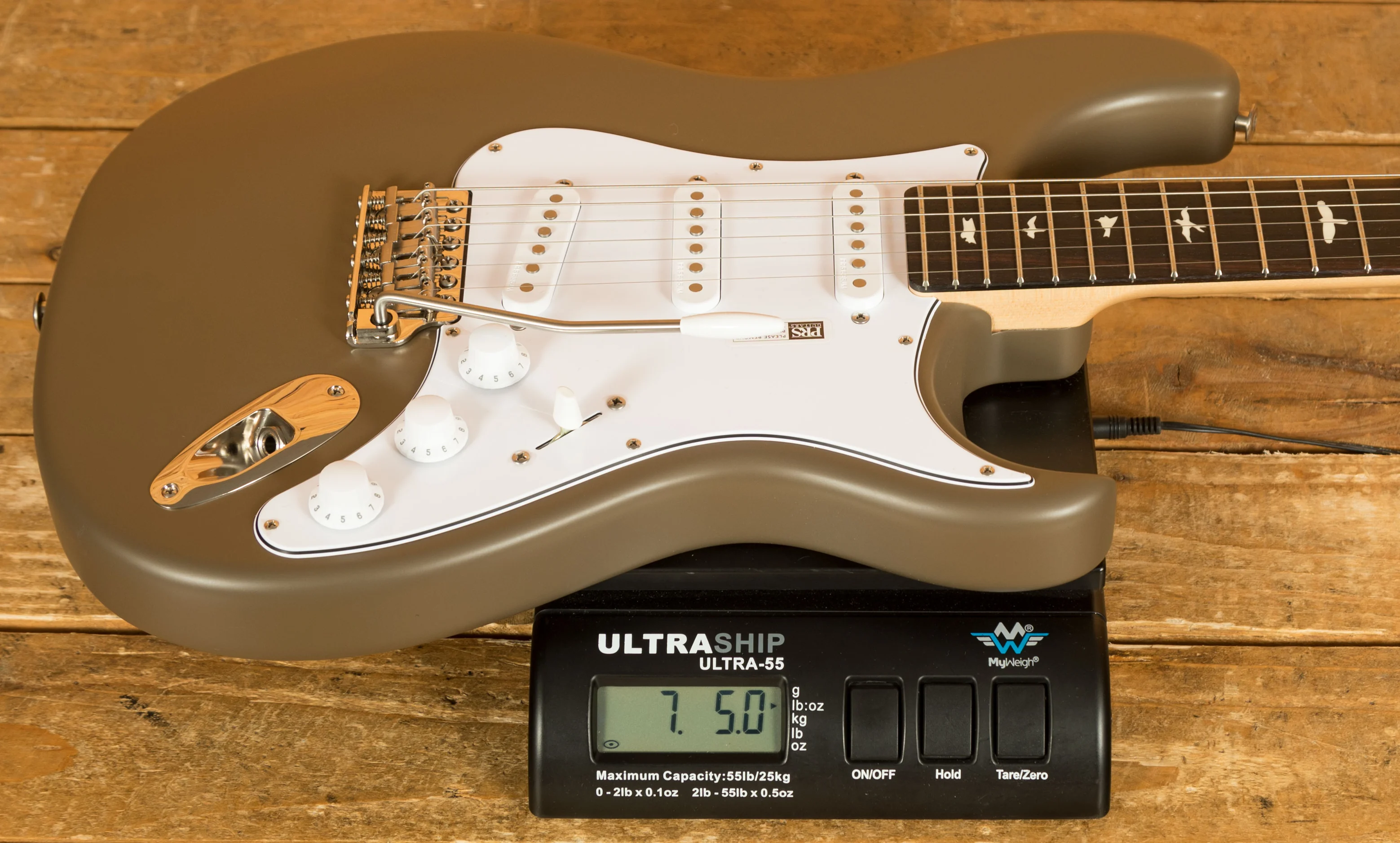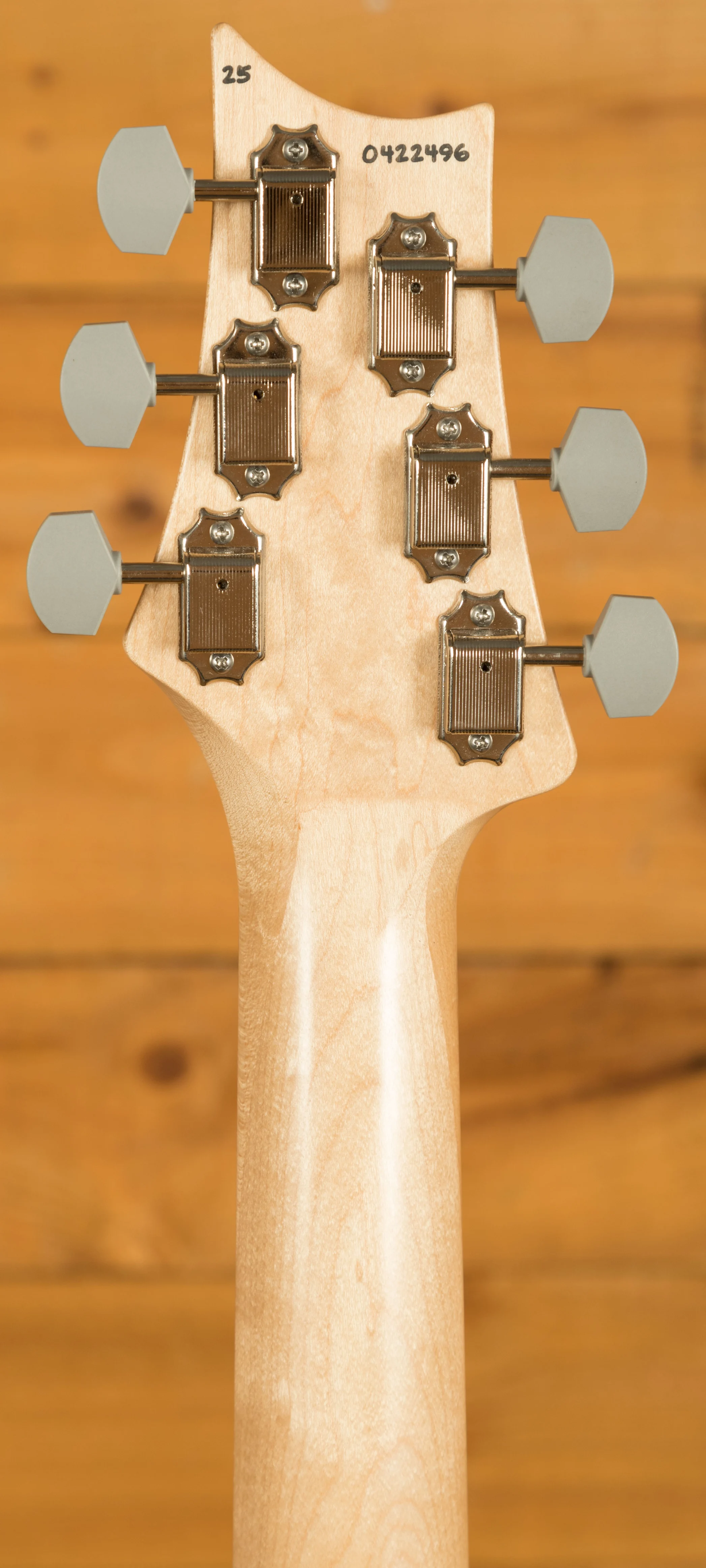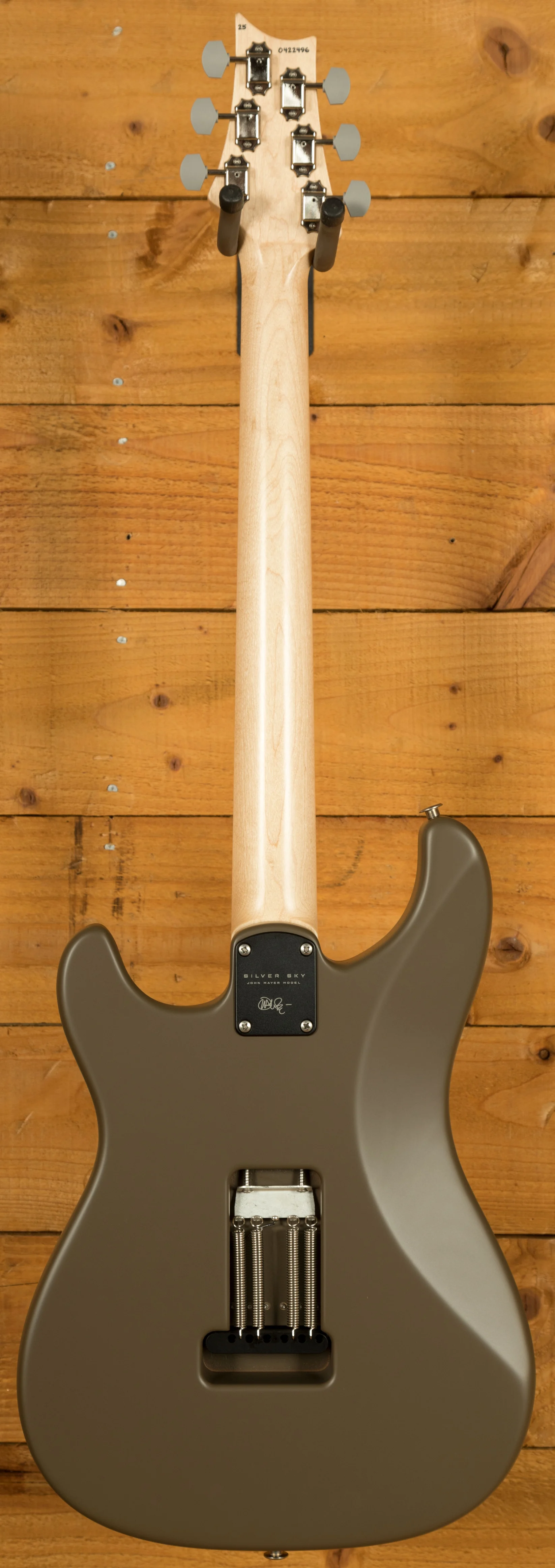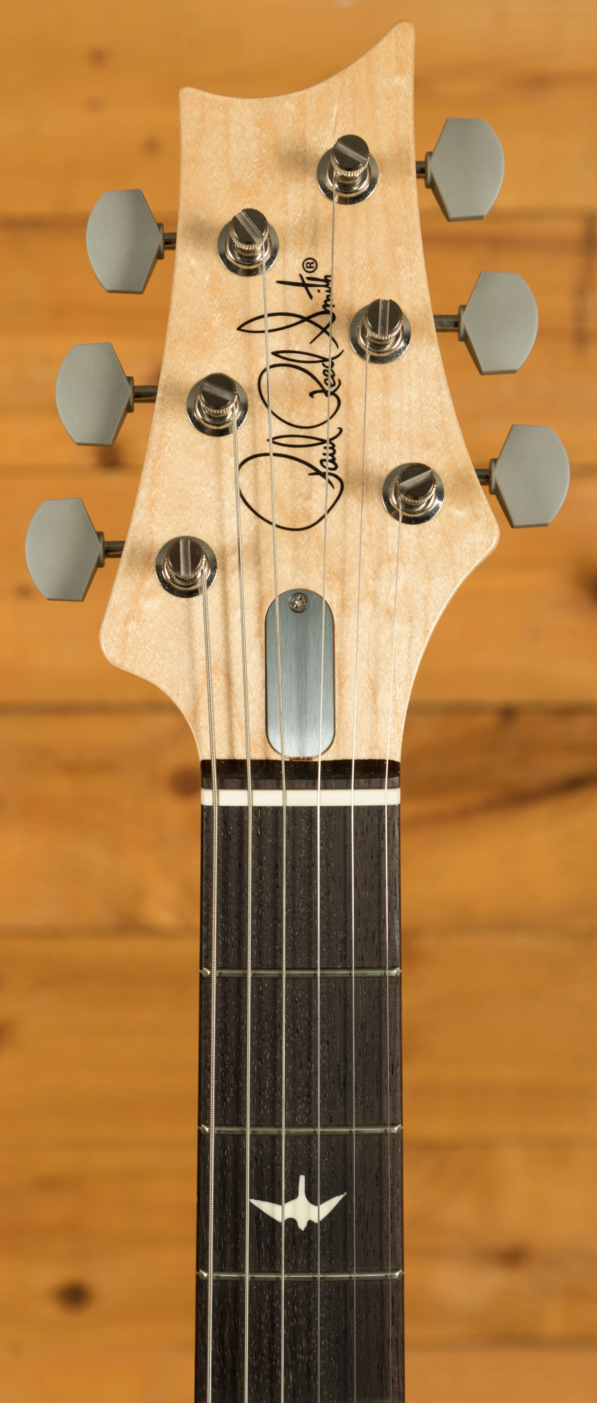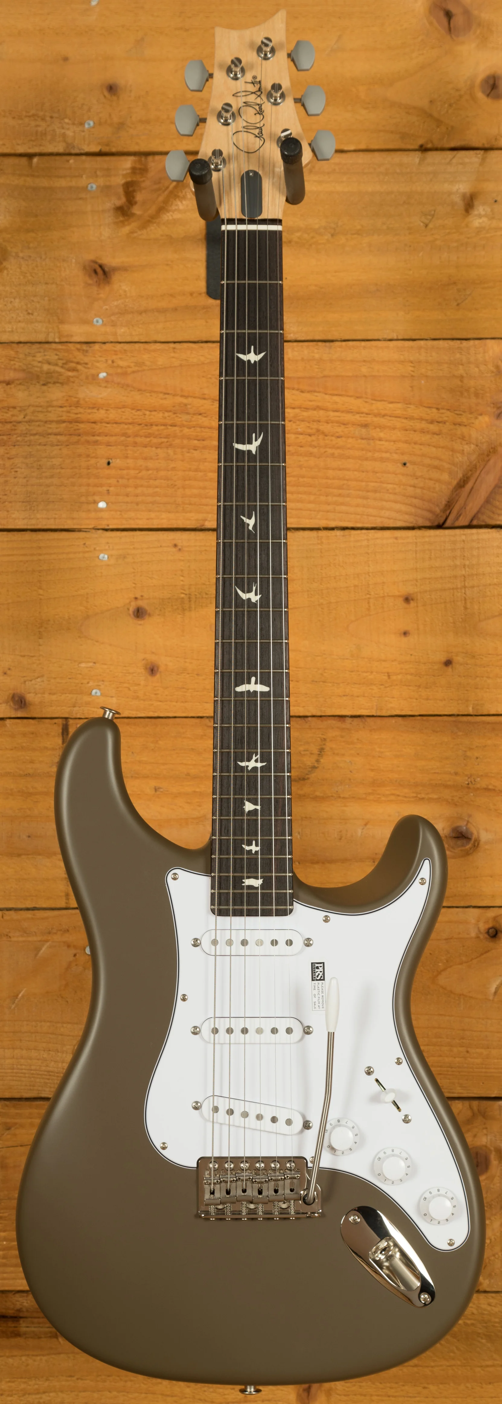 With an Alder body, it offers a traditional and supremely comfortable playing experience. Well balanced and featuring the signature PRS lower horn scoop, it delivers great access right up the neck. The body design was based around the PRS DC3 and adjusted and tweaked until it offered the shape that both Paul and John were happy with. The 22 fret bolt on Maple neck has a 25.5" scale length, 7.25" radius and features PRS medium frets, these frets are slightly larger than vintage frets but a touch smaller than the standard PRS frets. With an East Indian Rosewood fingerboard, which has small bird inlays, it offers a classic feel. The classic PRS headstock has been reversed on the Silver Sky to give some extra clearance on the underside of the nut, it offers great tuning stability and a really exclusive look to this signature model.