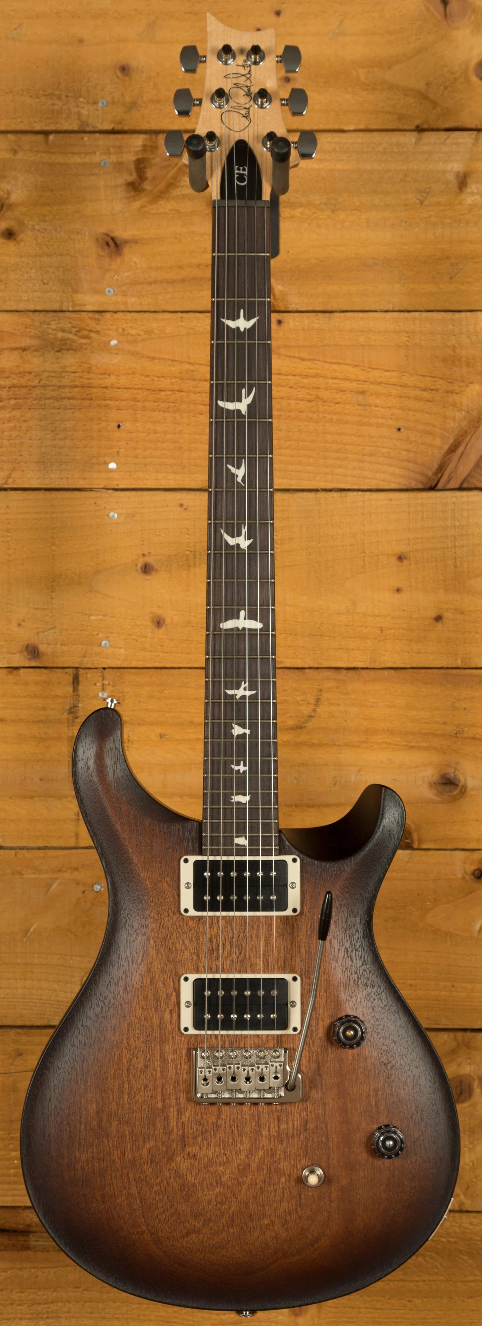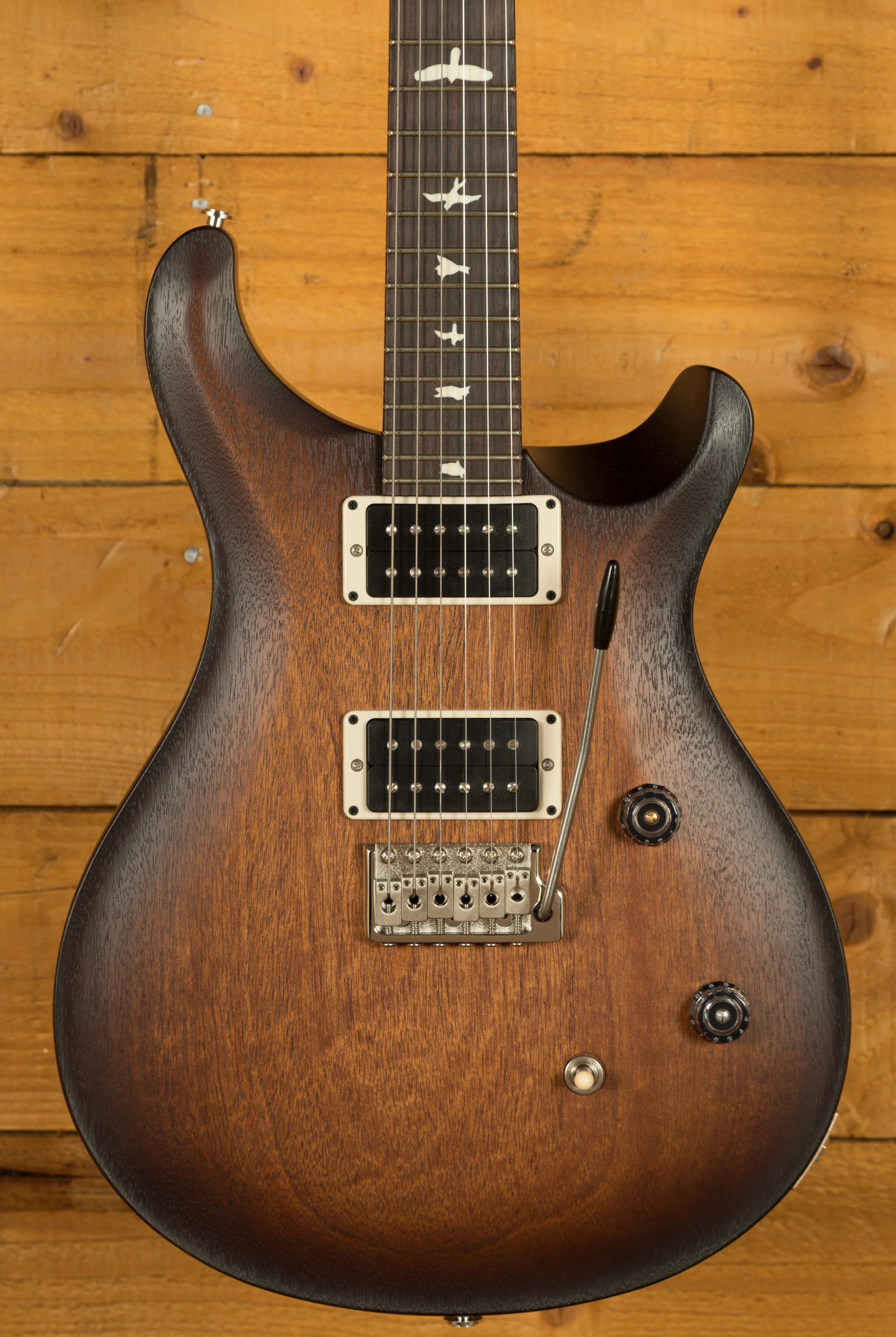 The Mahogany body offers a rich warmth and depth that complements the snappy response of the bolt on Maple neck. With a Pattern Thin profile, 25" scale length and of course, 24 frets, the Maple neck feels really comfortable and familiar. The iconic PRS birds sit proudly atop the Rosewood fingerboard for the definitive PRS experience.