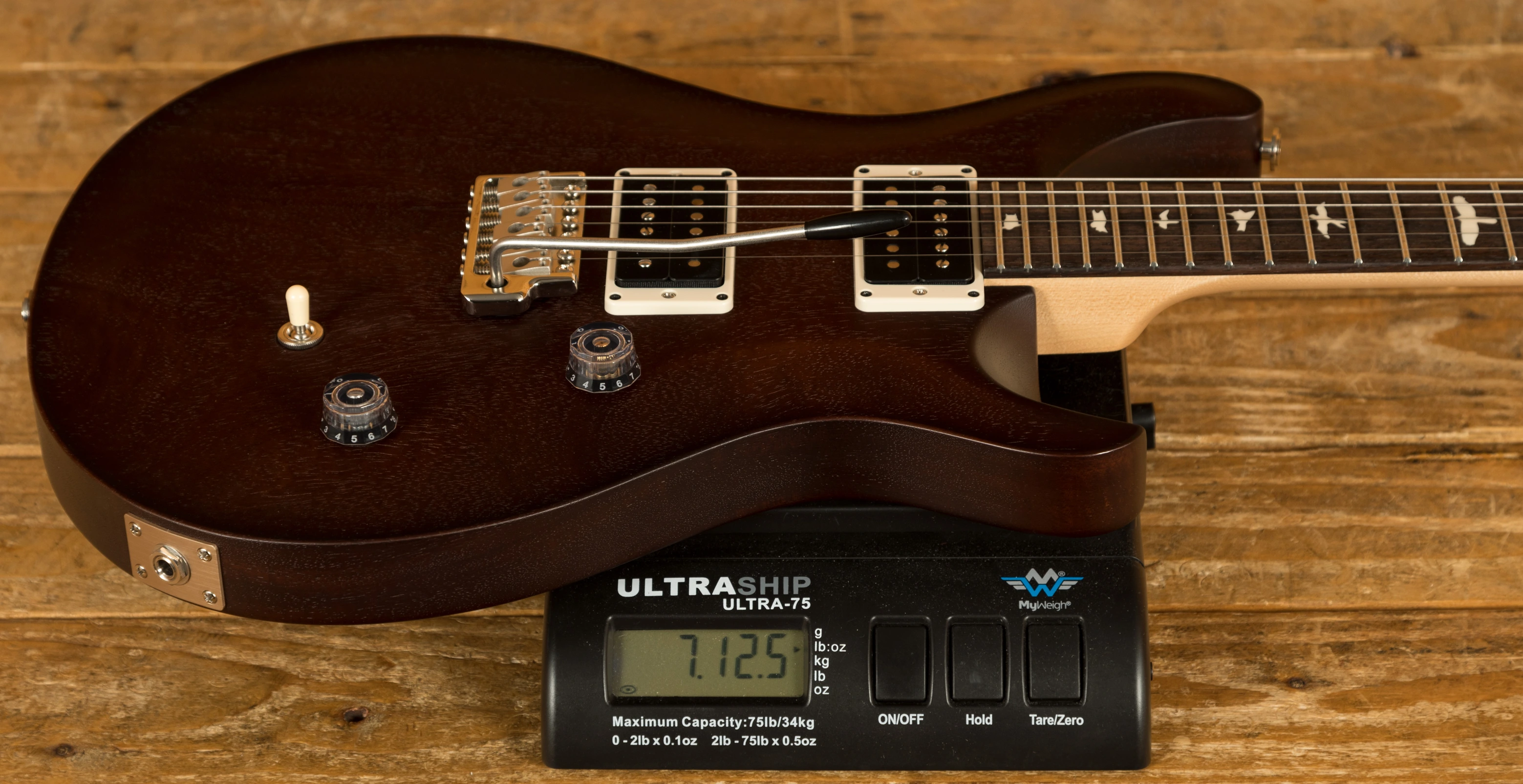 The Mahogany body offers a rich warmth and depth that complements the snappy response of the bolt on Maple neck. With a Pattern Thin profile, 25" scale length and of course, 24 frets, the Maple neck feels really comfortable and familiar. The iconic PRS birds sit proudly atop the Rosewood fingerboard for the definitive PRS experience.
