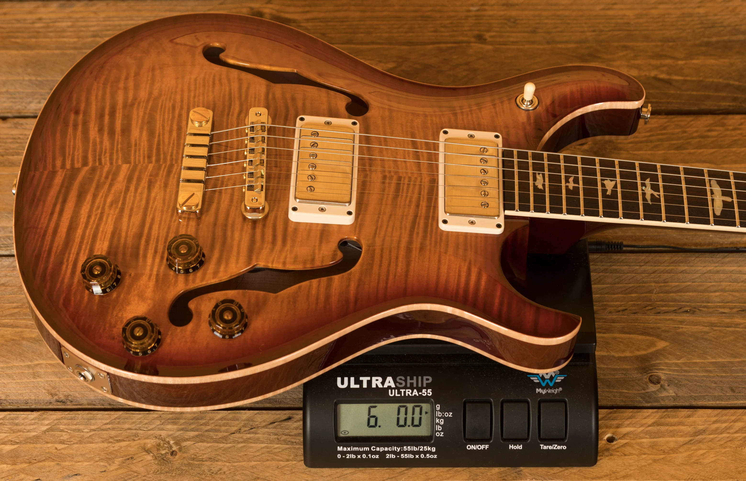 With a stunning carved Figured Maple top and back, the McCarty 594 Hollowbody looks every bit as good as it sounds. With a lightweight Mahogany middle it is perfectly weighted and balanced while the hollowbody design offers incredible resonance and sustain.
