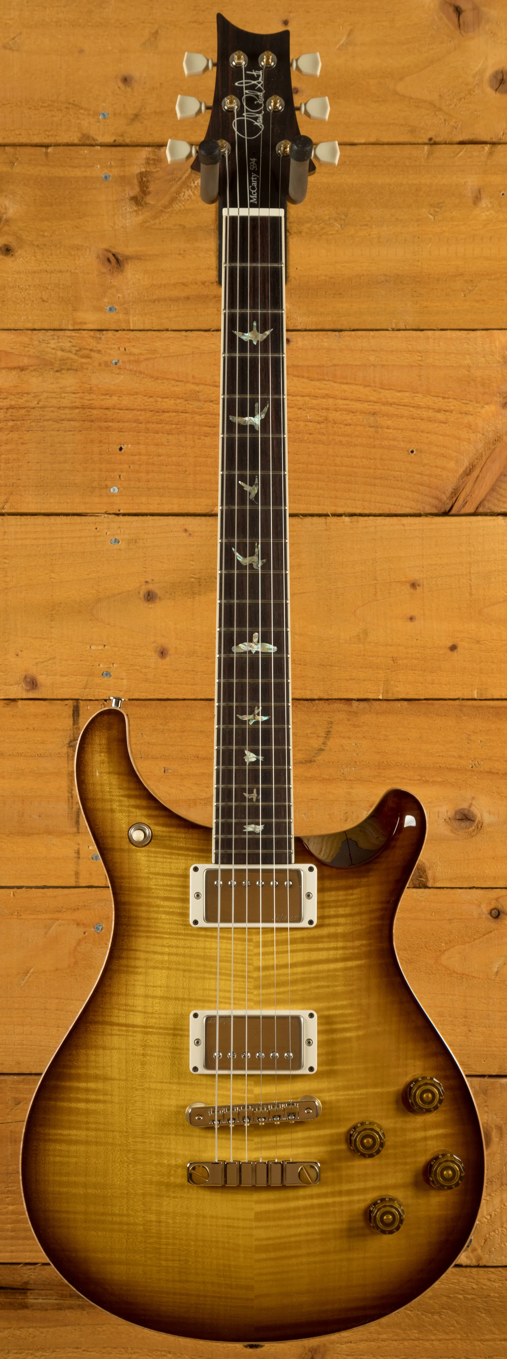 A comfortable 22 fret neck and Rosewood fingerboard proudly bears the signature PRS birds and its 24.594" scale length Mahogany neck, slightly longer than usual, is where the McCarty 594 gets its name.
