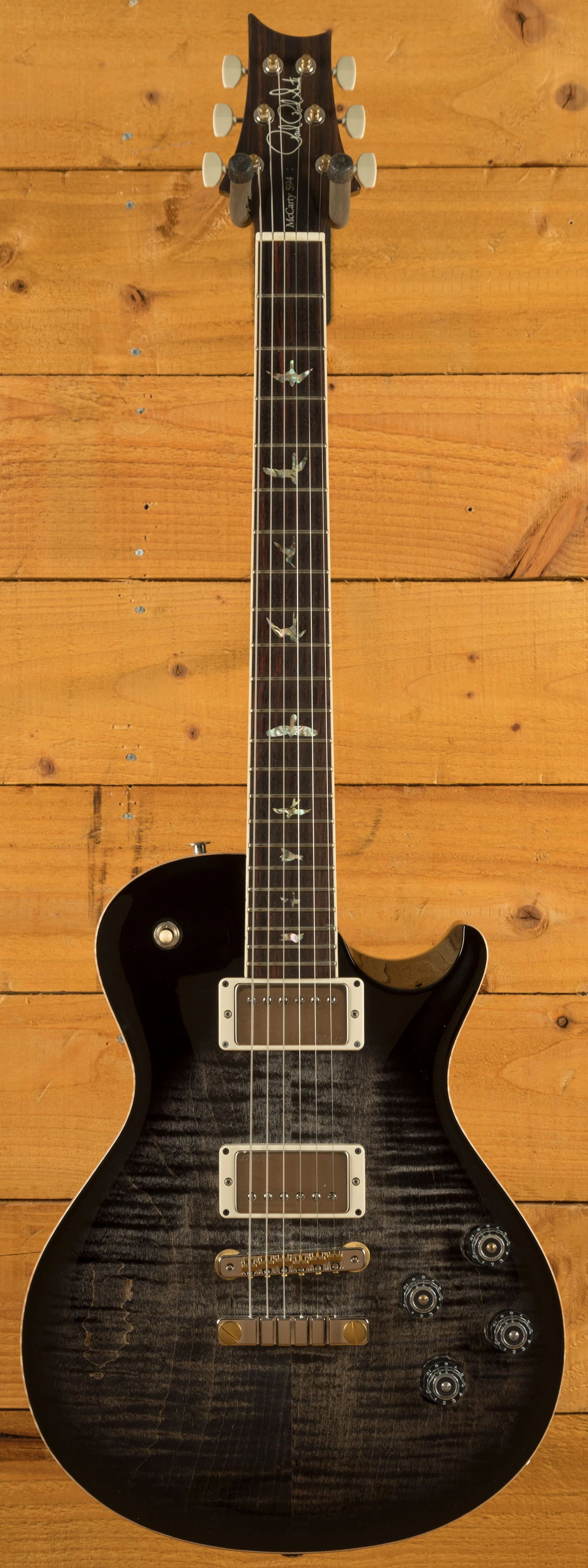 PRS's commitment to excellence extends to the hardware too. The PRS Two-Piece Bridge, constructed from zinc and brass, with its four contact points and added mass, elevates the guitar's natural tone, resulting in a remarkably resonant instrument. Vintage-style tuners with Wing buttons, a nod to tradition, not only keep your guitar in tune but also enhance its resonance. Along with a 10" fretboard radius and a Bone nut, the McCarty 594 ensures comfortable playability and impeccable intonation across its entire length.