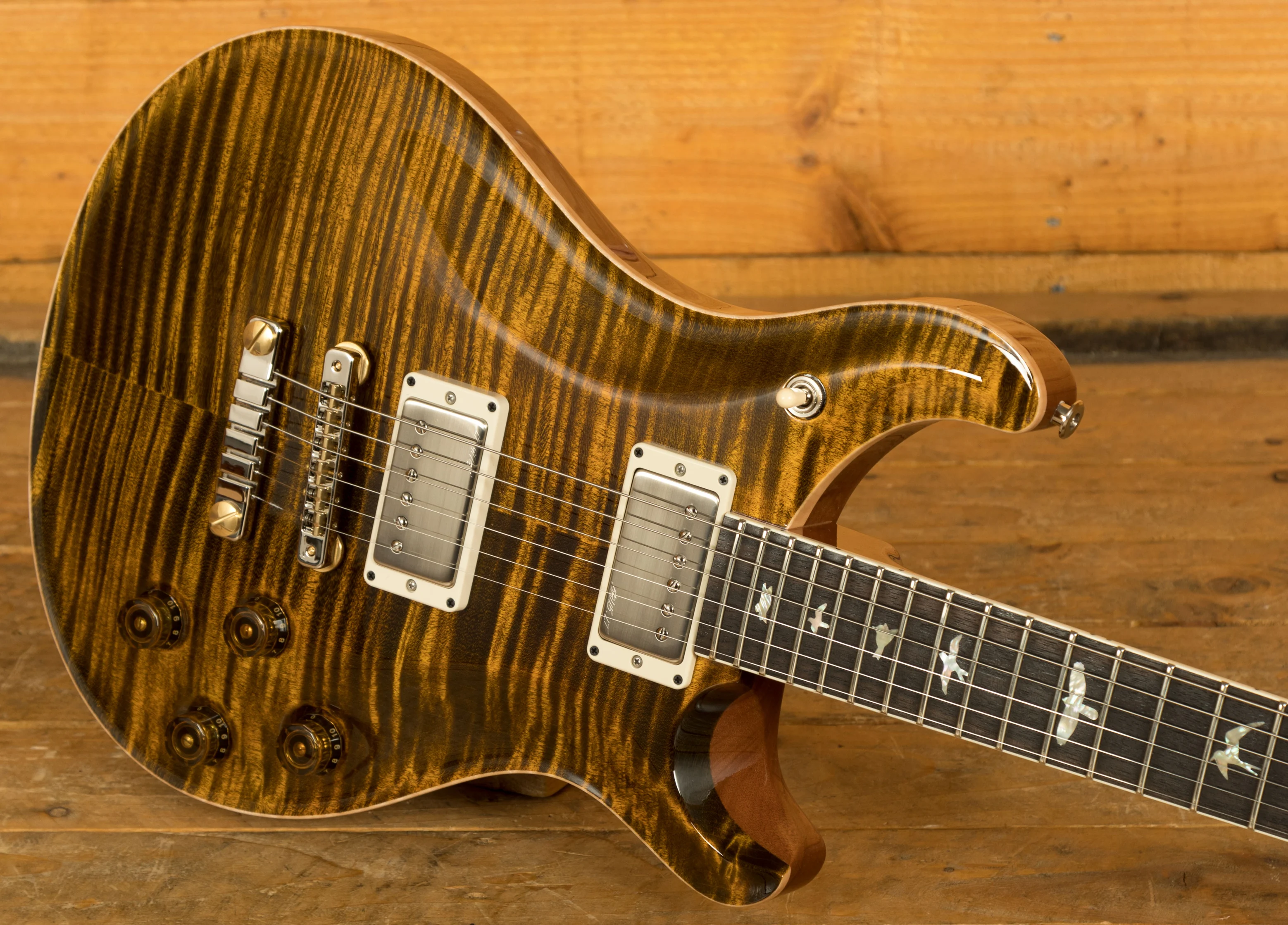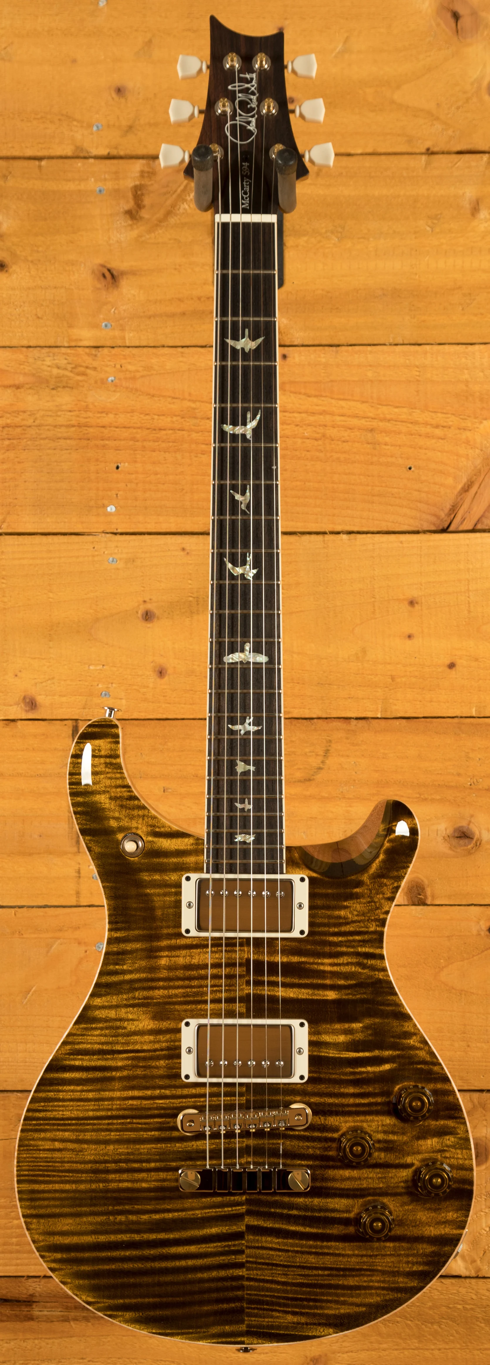 A comfortable 22 fret Mahogany neck and Rosewood fingerboard proudly bears the signature PRS birds and its 24.594" scale length Mahogany neck, slightly longer than usual, is where the McCarty 594 gets its name.