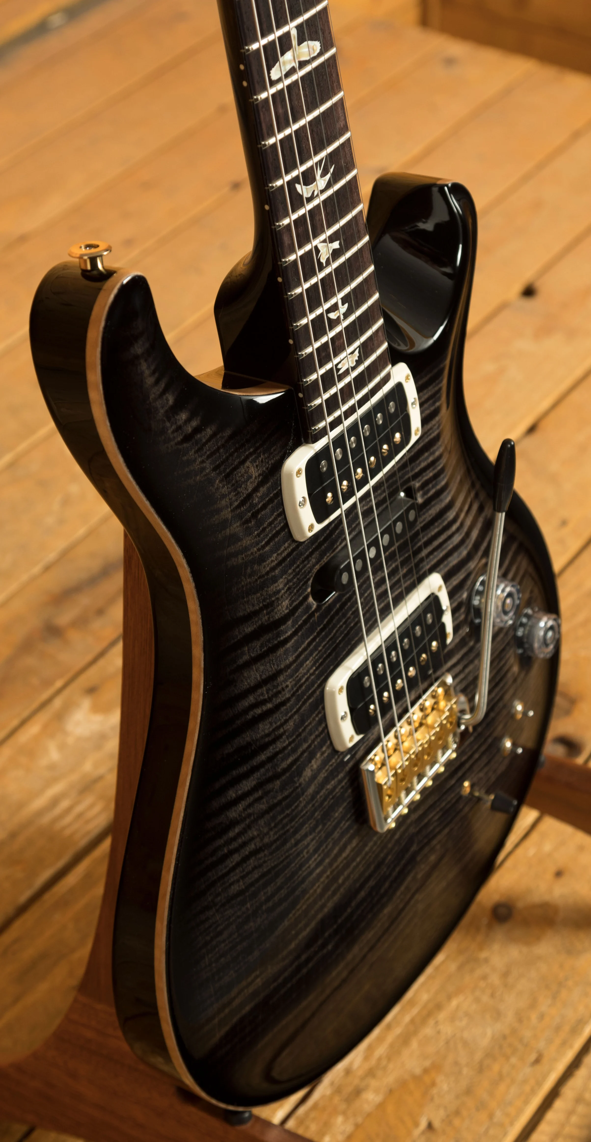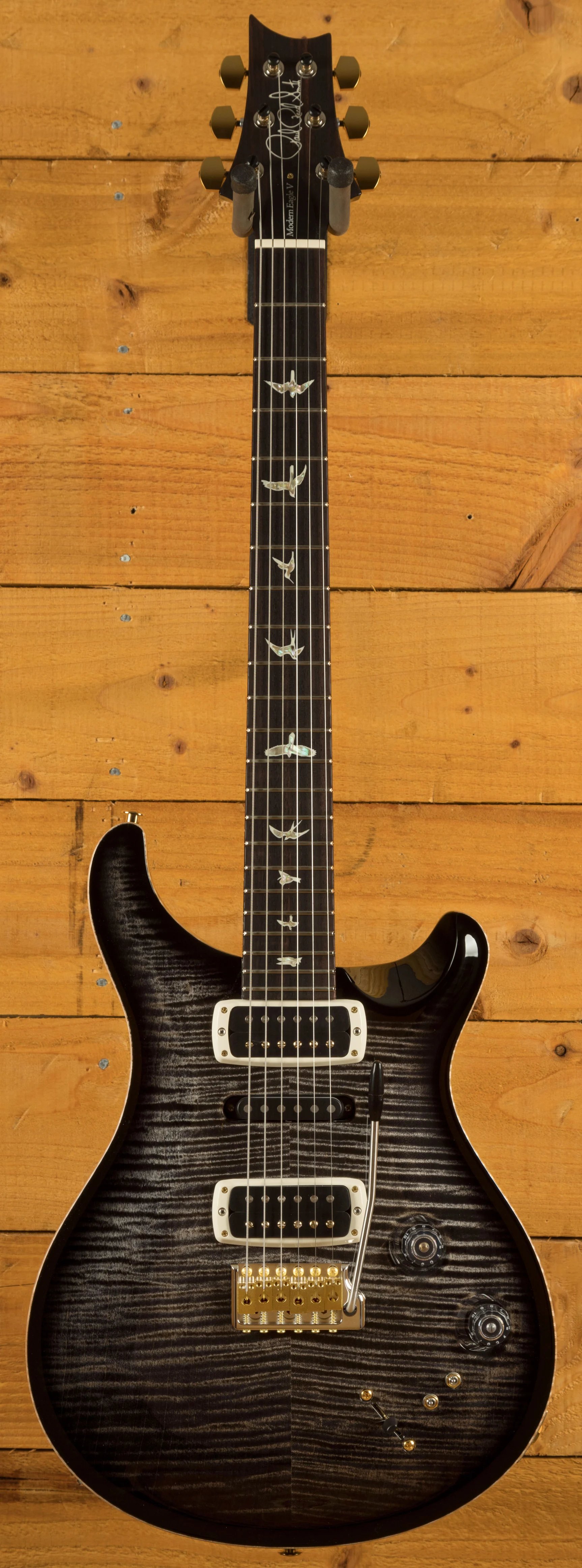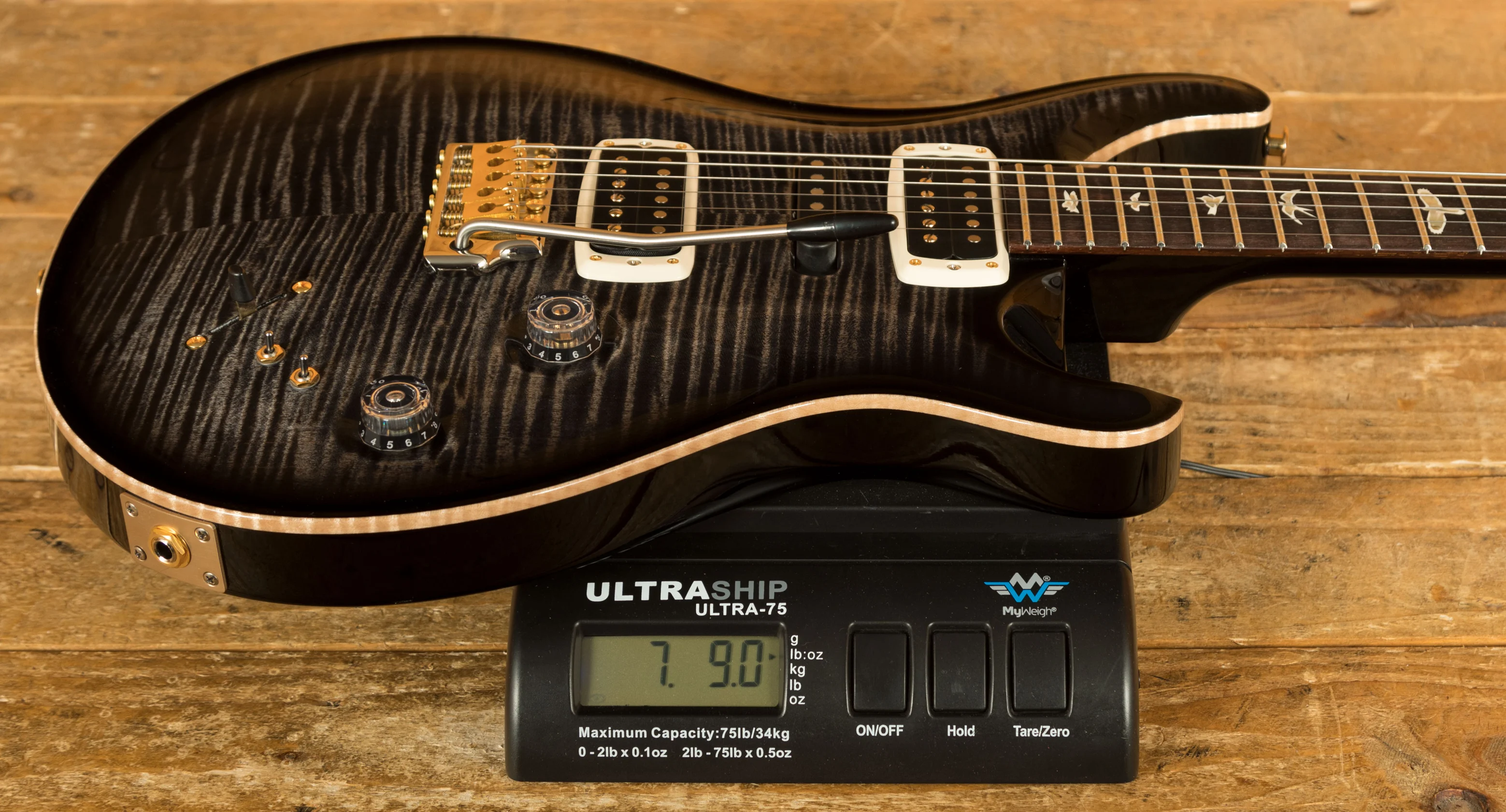 The PRS Modern Eagle V utilizes a hum/single/hum (five-coil) pickup configuration and introduces a new and unique switching system that gives players a vast array of tones in one guitar. The 5-way blade switch selects the pickups just as the 509 does (treble, treble and middle, middle, middle and bass, bass). The two paired mini-toggles separate the slug-side coils, turning the humbuckers into true, "TCI-tuned" single coils. There is a single volume and a push/pull tone control that activates both humbuckers when engaged; this allows players to access three pickups simultaneously. This electronics design puts a whole set of classic and new tones at your fingertips.