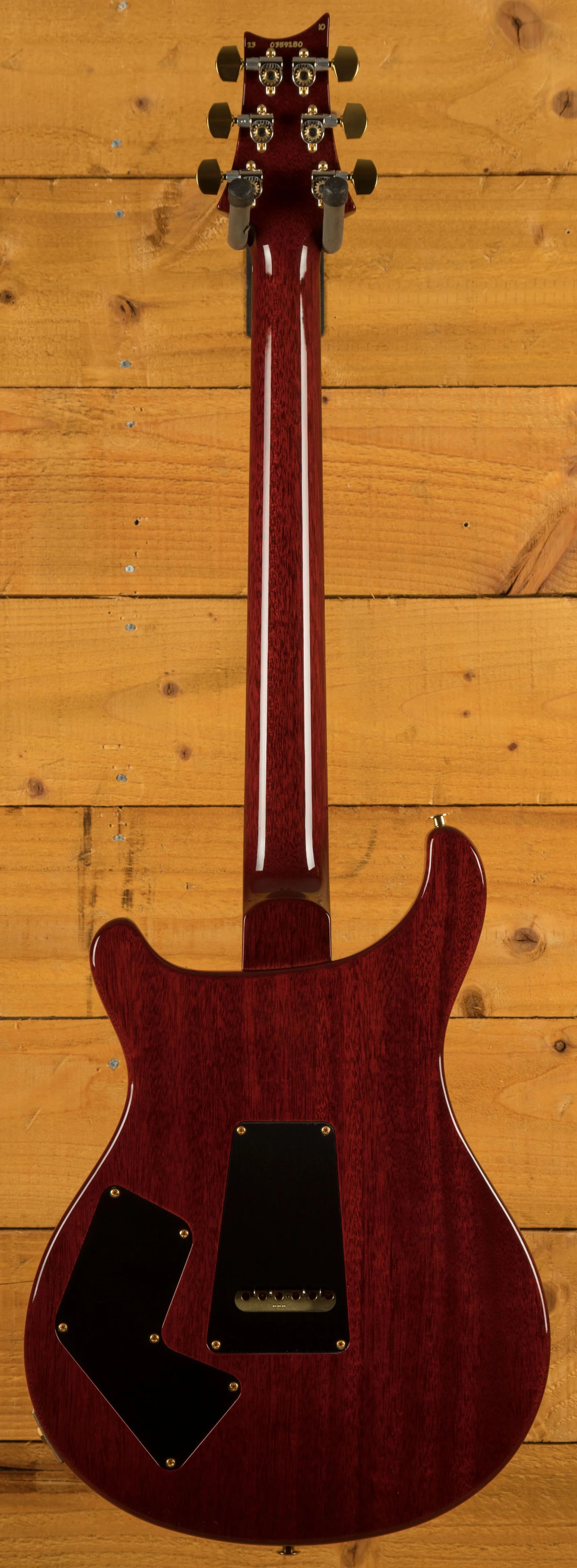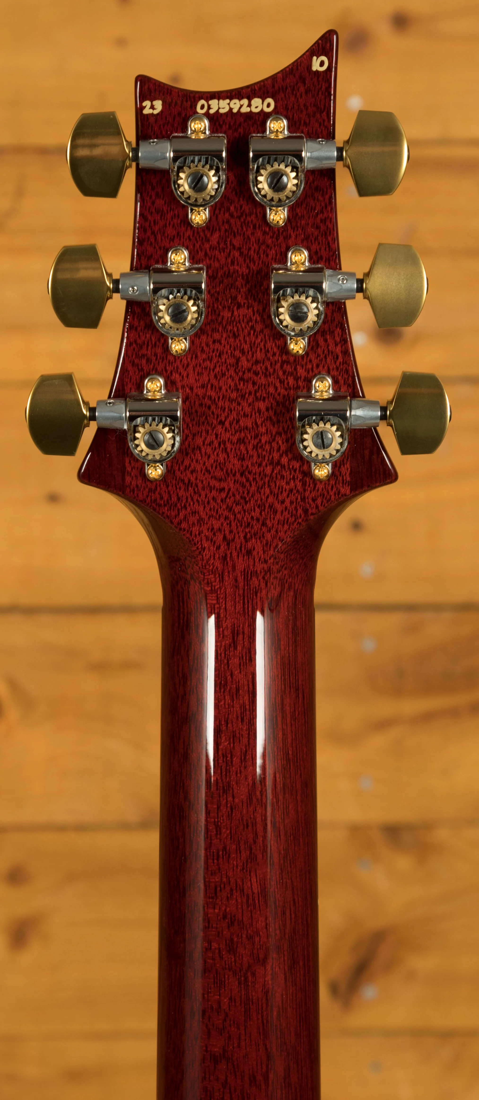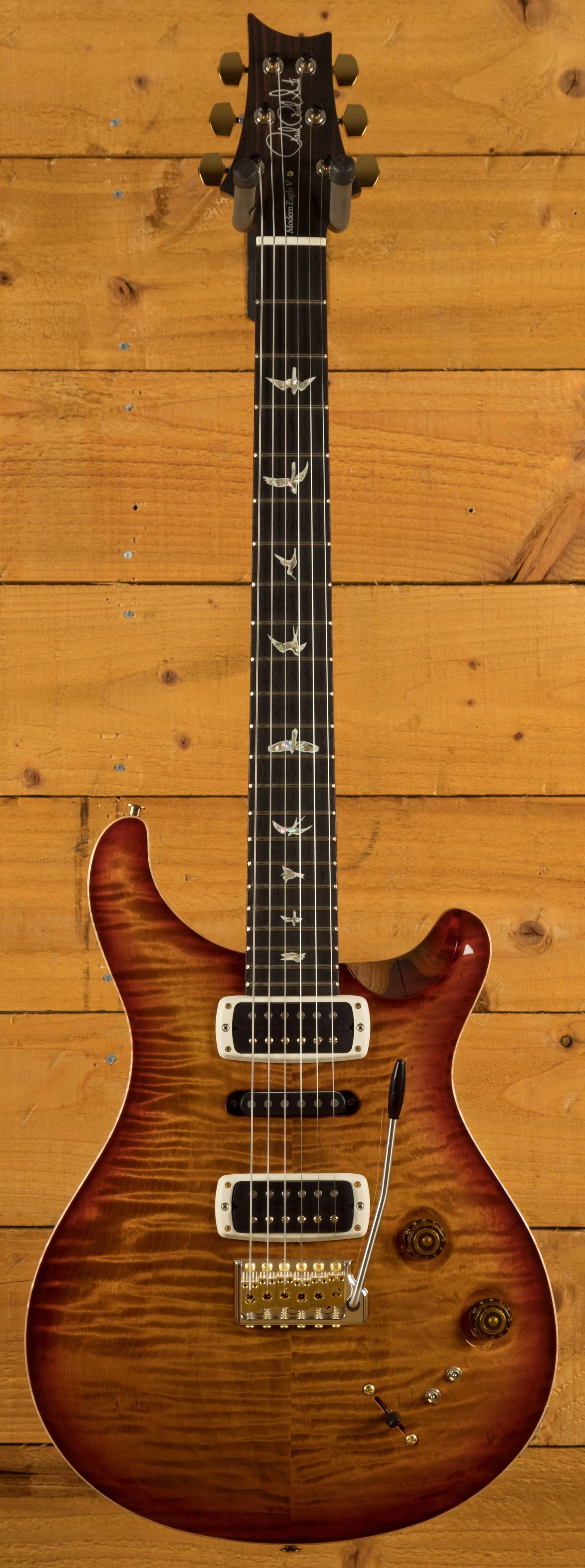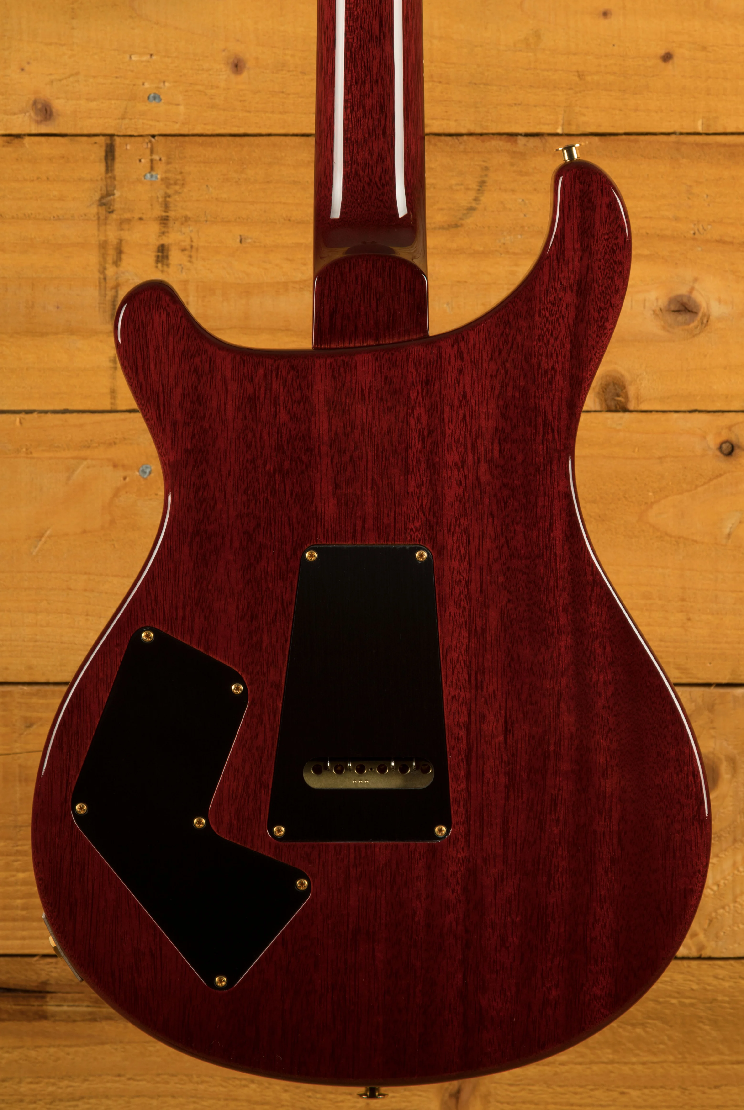 The PRS Modern Eagle V utilizes a hum/single/hum (five-coil) pickup configuration and introduces a new and unique switching system that gives players a vast array of tones in one guitar. The 5-way blade switch selects the pickups just as the 509 does (treble, treble and middle, middle, middle and bass, bass). The two paired mini-toggles separate the slug-side coils, turning the humbuckers into true, "TCI-tuned" single coils. There is a single volume and a push/pull tone control that activates both humbuckers when engaged; this allows players to access three pickups simultaneously. This electronics design puts a whole set of classic and new tones at your fingertips.