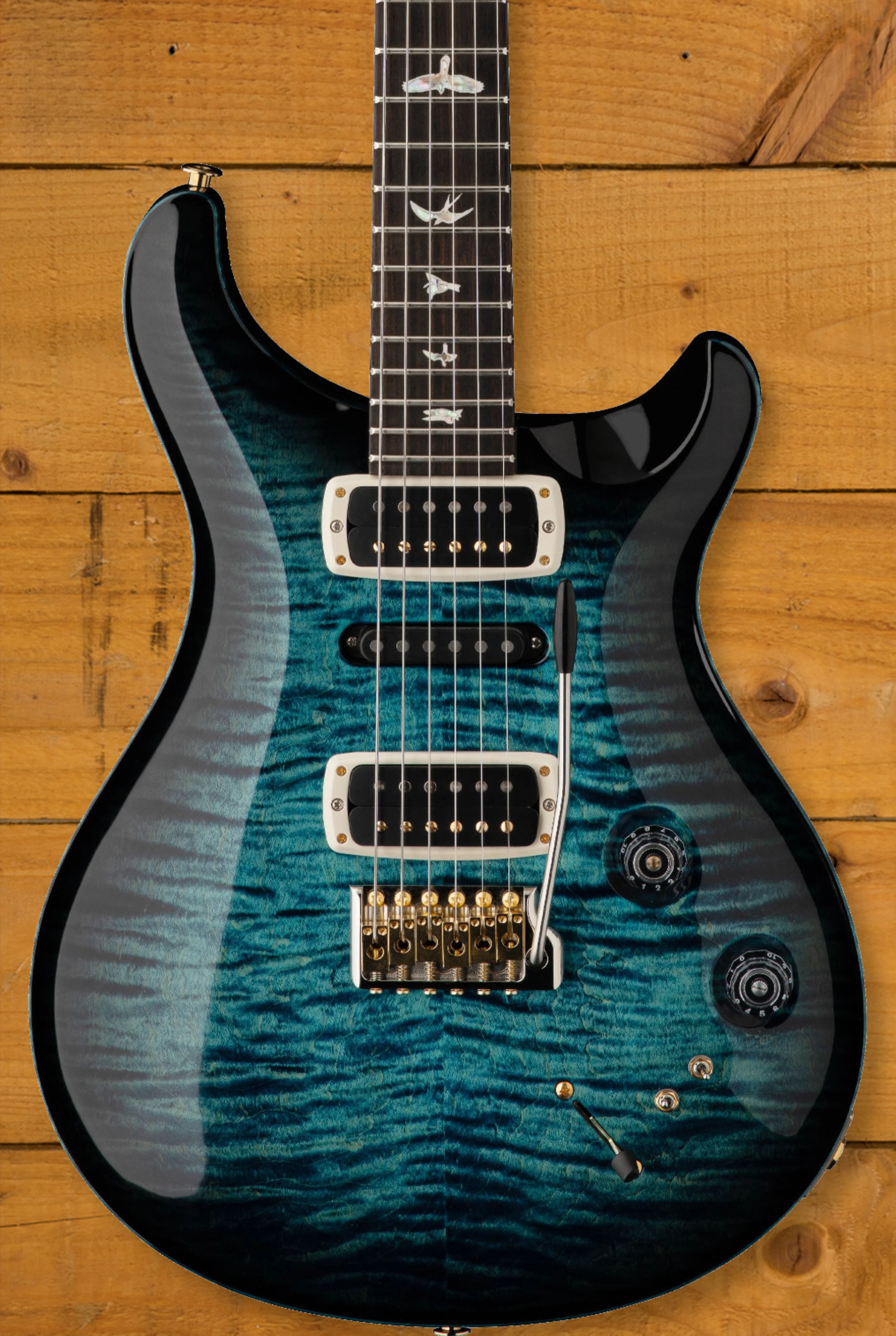 Additional appointments include a maple top and mahogany back, a 22 fret, 25" scale length, Pattern mahogany neck with rosewood fretboard, bone nut, and PRS patented Gen III tremolo.