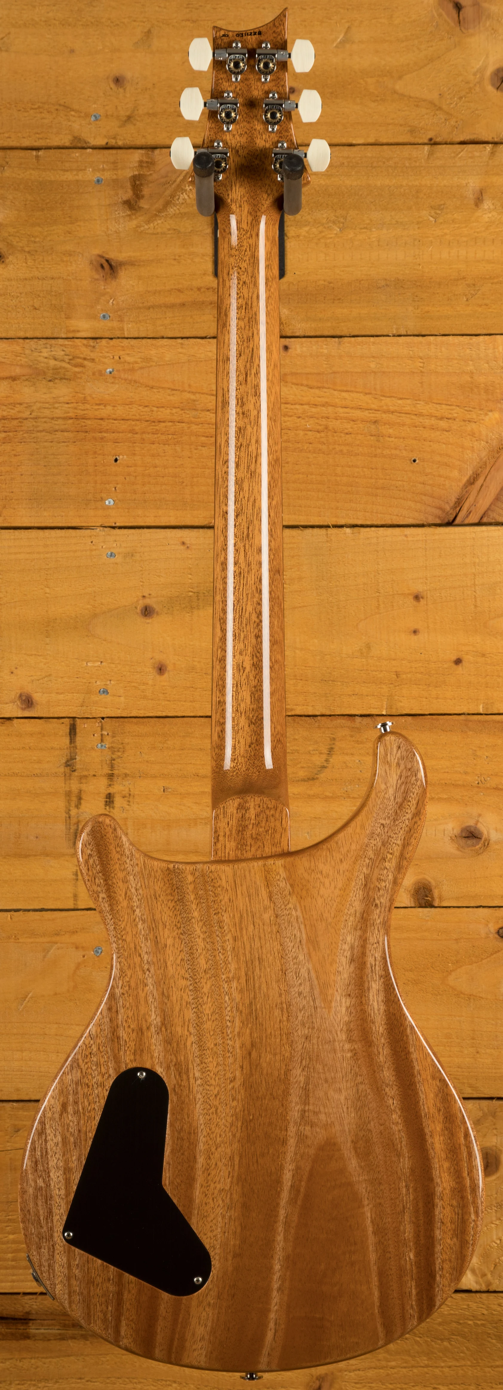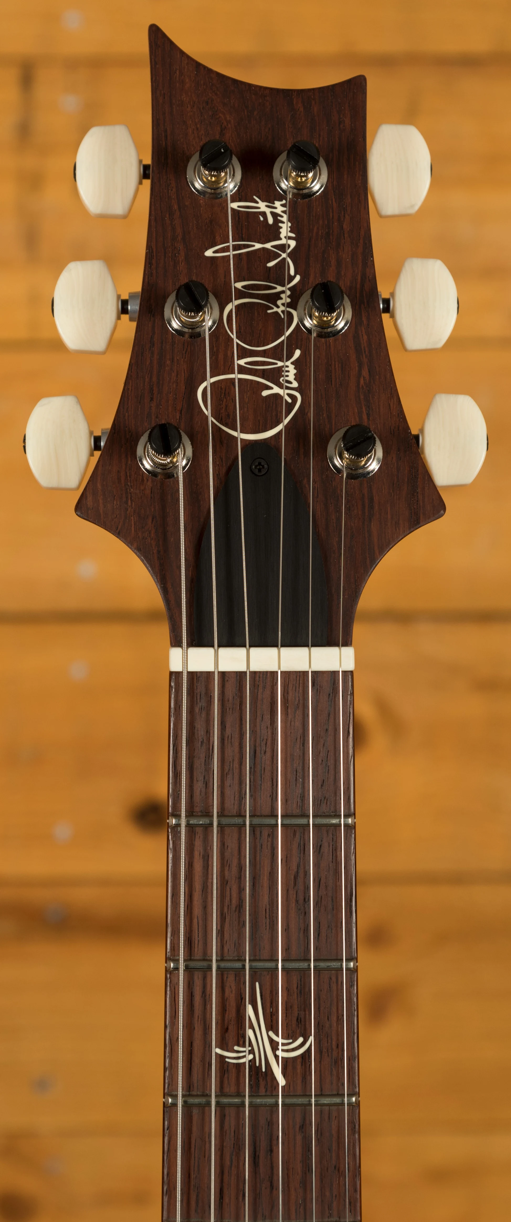 With a Pattern profile, 25" scale length 22 frets, the Mahogany neck feels really comfortable and familiar. The iconic PRS brushstroke birds sit proudly atop the Honduran Rosewood fingerboard for the definitive PRS experience.