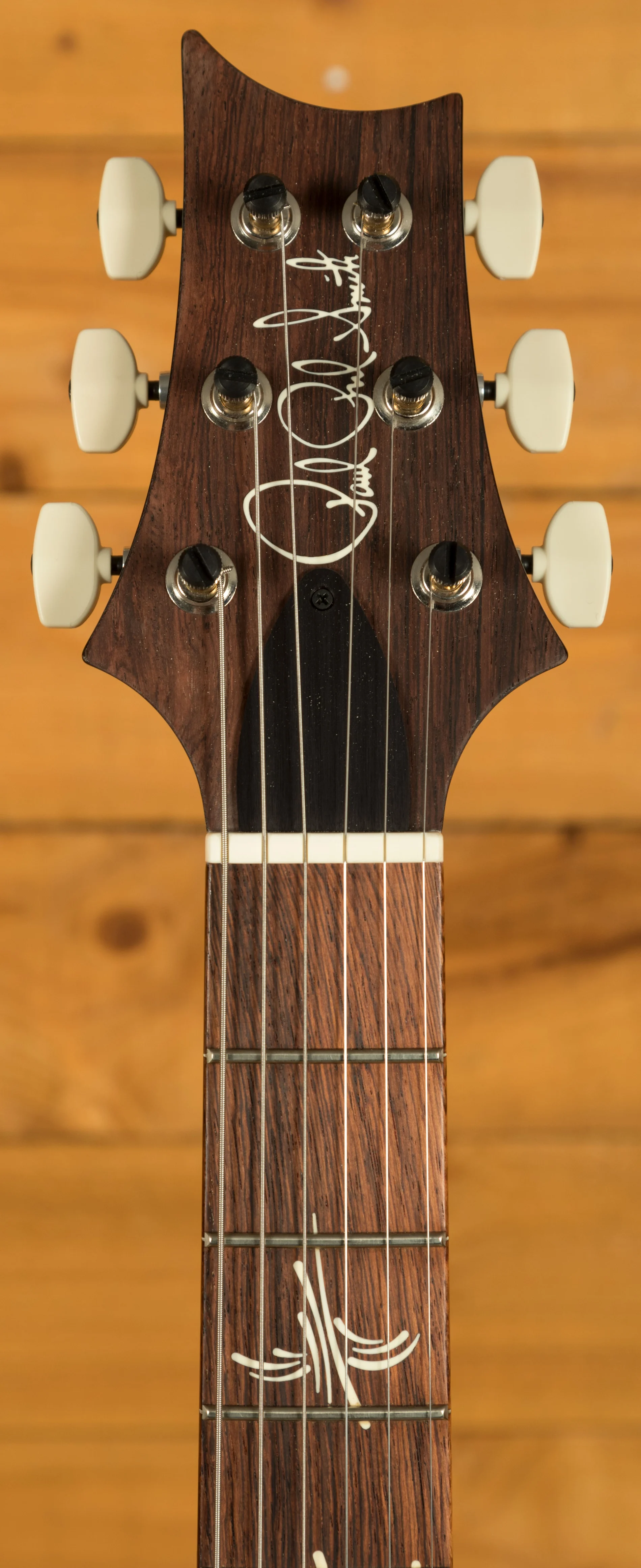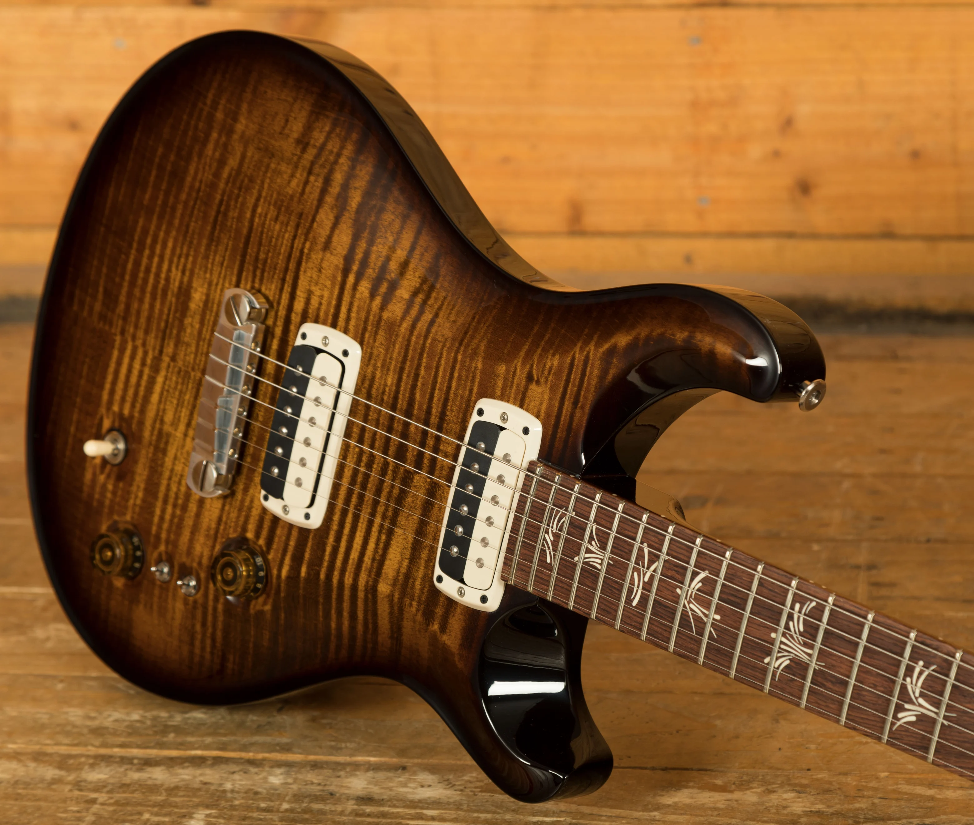 With a Pattern profile, 25" scale length 22 frets, the Mahogany neck feels really comfortable and familiar. The iconic PRS brushstroke birds sit proudly atop the Honduran Rosewood fingerboard for the definitive PRS experience.