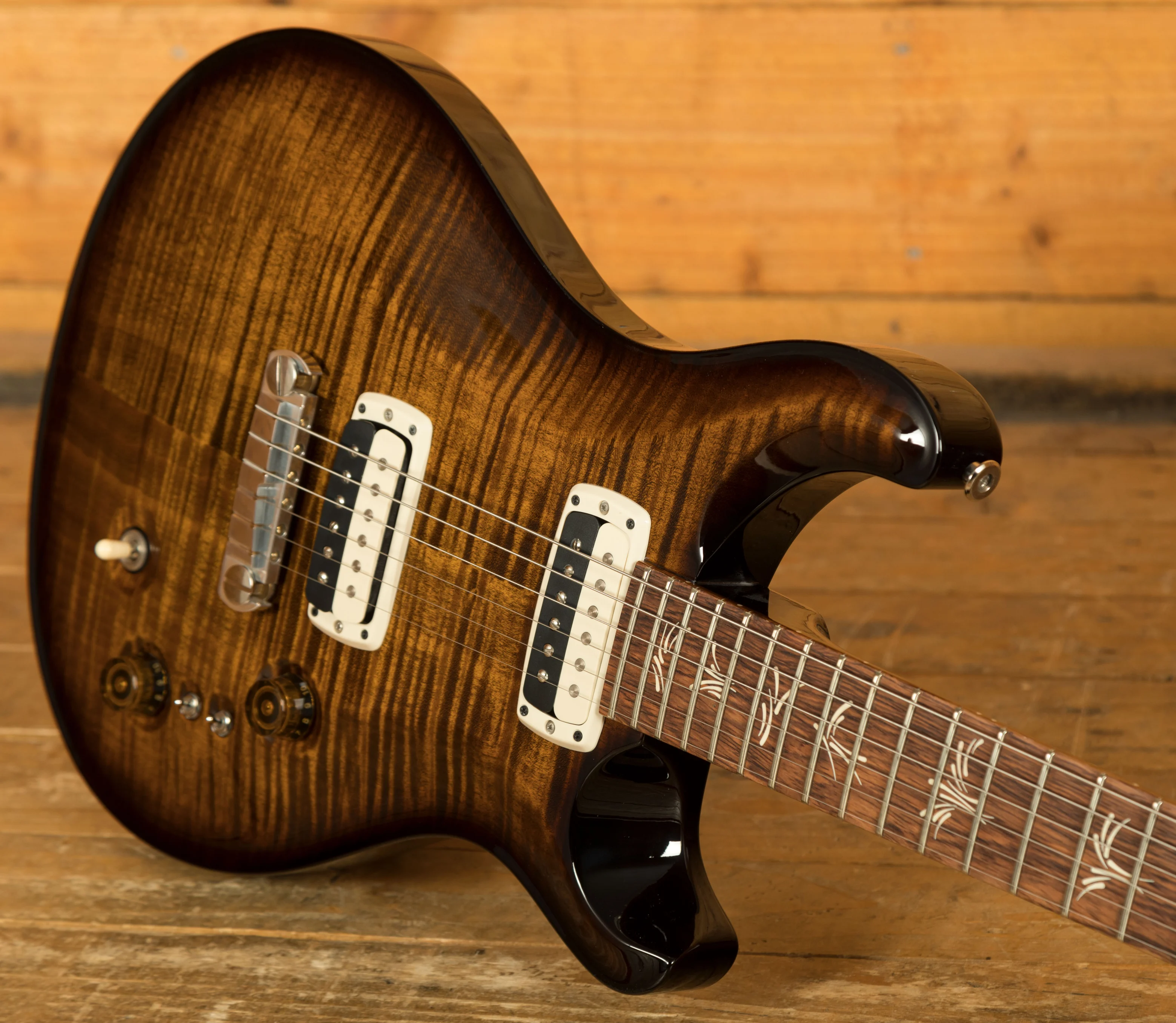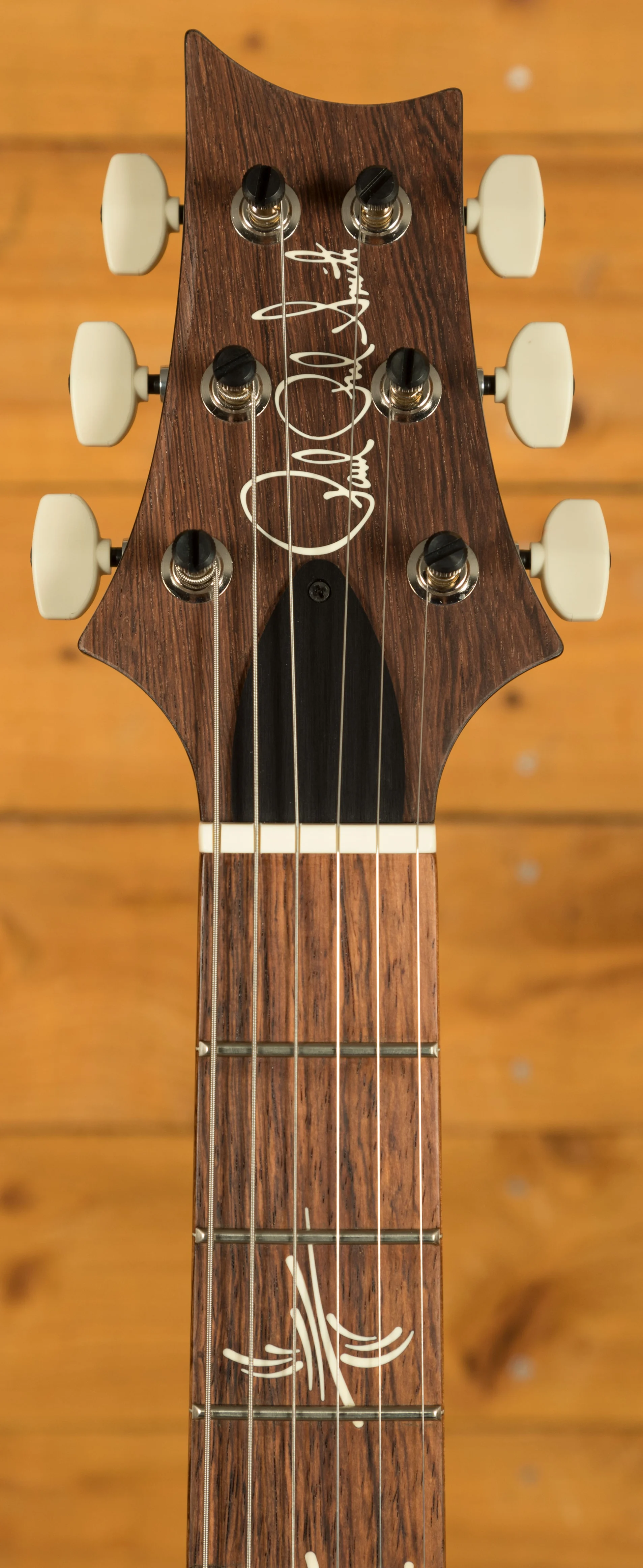With a Pattern profile, 25" scale length 22 frets, the Mahogany neck feels really comfortable and familiar. The iconic PRS brushstroke birds sit proudly atop the Honduran Rosewood fingerboard for the definitive PRS experience.