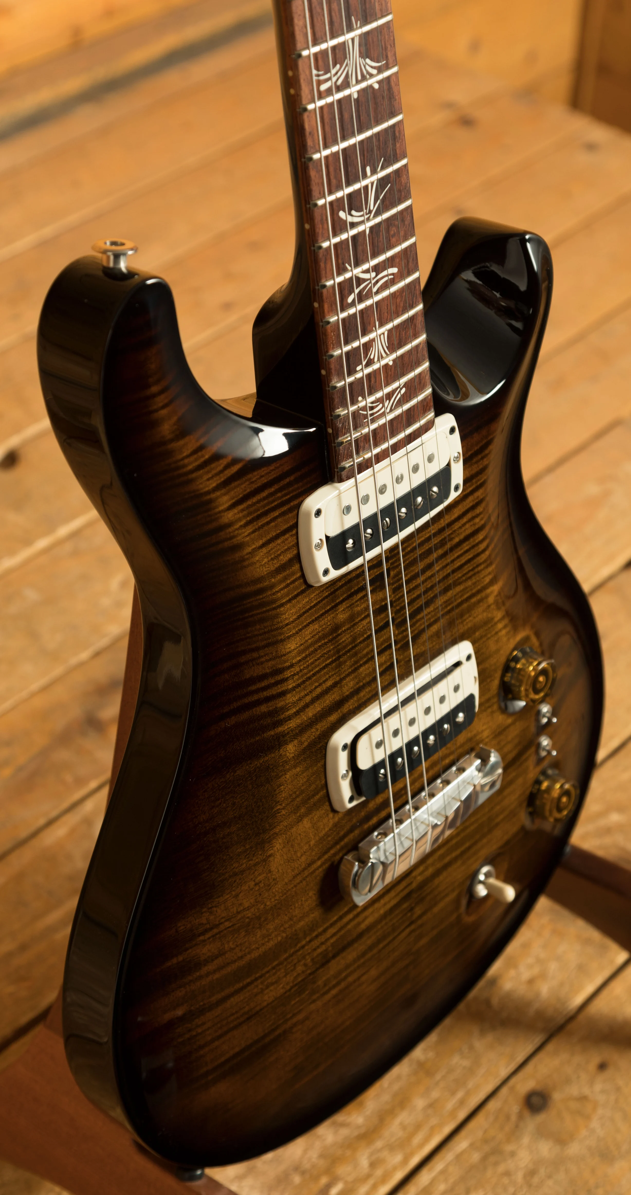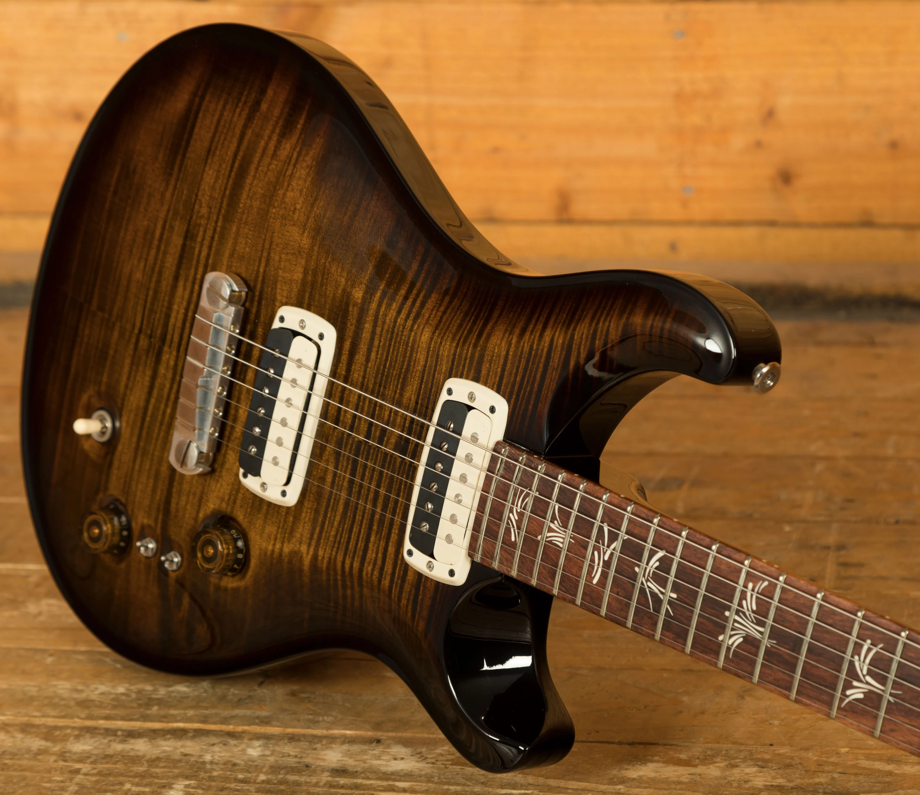 With a Pattern profile, 25" scale length 22 frets, the Mahogany neck feels really comfortable and familiar. The iconic PRS brushstroke birds sit proudly atop the Honduran Rosewood fingerboard for the definitive PRS experience.