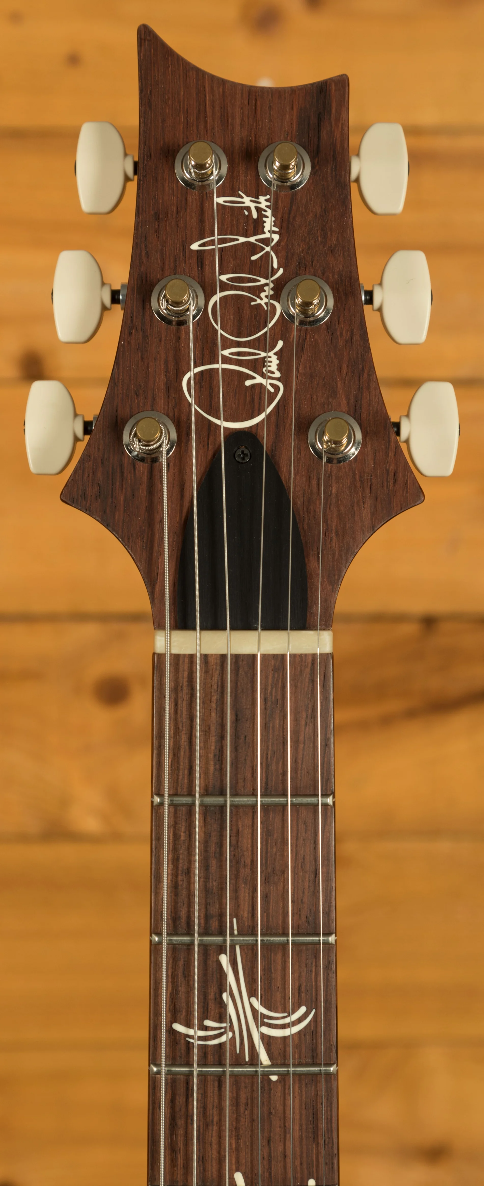 With a Pattern profile, 25" scale length 22 frets, the Mahogany neck feels really comfortable and familiar. The iconic PRS brushstroke birds sit proudly atop the Honduran Rosewood fingerboard for the definitive PRS experience.