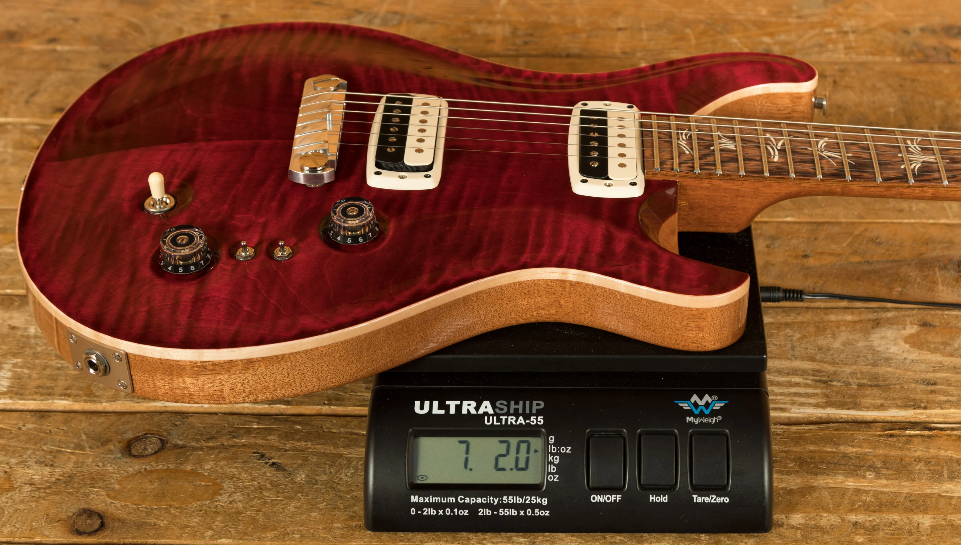 The Mahogany body with Carved Figured Maple top offers a rich warmth and depth that complements the beautiful aesthetic. The Red Tiger finish is vibrant and really highlights the incredible figuring on this guitar. It is extremely well weighted and incredibly comfortable against the body.