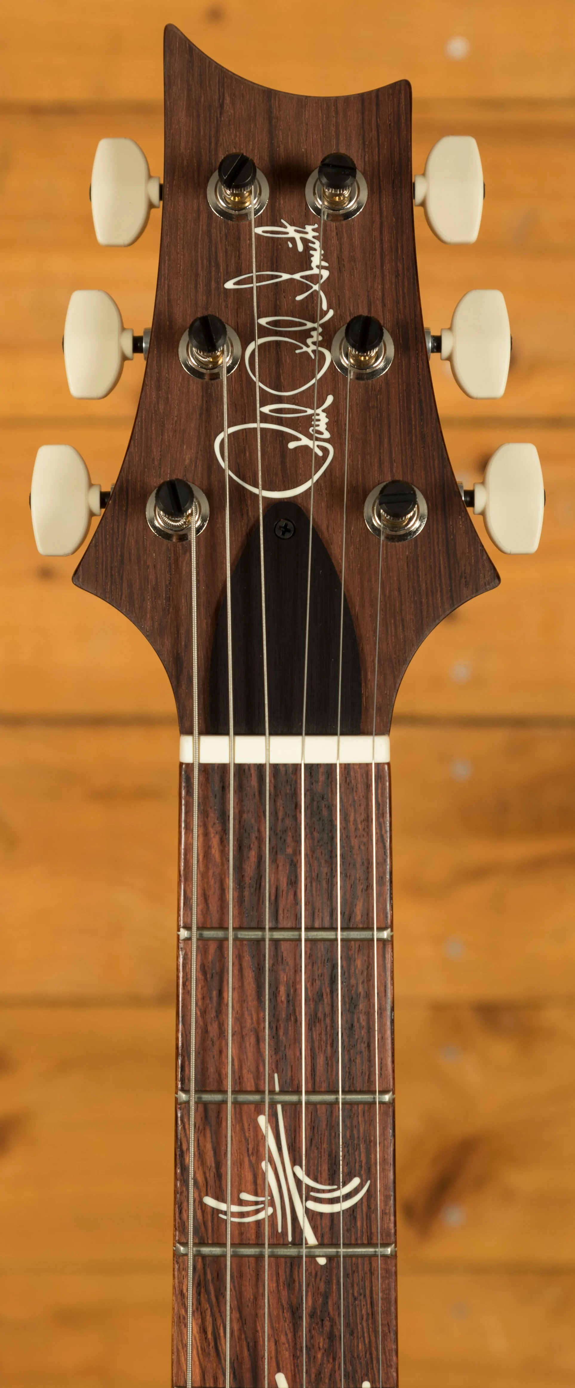 With a Pattern profile, 25" scale length 22 frets, the Mahogany neck feels really comfortable and familiar. The iconic PRS brushstroke birds sit proudly atop the Honduran Rosewood fingerboard for the definitive PRS experience.