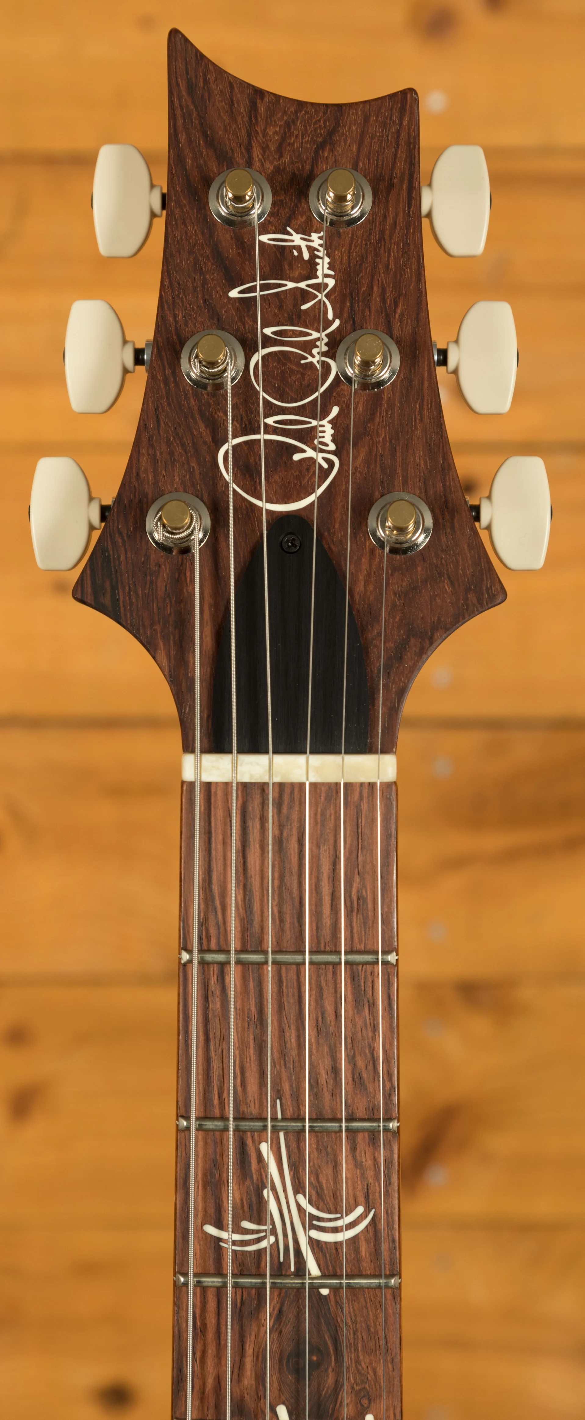 With a Pattern profile, 25" scale length 22 frets, the Mahogany neck feels really comfortable and familiar. The iconic PRS brushstroke birds sit proudly atop the Honduran Rosewood fingerboard for the definitive PRS experience.