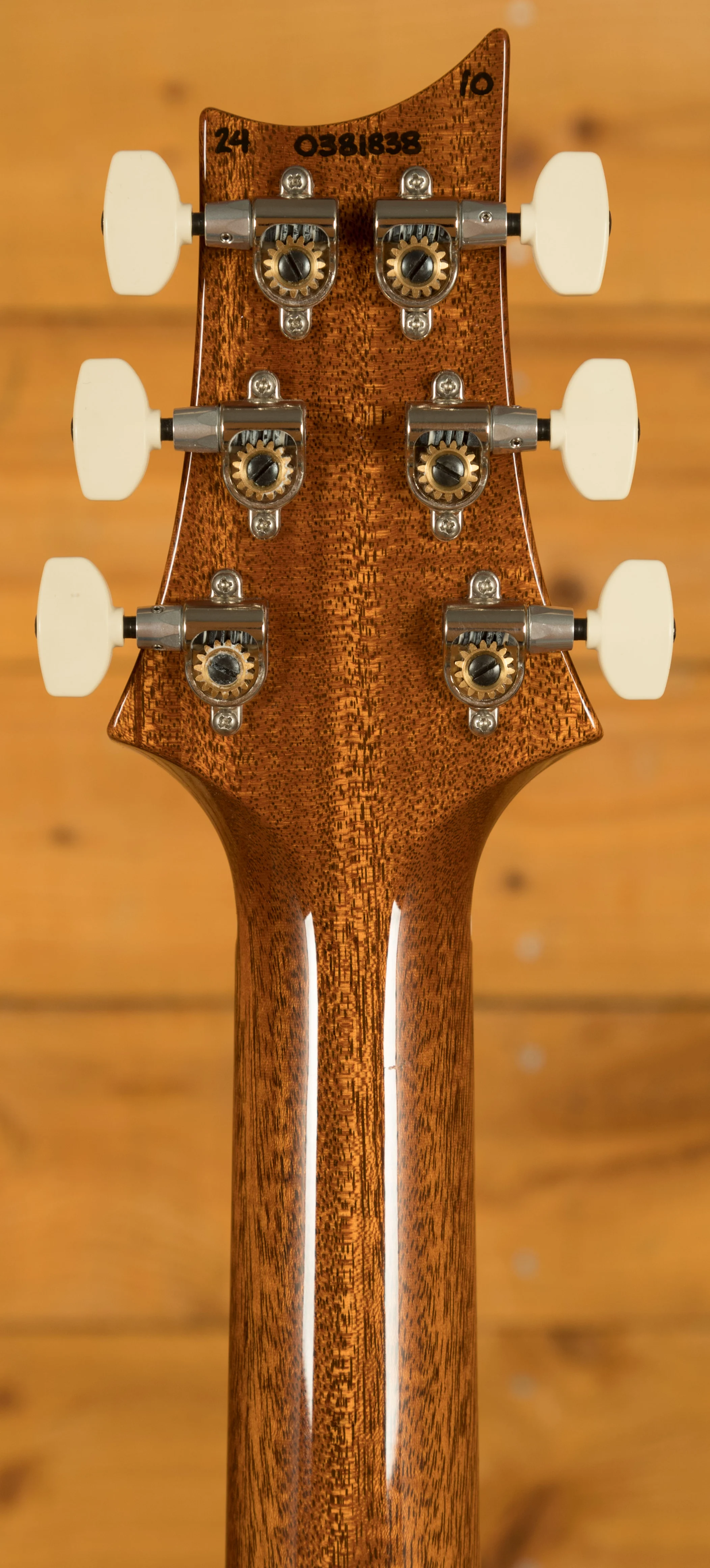 The PRS Stoptail bridge features curved string slots with brass inserts and brass studs to enhance resonance, while the lightweight PRS Phase III non-locking tuners with wing buttons provide vintage elegance and improved tone transfer for a more resonant instrument.
