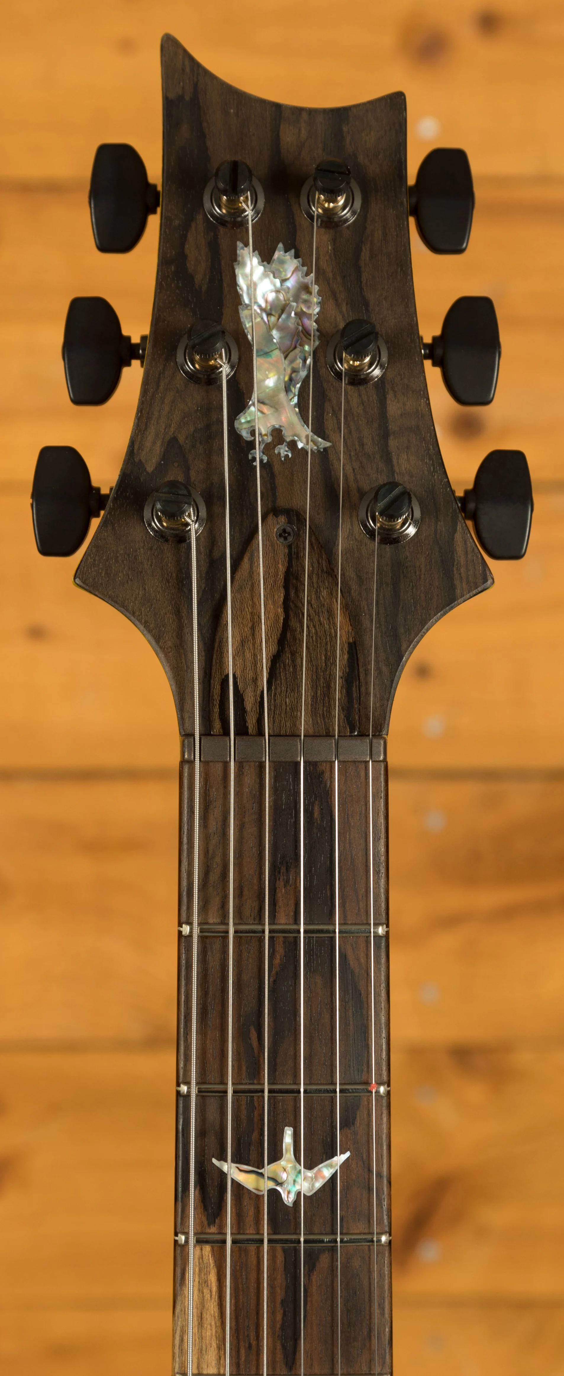 Only the finest hardware is utilised, featuring a Smoked Black PRS Gen III tremolo bridge for exceptional sonic fidelity, player ergonomics, and revolutionary tuning stability. PRS Phase III setscrew locking tuning pegs with wing buttons combine modern locking technology with vintage elegance, promoting tone transfer for a louder, more resonant instrument.