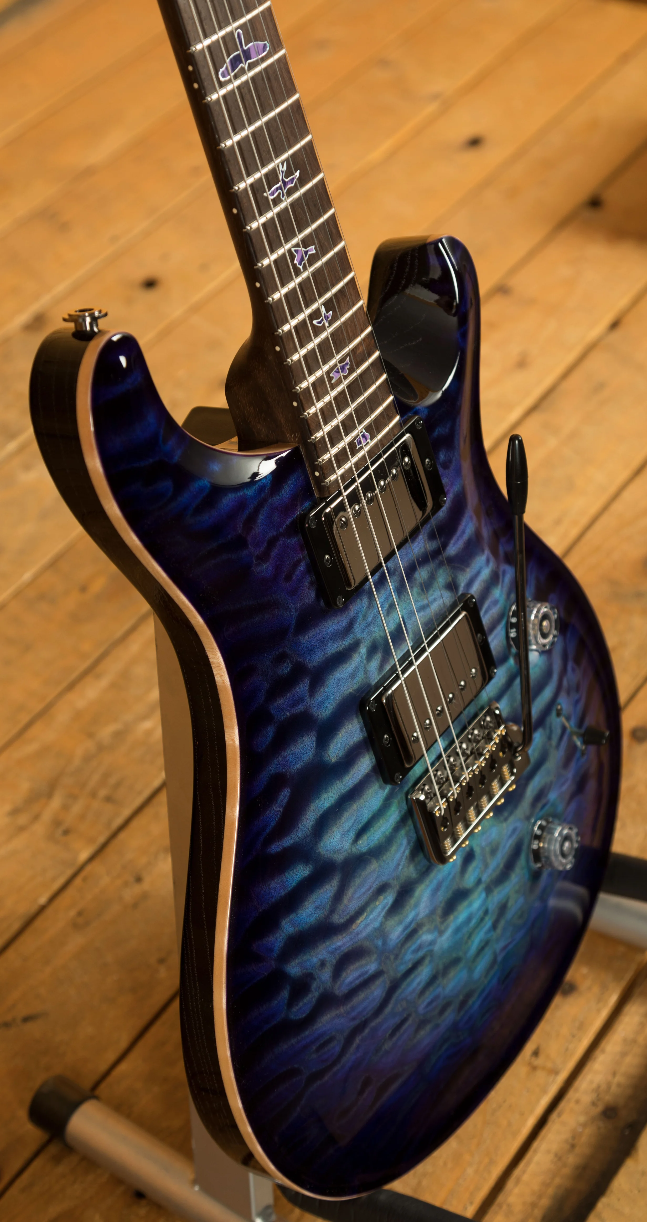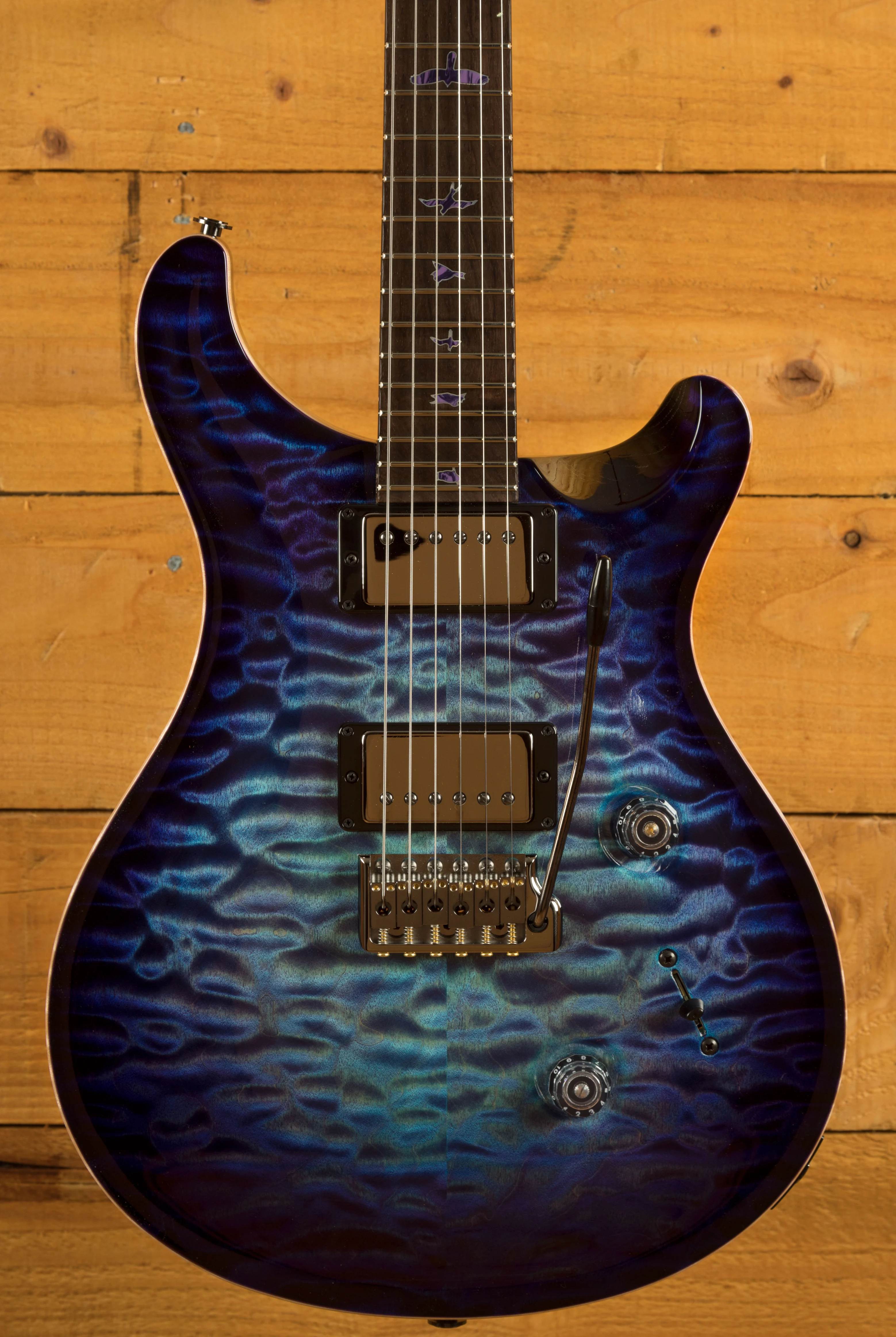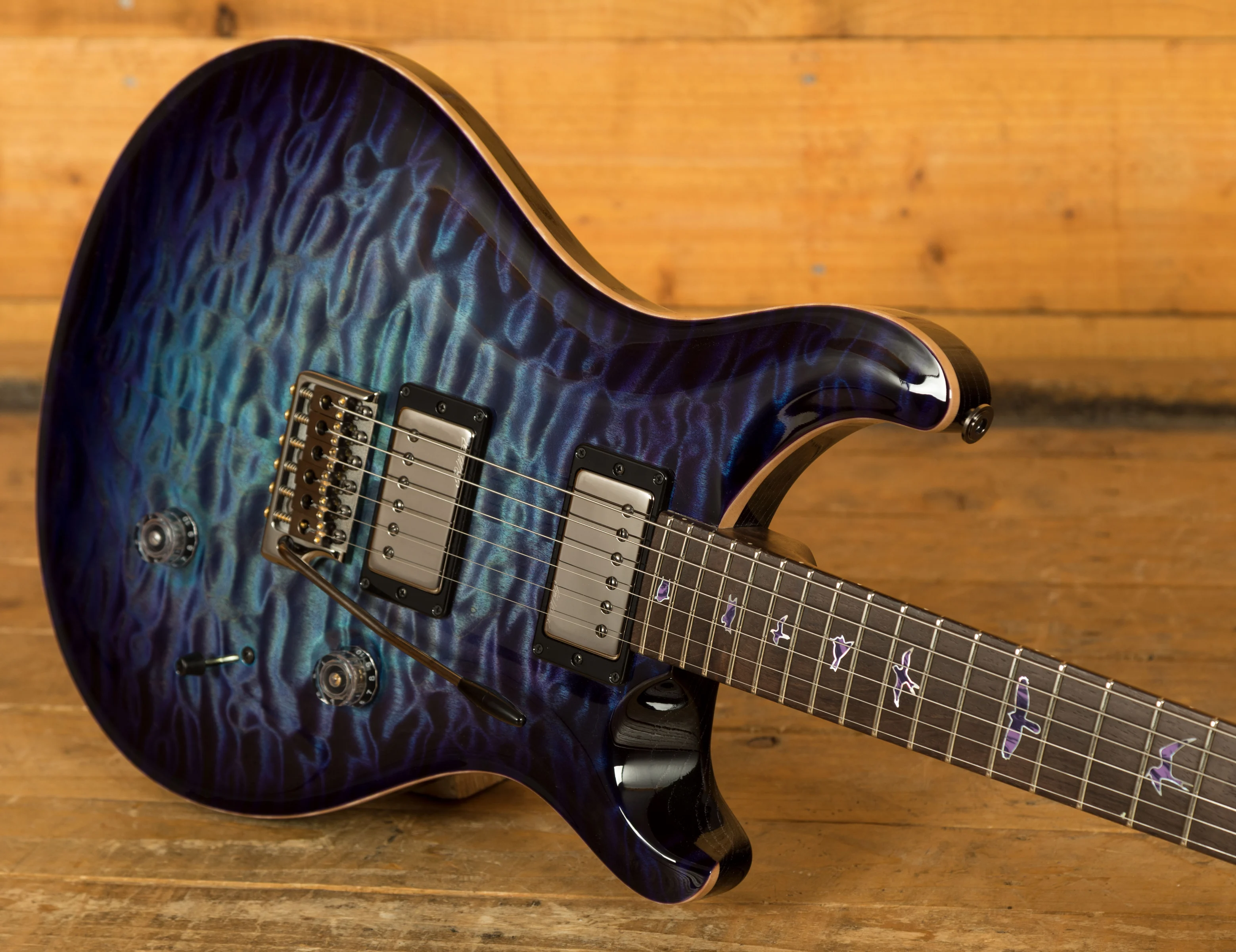 Sporting a pristine Quilted Maple top picked from the PRS Private Stock Vault, which is finished in the incredible Aqua Violet Glow. Thanks to the High Gloss Nitro finish the colour is super vibrant and powerful, the Nitro finish also allows the wood to breathe more effectively compared to other finishes. This Custom 24 benefits from a black stained Swamp Ash body with violet grainfill for a tonewood match made in heaven. Rich, resonant and tonally versatile, this is the epitome of high end performance.