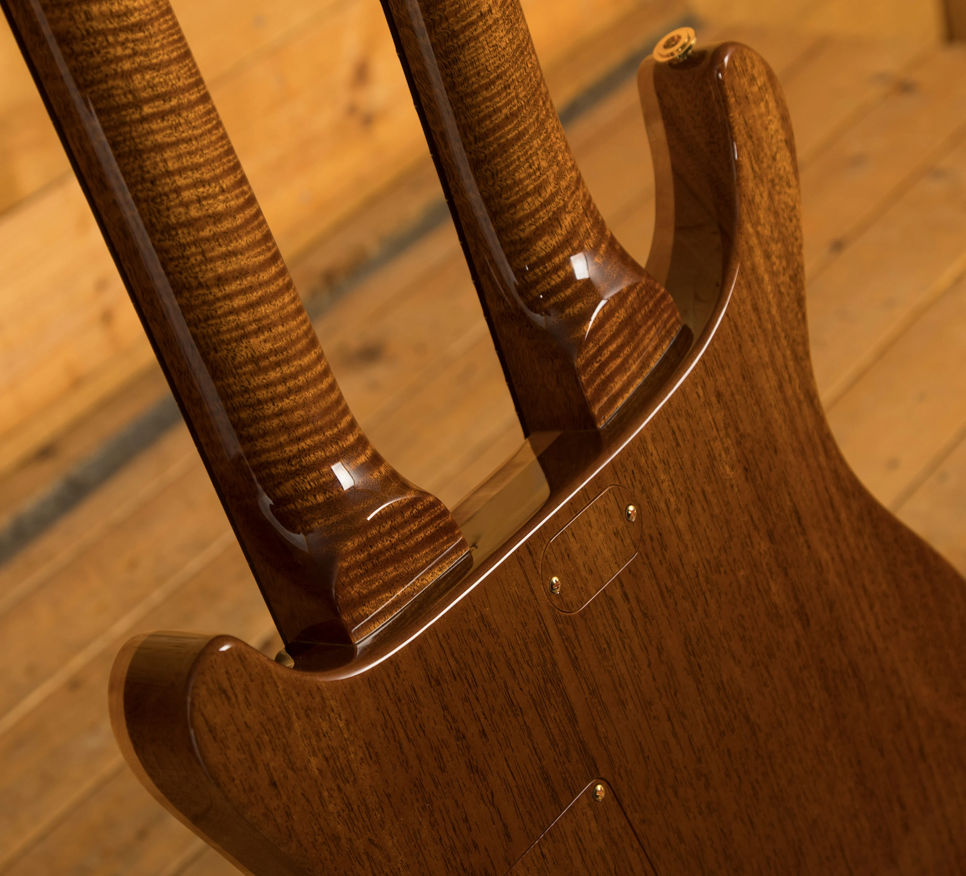 All these luxury appointments would be irrelevant though if it wasn't equpied with a pickup selection to match. Loaded with two pair of 58/15 LT pickups, this set is beautifully dynamic and incredibly responsive. Fitted with two volume controls, two tone controls, two mini switches and of course the neck selector switch. This PRS Doubleneck is incredibly versatile and will allow you so many tonal options as a player.